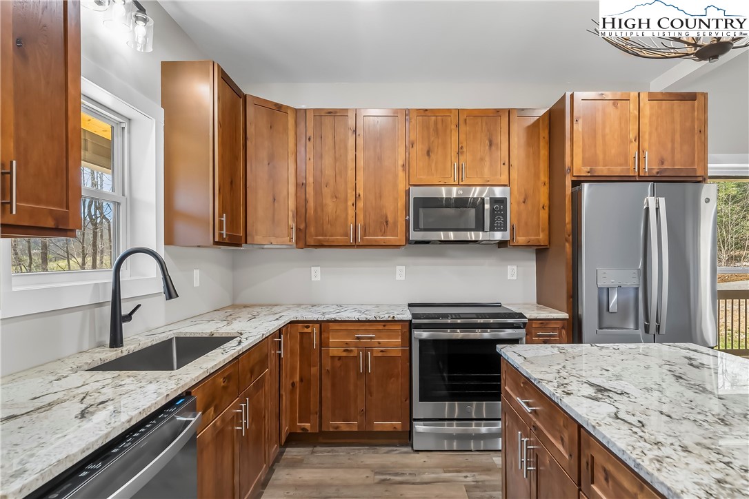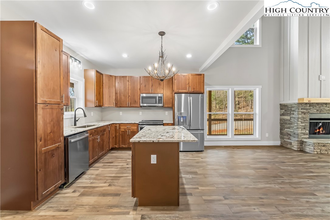Welcome to your mountain retreat in Linville Falls Mountain Club! This beautifully crafted 3 bedroom, 2.5 bath home offers the perfect blend of comfort, style, and location. Step inside to an inviting open floor plan highlighted by a spacious great room with soaring ceilings, creating an airy and dramatic living space perfect for relaxing or entertaining. The well-appointed kitchen flows seamlessly into the living and dining areas, making it ideal for gathering with family and friends. The primary suite offers a private retreat, while additional bedrooms provide flexibility for guests, a home office, or hobbies. Enjoy outdoor living at its best with covered porch areas, including a cozy fireplace—perfect for cool mountain evenings and year-round enjoyment of the peaceful surroundings. Located just minutes from the Blue Ridge Parkway, Linville Gorge, and Linville Falls, and within easy driving distance to Banner Elk, Boone, and Grandfather Mountain, this home truly serves as your basecamp for all things Blue Ridge Mountains. Linville Falls Mountain Club offers desirable amenities including walking trails, river access, underground utilities, and high-speed internet. An added bonus—community water and sewer are included in the POA fees, providing both convenience and value. Whether you're looking for a full-time residence, vacation getaway, or investment opportunity, this home checks all the boxes. Don’t miss your chance to own a slice of the Blue Ridge lifestyle!