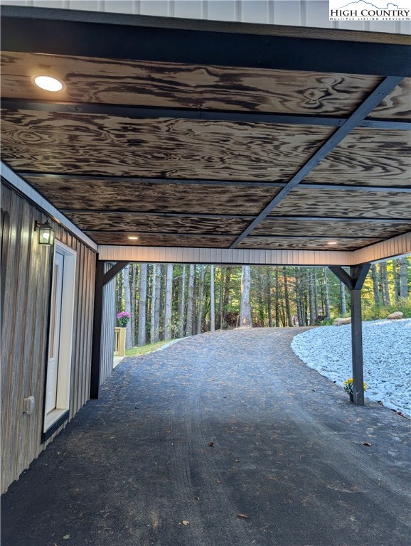 NEW stick-built home with LOW MAINTENANCE Metal siding, metal roof and paved driveway on 1.5 acres surrounded by woods making that new 300+ square feet of decking a private mountain sanctuary in the great outdoors! The home has a 2 bedroom septic but the sunroom is too pretty to sleep in. With 9 windows and a glass door, the tree house effect is fabulous in this room! The barn doors and wood ceilings bring a rustic look, while the stainless appliances and laminate, easy to clean and maintain, flooring offer the blended benefits of modern construction and attractive finishes. The covered parking on a paved driveway is a real blessing with winter approaching. Keep your car & shoes clean & dry when you unload the groceries, then soak up the fall colors or watch the falling snow snuggled up in the sunroom. There is storage in a floored space above the bedroom; the washer & dryer are conveniently closeted off of the kitchen. You will be amazed at how much countertop and cabinet space you have in this kitchen with full size stainless appliances and an eat in bar. The bedroom has a queen but could hold a king-sized bed, the walk-in closet will hold all of your sweaters & boots, and his too! There is plenty of open ground for gardening, playing ball, or adding a garage. The only thing you will notice missing in this low maintenance mountain home is the time it DOESN'T take to clean it! This could be the mountain home you've been looking for, NEW Construction, LOW MAINTENANCE, perfect size and affordable on 1.5 Acres in Location, location, location, the mountains of Alleghany County. Come see this NEW home with a 1-year builders warranty, Today!