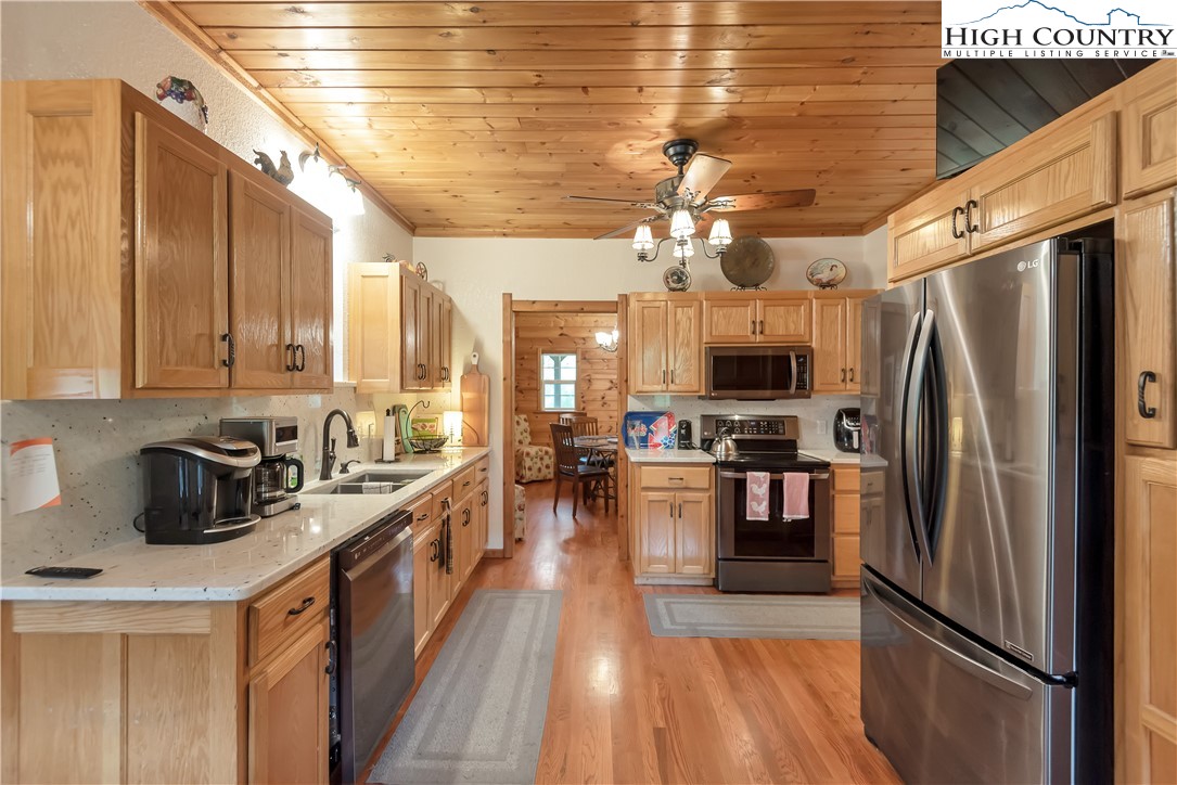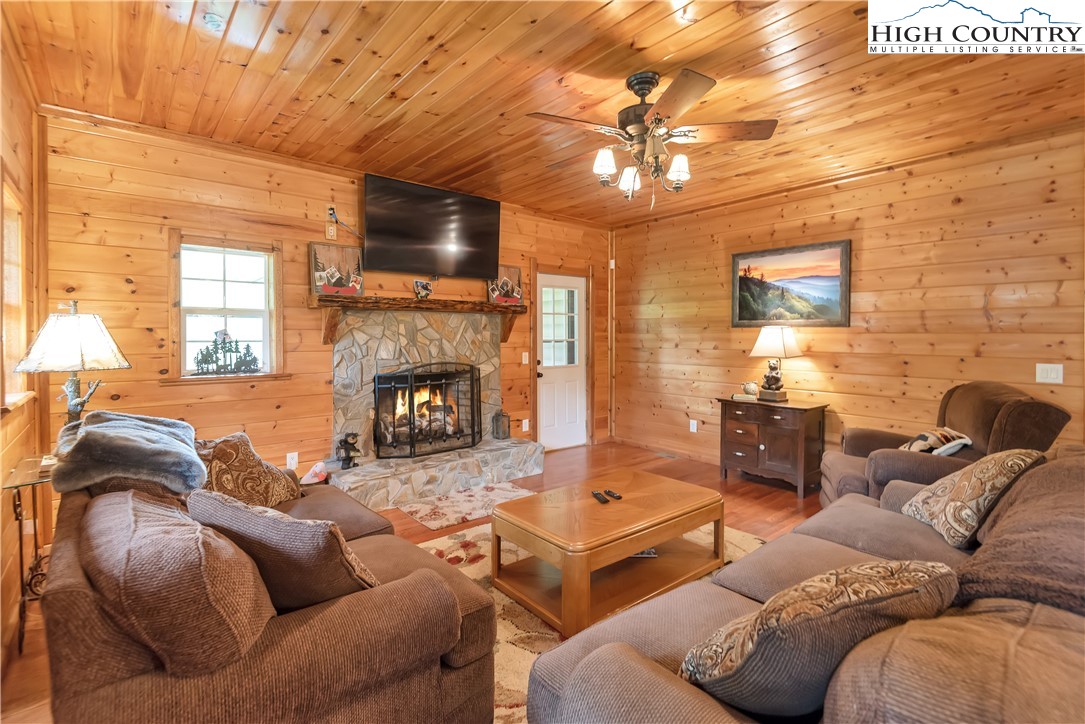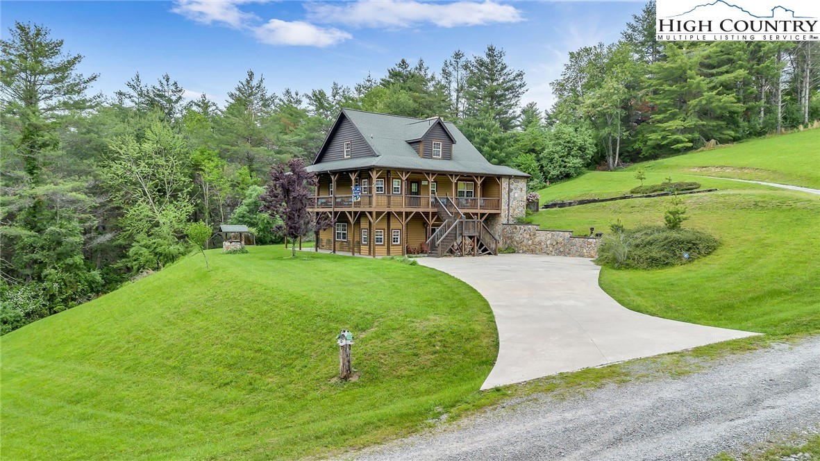 River meets mountain—and this is where your next chapter begins. Perfectly positioned in River Mountain Estates at the confluence of the North and South Forks of the New River, this spacious, turnkey log cabin delivers big views, bold vibes, and adventure right outside your door. Canoe, kayak, tube—your outfitter is literally next door, making this the ultimate basecamp for mountain living. Whether you're searching for a high-performing vacation rental, a weekend escape, or a forever cabin in the woods, this property delivers on every level. Arrival is effortless with dual access—pull in at the top for easy main-level entry or park below for direct access to the finished basement. Inside, the main level opens up to a spacious kitchen designed for gathering, featuring granite countertops, stainless appliances, abundant cabinetry, and a bright breakfast nook. Just off the kitchen, a large dining area sets the tone for long dinners and lively game nights. The great room anchors the space with a cozy gas fireplace and flows seamlessly onto a massive wraparound porch, where mountain air and the sound of the river create the perfect backdrop. The main-level primary suite offers a private retreat with a whirlpool tub, walk-in shower, and en-suite bath, while a half bath and laundry room provide added convenience for guests. Upstairs, a spacious loft offers flexible living—ideal for a media lounge, card table, or additional sleeping space—along with two generously sized bedrooms that share a full bath. The finished lower level takes things up a notch with a large bonus sleeping area, a private bath featuring an oversized walk-in shower, and a game room with walk-out access to a rare flat yard, perfect for kids, pets, and hook up already in place for your own private hot tub setup. The lifestyle here is just as compelling as the home itself, with community river access only a minute away for fishing, paddling, or simply unwinding by the water. Located just 25 minutes from West Jefferson and Sparta, you’ll enjoy the perfect balance of convenience and seclusion. Offered fully furnished, this is a true turnkey opportunity—ready to generate income or become your personal mountain escape from day one. Easy to show, impossible to forget, and ready for its next owner—this is more than a cabin, it’s your riverfront adventure lifestyle.