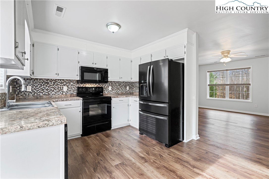 Appliances: Dishwasher, Exhaust Fan, Electric Range, Electric Water Heater, Microwave Hood Fan, Microwave, Refrigerator