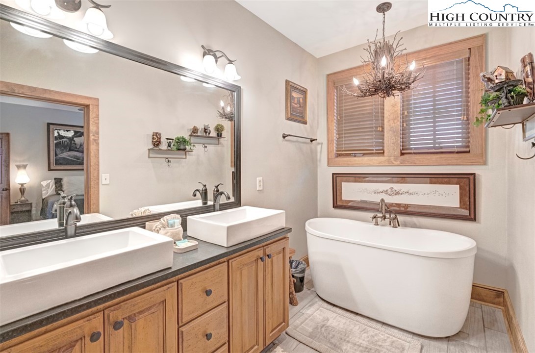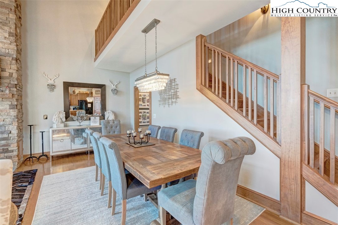 Exquisite 4BR|4BA townhome at Echota on the Ridge being offered fully furnished with spectacular mountain views and end-building privacy. This home features many upgraded finishes including hardwood floors throughout the main living areas, floor-to-ceiling stacked stone gas fireplace and tongue & groove vaulted ceilings. Luxury continues into the recently upgraded primary suite that features hardwood floors, tasteful furnishings, and a sliding barn door to access the remarkable primary bathroom with double vanity, tile flooring, freestanding soaking tub and stunning tile shower. The kitchen features wormy chestnut cabinetry, travertine backsplash and granite countertops and opens to the living and dining area which has access to the upper-level covered deck. Upstairs are two comfortably furnished guest bedrooms, each with their own bathroom and plenty of storage. Elegance continues downstairs to the 2nd living area with hardwood floors and access to the expanded lower deck with an oversize 8-person hot tub! On the lower level you’ll also find another primary suite with hardwood floors, king-size bed, sitting area and direct access to the jacuzzi. This property is an active vacation rental with rental history available upon request. Owners have access to the new amenity center at The Summit at Echota which includes a spectacular outdoor pool and deck area, fitness facility, covered gathering space and skybridge with linear fireplace.