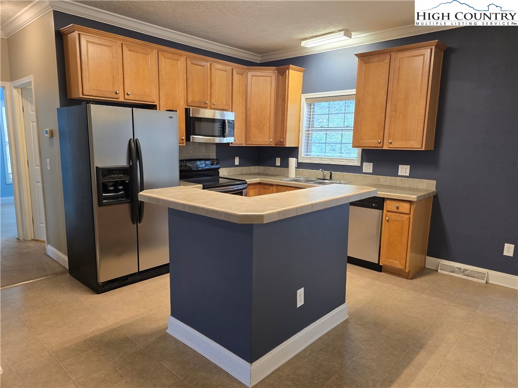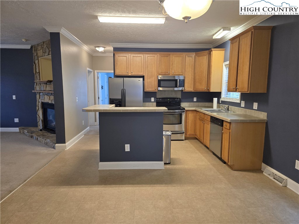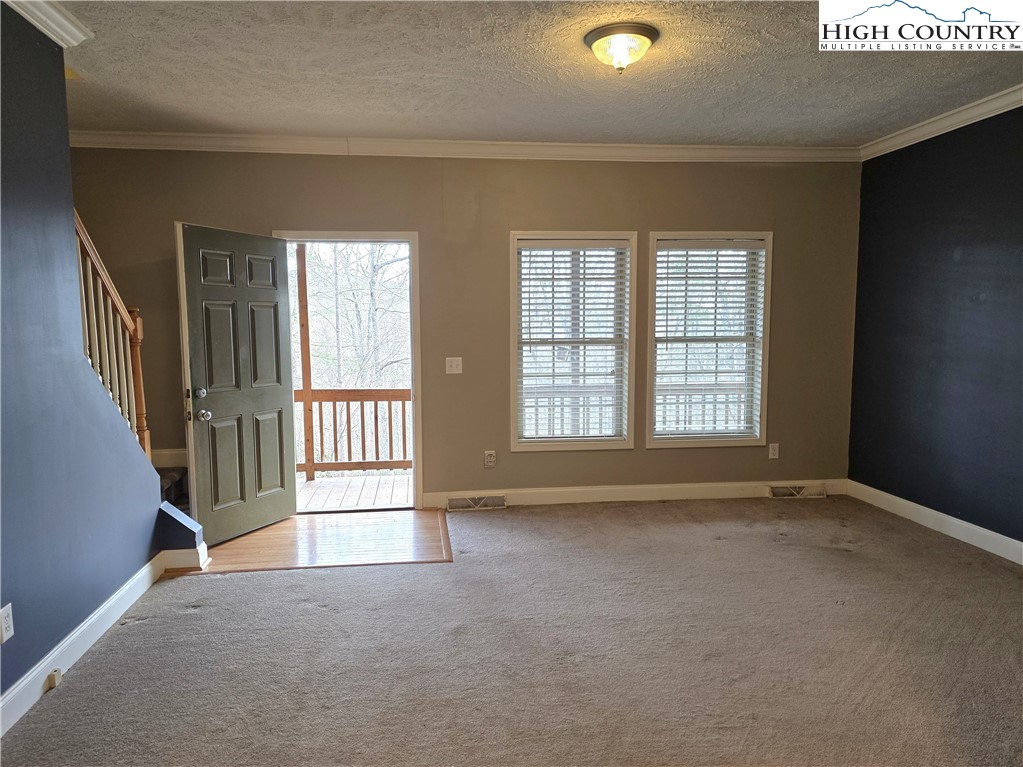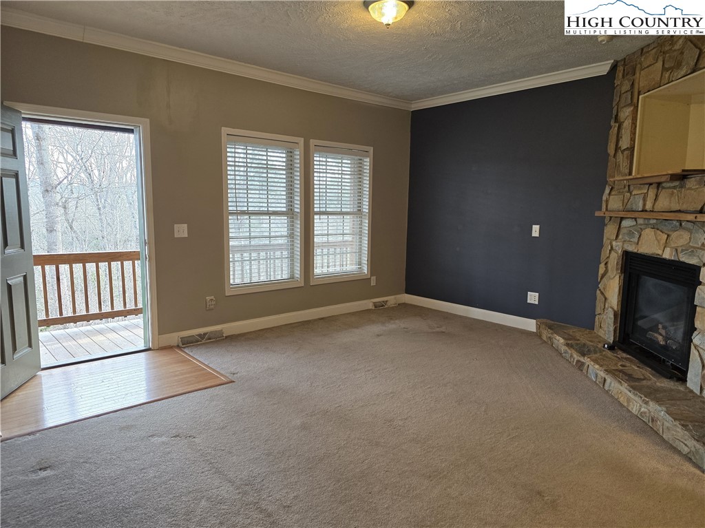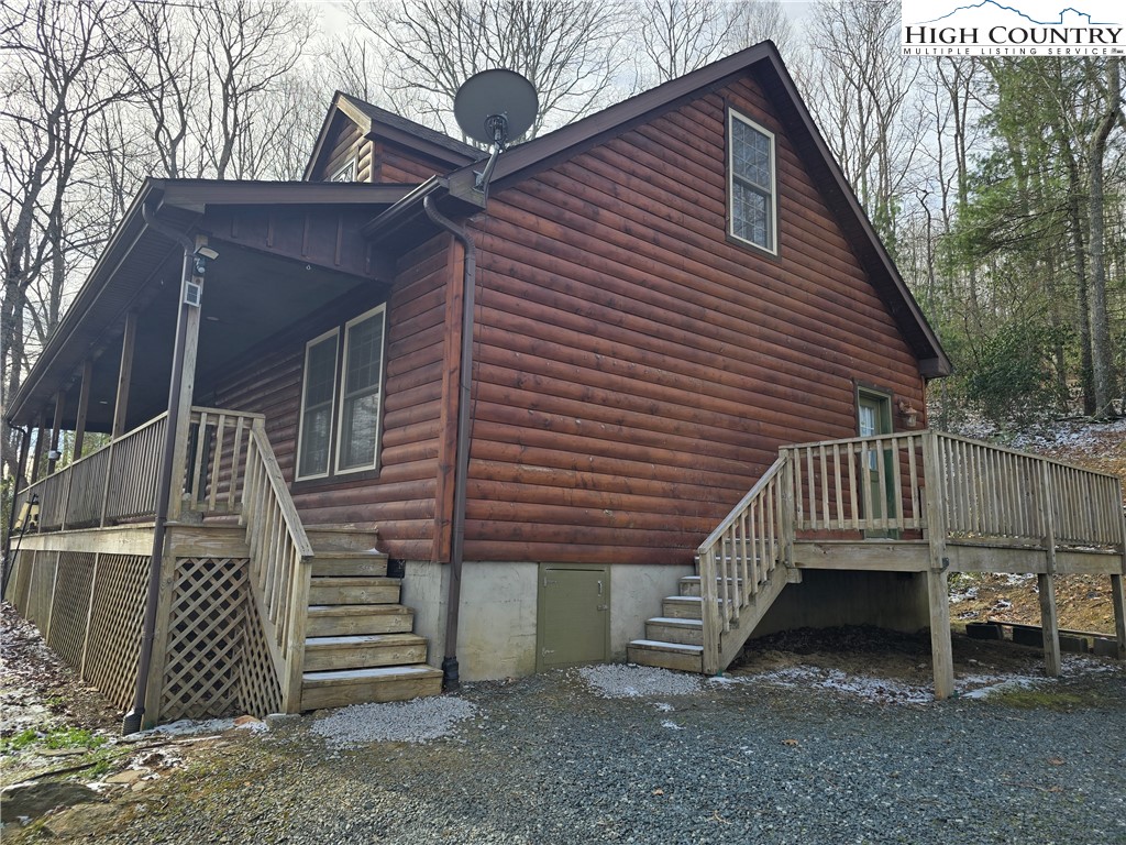 Enjoy comfortable mountain living in this 3-bedroom, 2-bathroom log-sided modular home conveniently located in Fleetwood, NC, with easy access to Ashe, Wilkes, and Watauga Counties. Tucked into a tree-surrounded setting, the property offers a partially fenced yard, an open side deck serving as the main entry, and a covered full-length front porch — an ideal spot to relax and take in the seasonal mountain views and fresh mountain air. The main level features one-level living with all three bedrooms, two full bathrooms, laundry room, kitchen, dining area, and living room. The living room is highlighted by a floor-to-ceiling gas log fireplace and flows comfortably into the kitchen and dining spaces, creating a welcoming layout for everyday living or entertaining. The primary bedroom is conveniently located just off the dining area, while the two additional bedrooms and second full bath are situated on the opposite side of the home. Each bedroom offers ample closet space. An unfinished upper level with an existing stairway provides excellent potential for future expansion. The open space can be used for storage or finished to suit your needs — whether for additional living space, home office, playroom, hobby area, or more. Located on a private road, maintenance is shared among neighboring property owners as needed, per the seller. Fiber optic internet is already in place, offering fast and reliable connectivity. This property combines comfortable one-level living, future expansion potential, and a peaceful mountain setting — all within convenient driving distance to nearby towns and amenities.