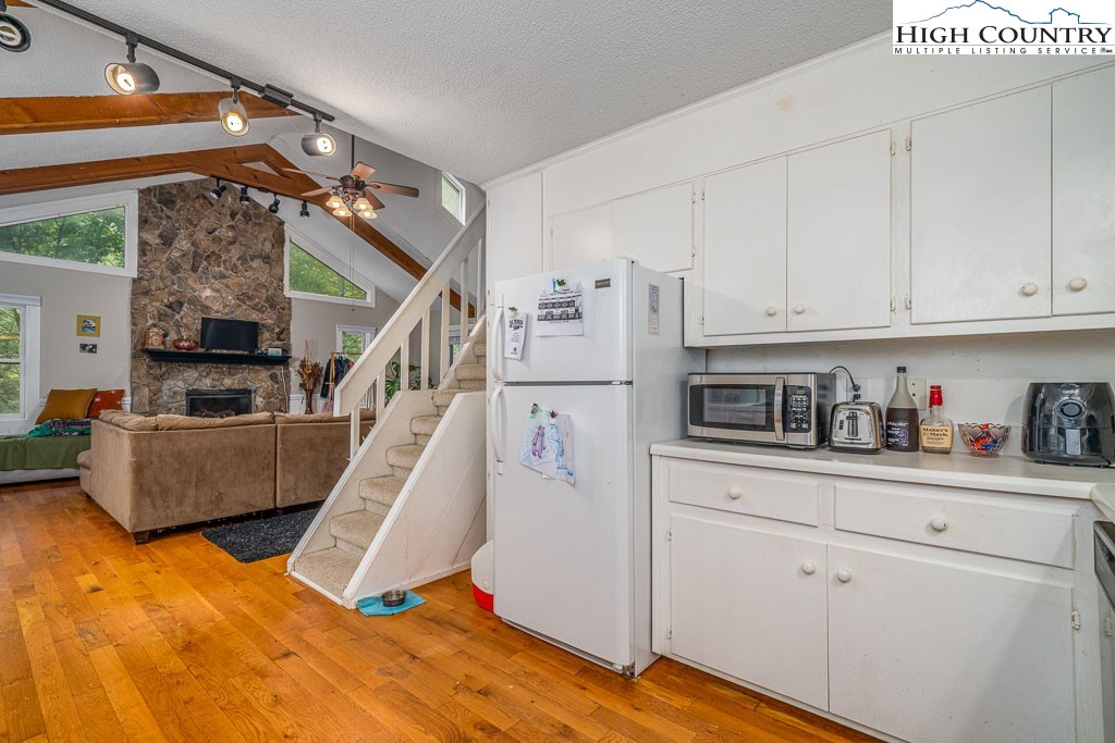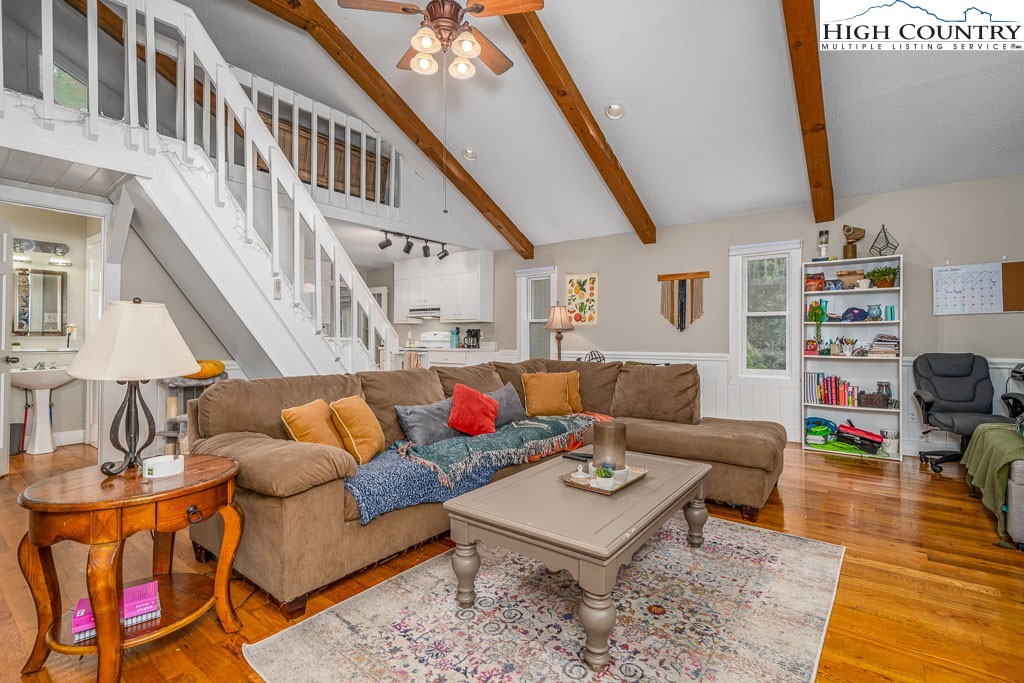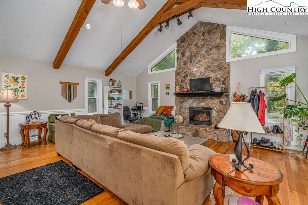 REDUCTION!! BLOWING ROCK-2 HOMES WITH OVER 1,800 TOTAL SQ.FT. PLUS 1,065 SQ.FT. that could not be counted for ceiling height restriction WALKING DISTANCE TO DOWNTOWN BLOWING ROCK AND BASS LAKE HIKING TRAILS. A TOTAL OF 3 BEDROOMS AND 3-1/2 BATHS. La Crete Blue Chalet is located on a quiet private street yet a short walk to downtown. What a rare find! 2 Bedroom 2 Bath (1,226 s.f.) home (plus 484 sq.ft. with ceiling height restriction), and adjacent 1 Bedroom 1-1/2 bath (595 s.f.) guest cottage (plus 581 s.f. with ceiling height restriction) in Blowing Rock. Main house has large living area with ample size kitchen and stone fireplace. Master bedroom has large jacuzzi tub and 2 sinks. 2nd bedroom on main floor and full bath with shower. There is usable loft as well. Nice deck spaces and very large parking area. A 2 story 1 bedroom guest cottage with living room and stone fireplace. Kitchen and half bath with laundry on main level. Upstairs is a large bedroom with full bath and shower. Deck spaces to enjoy the quiet setting. What a location with a short walk to shops and restaurants of Downtown Blowing Rock and Bass Lake hiking trails. New sidewalk to trails installed. (SHORT-TERM RENTALS -LESS THAN 28 DAYS- ARE NOT PERMITTED BY TOWN ZONING). Total square feet of over 1,821 (plus 1,065 s.f. with ceiling height restriction) for both homes. 3 bedrooms and 3-1/2 baths with both homes combined. TOTAL SQUARE FEET INCLUDING CEILING HEIGHT RESTRICTED AREA: 2,886 S.F.