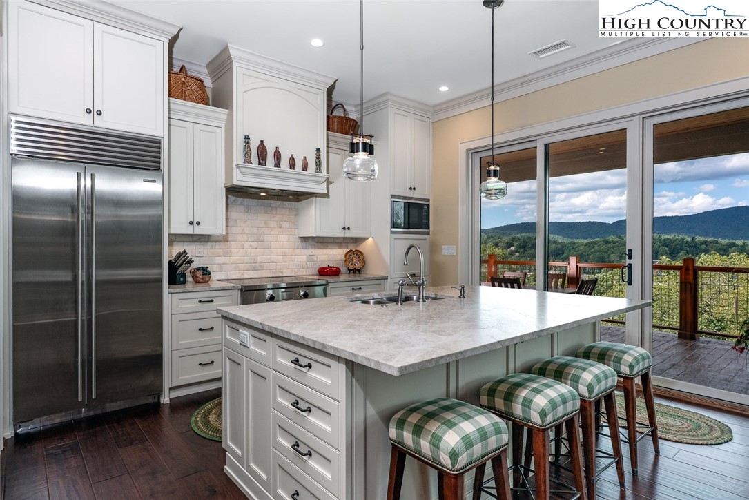 Located near the Blue Ridge Parkway, in the idyllic village of Blowing Rock, North Carolina, awaits Chestnut, a secluded enclave of 23 luxury residences. This premier penthouse beholds stunning views of Moses Cone Memorial Park and the surrounding Blue Ridge Mountains. Modern conveniences and the charming shops and restaurants of Main Street are steps from your front door. Refining luxury condominium living, it features open and airy living spaces, four bedrooms, four-and-a-half baths, a barrel cathedral ceiling in the great room, natural finishes, floor-to-ceiling windows, a large stone fireplace, heavy beams, artisan cabinetry by Banner’s Cabinets throughout, custom granite and stone, professional grade appliances and 725 square feet of outdoor living space, including open and covered decks and grilling area. Numerous upgrades were made to the original condominium model, including additional windows, a fully covered master deck, custom stamped concrete finish on all decks, and high-quality materials throughout. This home has an individual, heated, oversized two-car garage and storage area on the ground level with elevator access right to the front door. To top it all off, this is the only condominium at Chestnut with a whole-home generator. This penthouse residence spans over 3,300 square feet of thoughtfully designed, seamless living areas, larger than previously documented, per certified measurement report. Viewings of this exceptional home are offered exclusively by appointment.