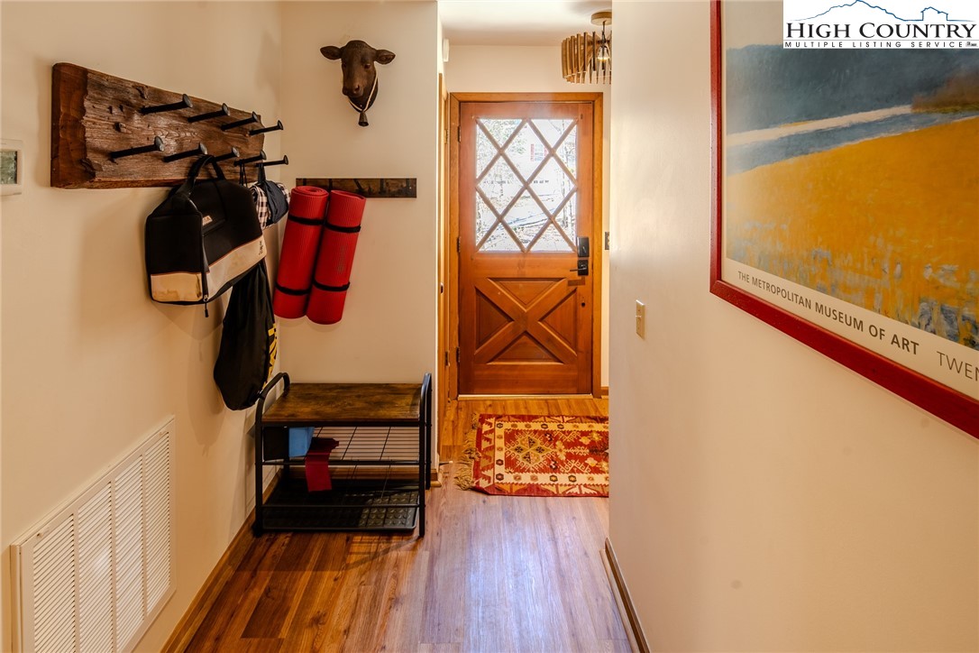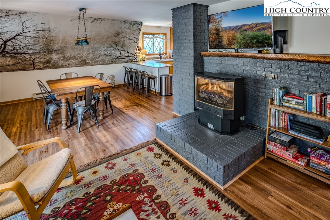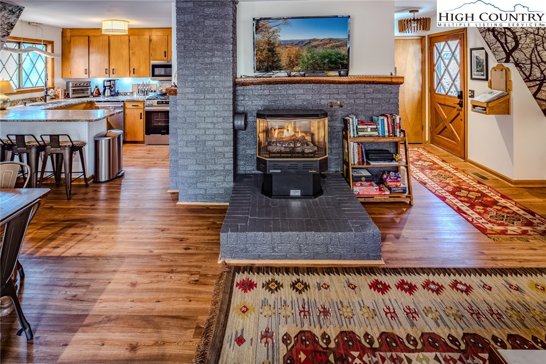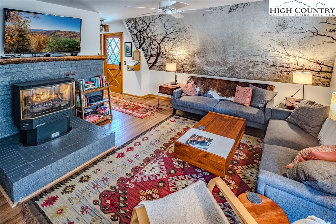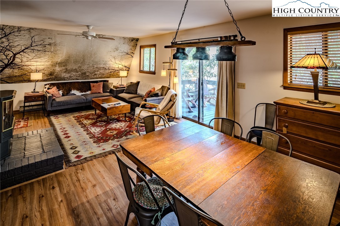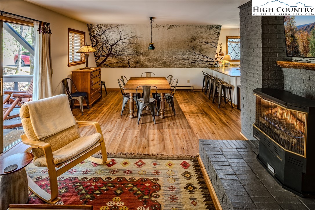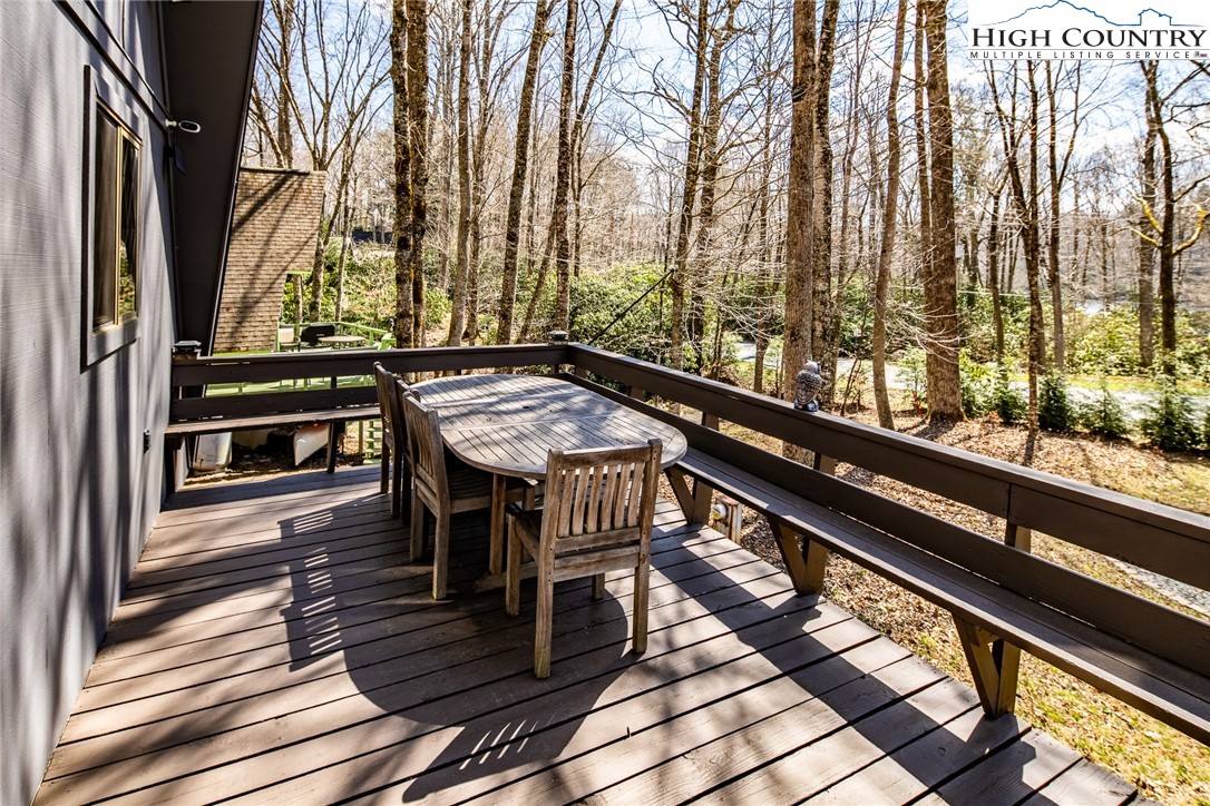 Discover the mountain gem you have been waiting for. Park the car and retire the keys because this prime location is just steps away from the 45 acre lake, heated pool, beach, game room and a variety of activities. This turnkey mountain retreat comes fully furnished featuring 3-bedrooms and 2 baths. The updated kitchen features stainless steel appliances and beautiful granite countertops, with a new gas range ready for the avid cook. Gather around the gas-log fireplace for a warm atmosphere while admiring the stunning murals. Step outside to a large deck for entertaining, overlooking an inviting fire pit area and nice yard for the dog and kids to play. This level spacious lot offers a variety of trees and plants, including rhododendrons, hemlock, and wildflowers. The home includes additional upgrades like a newer HVAC, metal roof, and driveway with convenient walk-in storage underneath the home. No updates or fixes required, just arrive and start living the mountain life. Linville Land Harbor is a sought-after community that includes water, cable, internet, 24/7 security, road maintenance, snow removal, weekly curbside trash removal, heated seasonal pool, nice sandy beach, stocked fishing waters, hiking, 18 hole golf course, clay like Har-Tru tennis courts, dedicated pickleball courts, covered shuffleboard courts, dog park, play ground holiday festivities, and seasonal concerts. Whether you choose to make this your full-time residence, a seasonal retreat, or keep it in the rental pool, all you need to bring is your suitcase to start enjoying mountain living at its finest! Must see to truly appreciate.