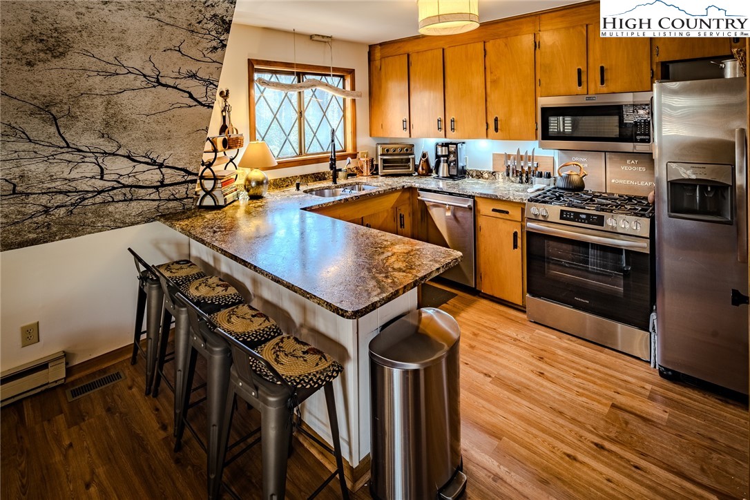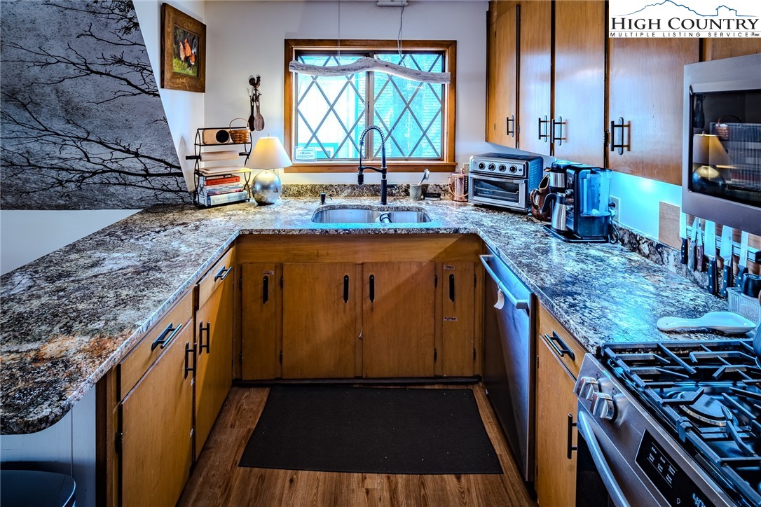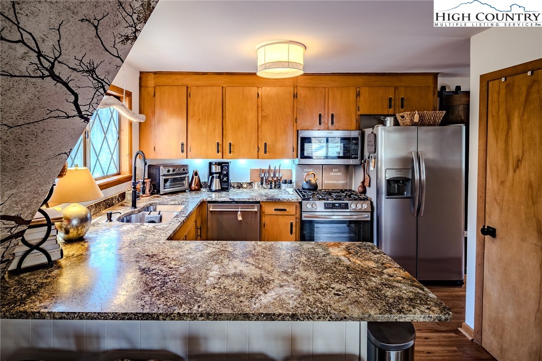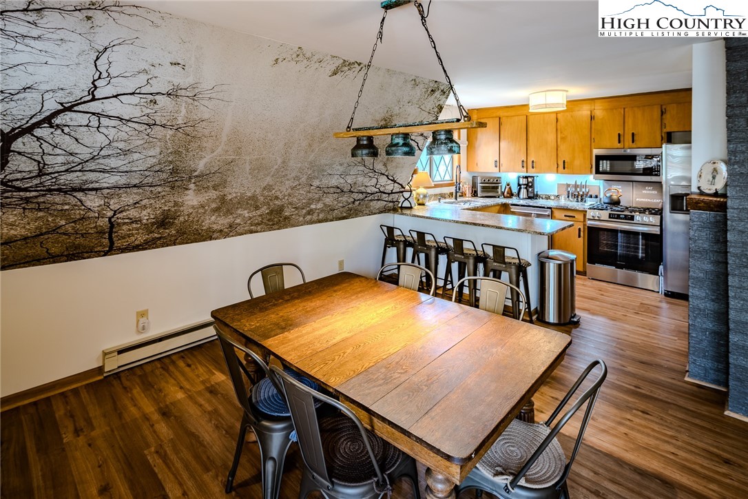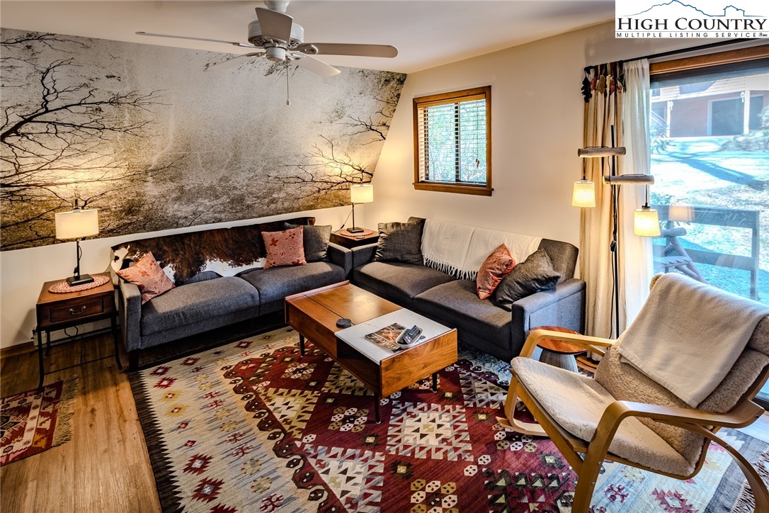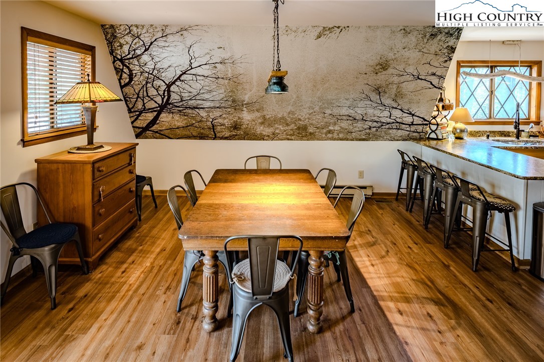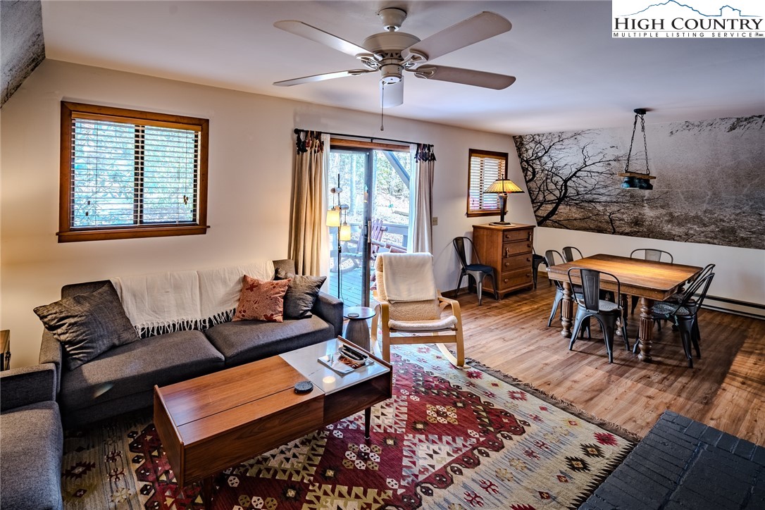 Discover the mountain gem you have been waiting for. Park the car and retire the keys because this prime location is just steps away from the 45 acre lake, heated pool, beach, game room and a variety of activities. This turnkey mountain retreat comes fully furnished featuring 3-bedrooms and 2 baths. The updated kitchen features stainless steel appliances and beautiful granite countertops, with a new gas range ready for the avid cook. Gather around the gas-log fireplace for a warm atmosphere while admiring the stunning murals. Step outside to a large deck for entertaining, overlooking an inviting fire pit area and nice yard for the dog and kids to play. This level spacious lot offers a variety of trees and plants, including rhododendrons, hemlock, and wildflowers. The home includes additional upgrades like a newer HVAC, metal roof, and driveway with convenient walk-in storage underneath the home. No updates or fixes required, just arrive and start living the mountain life. Linville Land Harbor is a sought-after community that includes water, cable, internet, 24/7 security, road maintenance, snow removal, weekly curbside trash removal, heated seasonal pool, nice sandy beach, stocked fishing waters, hiking, 18 hole golf course, clay like Har-Tru tennis courts, dedicated pickleball courts, covered shuffleboard courts, dog park, play ground holiday festivities, and seasonal concerts. Whether you choose to make this your full-time residence, a seasonal retreat, or keep it in the rental pool, all you need to bring is your suitcase to start enjoying mountain living at its finest! Must see to truly appreciate.