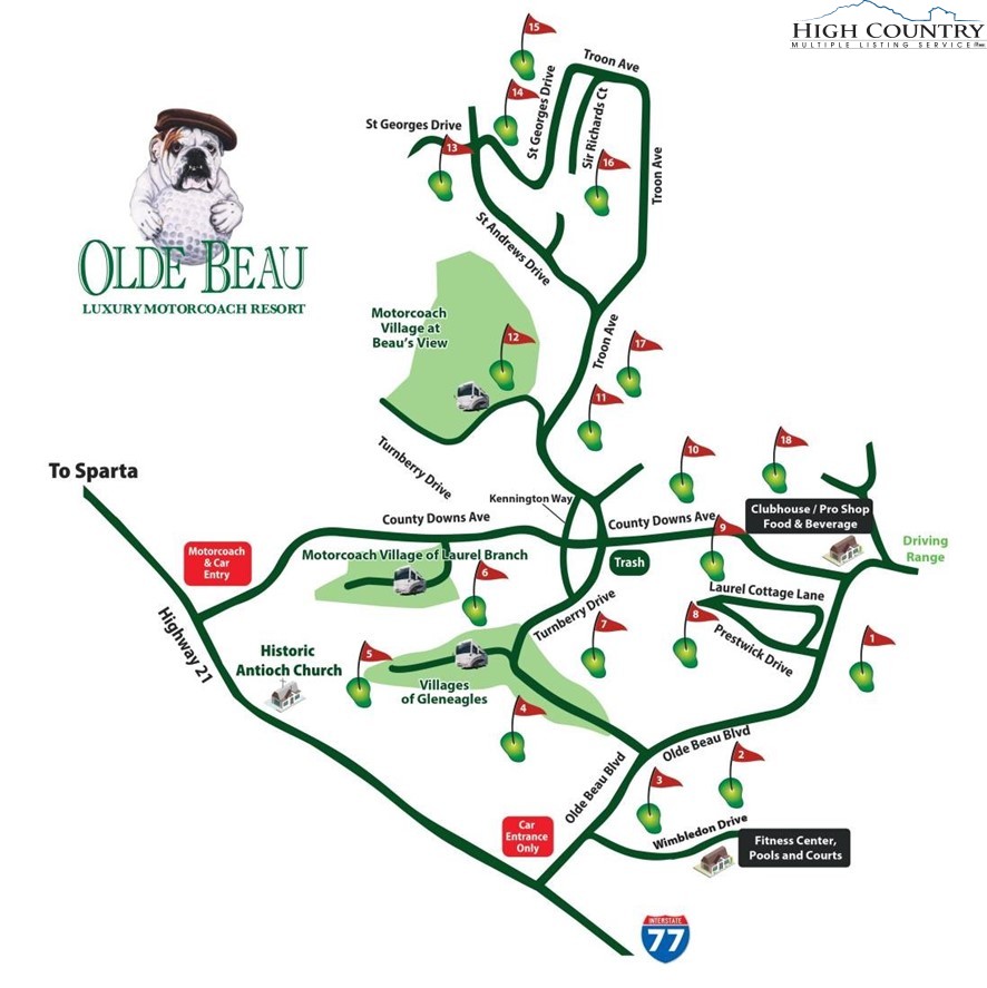 The Village of Gleneagles North is a Class A Motorcoach resort located at Olde Beau Resort & Golf Club in the Blue Ridge mountains of North Carolina. This beautiful approximate .36+/- acre lot with coach pad in place & utilities to include water, sewer, & 50 amp electrical service is ready for immediate use. This lot will also easily allow for a coach house and outdoor kitchen if desired. Enjoy your coach in a beautiful setting with all the amenities of Olde Beau and surrounding area to include Full Service Clubhouse Dining, Proshop, 18 Hole Golf Course, Practice Facilities, Pool, Gym, Pickleball Courts, Tennis, Hiking Trails, Dog Park, Ponds for fishing, & Child’s Playground. Numerous vineyards, the Blue Ridge Parkway, Stone Mountain State Park, & New River are just outside your door. A must see for your getaway!