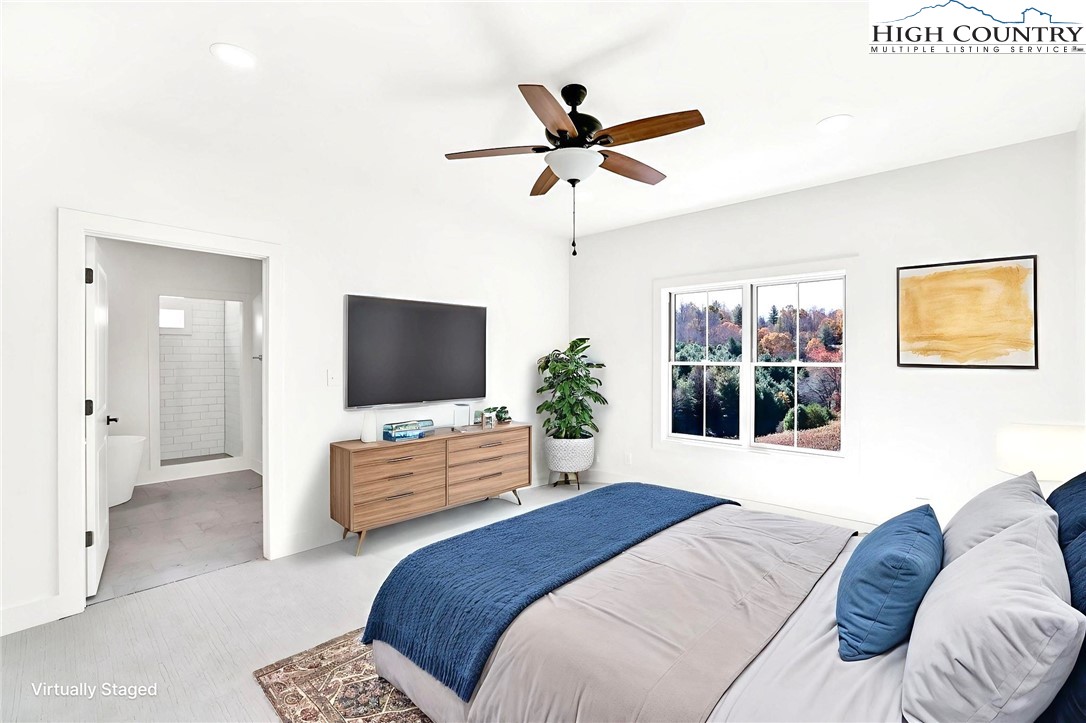 Nestled within the upscale gated community of Whispering River, this beautiful, newly constructed home boasts an acre plus lot with gorgeous New River access! The main floor features three generously sized bedrooms, including two with a shared full bath. The open floor plan creates a seamless transition between the family room, dining area, and kitchen, which showcases a spacious island, granite countertops, and premium appliances. A skillfully crafted master suite, complete with an expansive custom designed closet, vast tile shower, and an opulent soaking tub, complete the main floor. The upper level boasts a spacious bonus room and a third full bath, situated above the oversized attached double garage. This exceptional residence features an array of luxurious appointments, including Belgium wood flooring, granite counters throughout, covered porches (trex back deck), a condition sealed crawlspace with an Aprilaire dehumidifier, rolling mountain views and New River access. Come see this amazing mountain haven today!