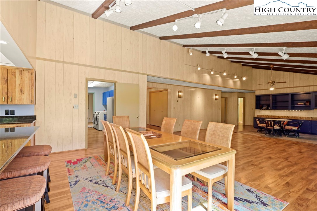 Welcome to 202 Cliffside Lane, providing more space and value than comparable homes in Seven Devils This mountain retreat perfectly blends comfort, privacy, and convenience, placing you near everything the High Country has to offer. Ideally situated in the heart of Seven Devils, this spacious 4-bedroom, 3-bath home is just half a mile from Hawksnest Resort and perfectly positioned between Boone and Banner Elk. Inside, the main level is bright, open, and designed for gathering. The living area features soaring ceilings, abundant natural light, and seasonal views of Grandfather Mountain. The kitchen flows seamlessly into the dining and living spaces—great for entertaining or relaxing by the fire. Also on the main level, the primary suite offers a calm retreat with an ensuite bath, while a guest bedroom and full bath provide comfortable accommodations for visitors. The lower level includes two additional bedrooms and a full bath, offering plenty of space for family and friends. With its flexible layout, this home suits a variety of lifestyles—whether you’re seeking a full-time residence, vacation getaway, or income-producing short-term rental (STRs are allowed). Outside, enjoy rare High Country conveniences like a flat driveway, easy year-round access, and a peaceful, wooded setting that still captures seasonal mountain views and a peek at Grandfather Mountain in the summer months. Whether you’re grilling on the deck, cozying up indoors, or exploring nearby trails, waterfalls, and ski slopes, this home offers the best of mountain living in one of the area’s most desirable communities. Home is being offered partially furnished.