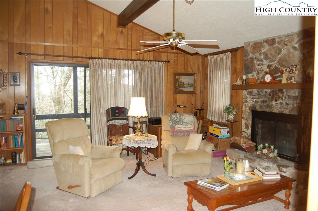Nestled in the rhododendrons, you'll find this 2bdr/2bath mountain cottage to be nice retreat from the heat this summer! Large wooded lot with seasonal views from your large covered porch. This legacy home has been in the family for decades and is ready for someone to love and make their own. Vaulted ceilings, stone wood-burning fireplace and potential for expansion on this large lot by Land Harbor standards. Community has golf, fishing, pickleball, tennis, dog park and so much more! Water, sewer, cable, internet and trash pickup included in Annual POA fees along with common area and road maintenance. Come check out this mountain treehouse...or maybe we will call it a Rhodohouse!