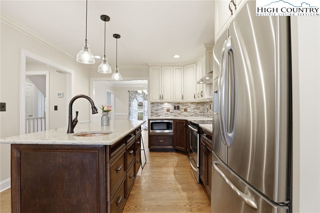 COMPLETELY UPDATED! Leave the toolkit behind—this turnkey beauty is move-in ready! Enjoy peace of mind with a NEW ROOF(2025), NEW LVP flooring(2025), NEW paint(2026), NEW water heaters (2024). This meticulously maintained home features a massive chef’s kitchen w/expansive counters, an abundance of cabinetry, a copper prep-sink in the island plus a farmhouse sink overlooking the backyard. Relax by the gas logs in the living room or retreat to the screened porch. The primary suite is a true sanctuary, boasting a luxury ensuite w/dual vanities, a multi-head rainfall shower, & 2 walk-in closets. The basement is an entertainer’s DREAM, featuring fresh paint, new floors, & a second kitchen just steps from the patio, porch swing, & hot tub! Floorplan also provides flex-space for your personal needs. All situated on a spacious corner lot, with ample room for gardening, play, & firepit nights. Experience the luxury of a modern, updated interior within a premier, well-established community!