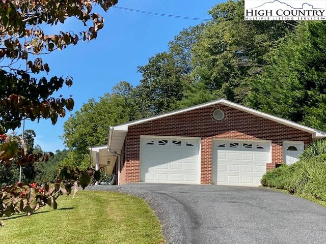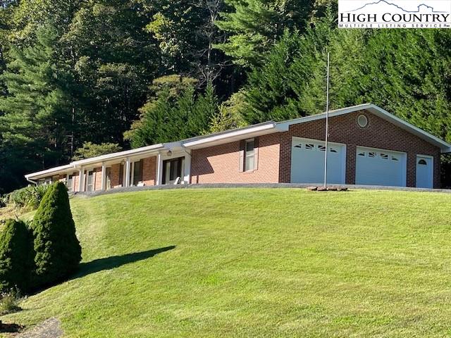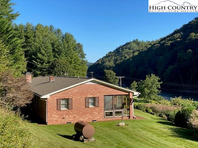 RIVERFRONT – MAGNIFICENT RIVER VIEWS!!! Your very own 700 ft on the New River with beautiful water cascading feature. Great way to enjoy all of your river activities -fishing, canoeing, tubing rafting or simply just splashing water to cool off. Perfect place to entertain family, friends and guests. An excellent brick house with 3 bedrooms, 2 full baths, living room, open floor plan in kitchen & dining room, cozy den with gas log fireplace, perfect sunroom, oversized heated 2 car garage w/pea gravel flooring, paved driveway, outbuilding w/electricity, wired for a generator, long-range river and mountain views and a creek! The kitchen has oak cabinets, Corian countertops, & a new stainless-steel refrigerator. New laminate flooring in the kitchen, dining and den area. Concrete pad for many possibilities. The property is beautifully landscaped and groomed. Own your happy place in the Blue Ridge Mountains! Only 5-10 minutes from downtown West Jefferson for all your shopping and dining! New River State Park - Elk Shoals Access Natural Fun within walking distance.