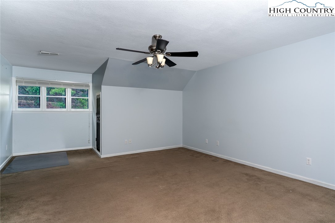 Enjoy fairway living and High Country convenience from this bright and airy two-bedroom, two-bath townhome. Cathedral ceilings and floor-to-ceiling windows on the main floor let in an abundance of light and space. The main floor features an open floor plan between the living room and kitchen creating an airy flow. The covered porch is right off the living room, excellent for entertaining and relaxing and taking in the mountain views and golf course scenery. The primary suite is upstairs with multiple closets and full bath. The lower level has the space for a quiet office or additional living area, with an easy exit outside onto the lower porch and access to the grounds and surrounding areas. Just minutes to Boone and Appalachian State University and convenient to Foscoe, Valle Crucis, and all outdoor and recreation amenities of the High Country.