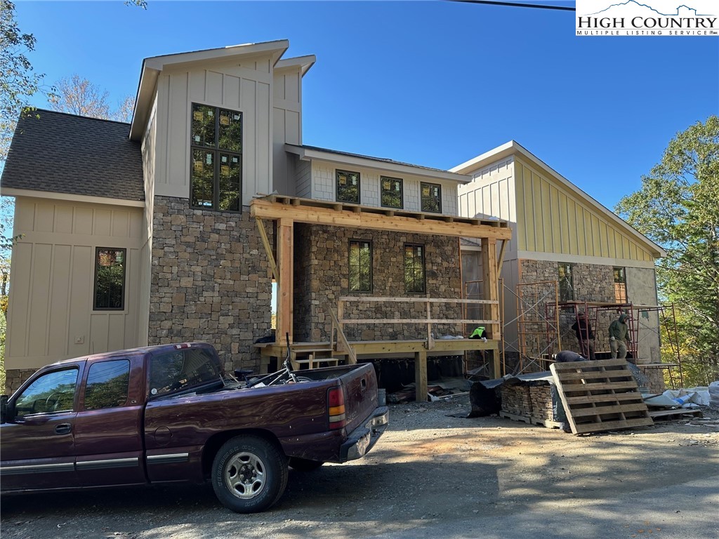 New construction in Misty Mountain with beautiful long-range Grandfather Mountain views, the Smoky Mountains, and Linville Gorge! The home boasts generous 10-foot ceilings throughout the main level, with vaulted T&G wood ceilings in the kitchen and dining areas. Upgrades include high-end appliances, engineered hardwood floors throughout, a primary suite on the main level with long-range mountain views, and two beautiful stone fireplaces. Spacious covered and open decks, offering magnificent views of Grandfather Mountain, the Smoky Mountains, and Linville Gorge, are perfect for entertaining, grilling, and watching the sunset. Misty Mountain is a quaint and desirable neighborhood great for walking with long-range views all around, and located just 10 minutes from Main Street, Blowing Rock. The estimated completion date is January 2026. The taxes are for the vacant lot only, and they will change once the construction is complete. Final inspection approval must be obtained.