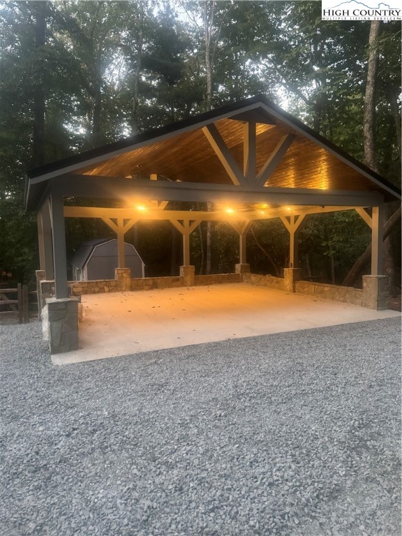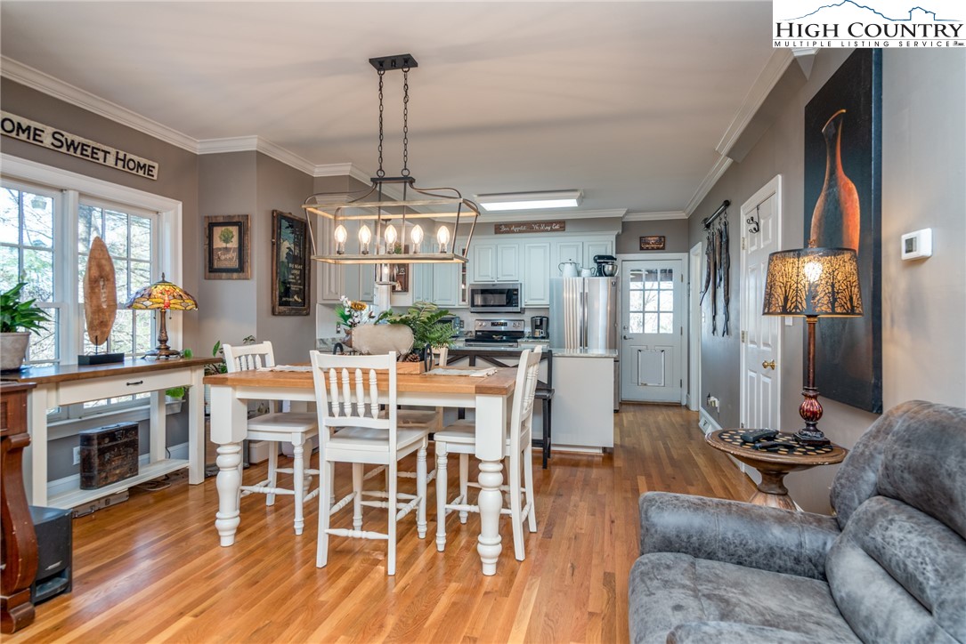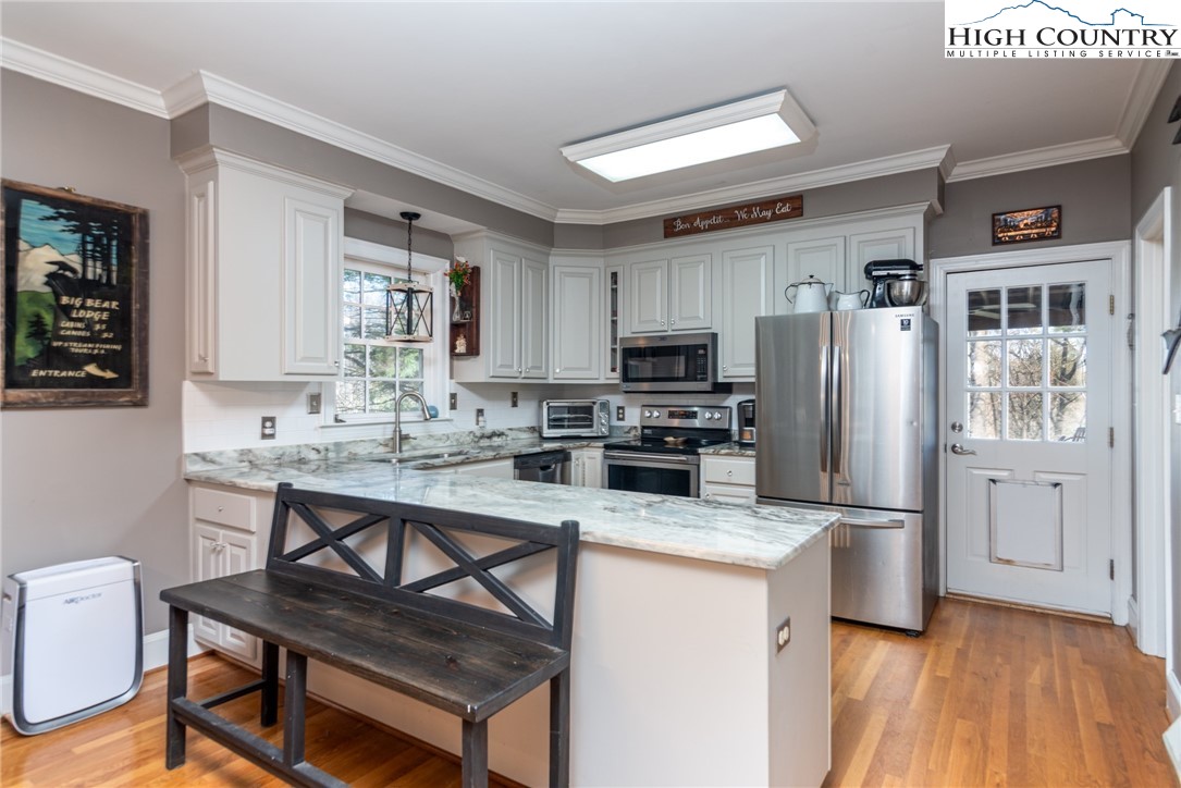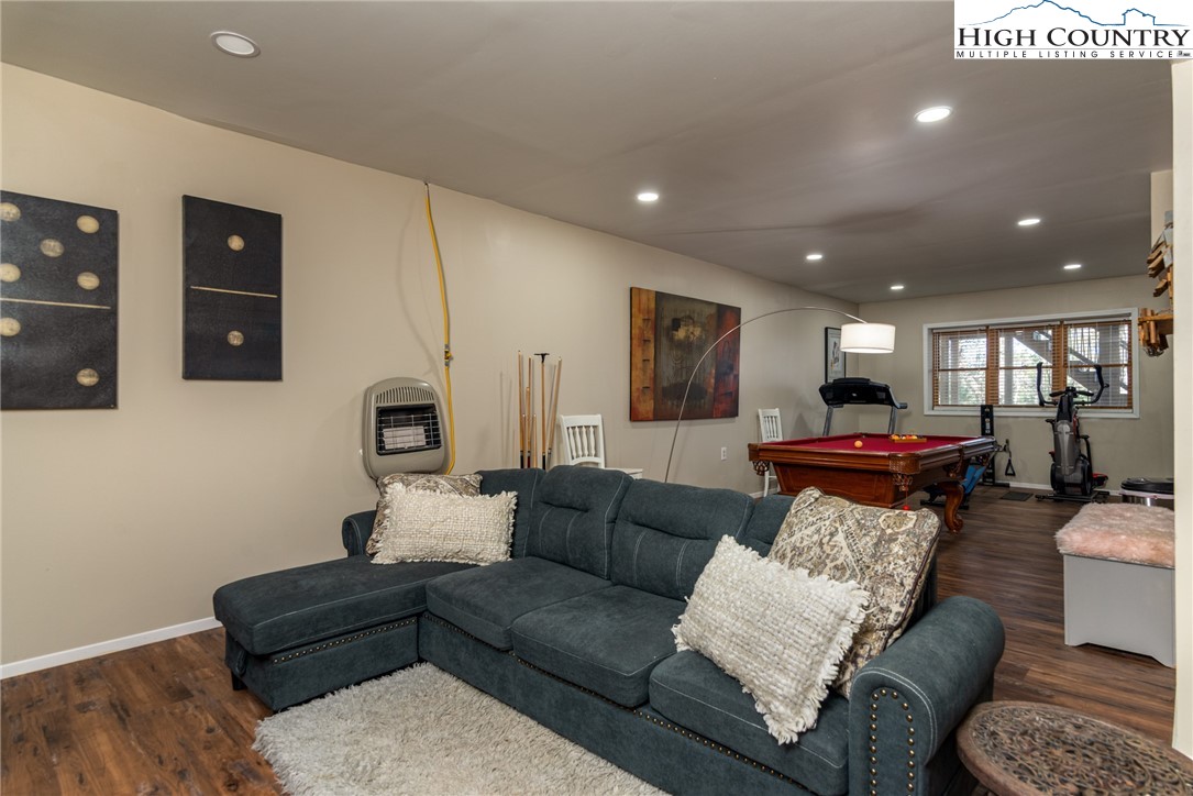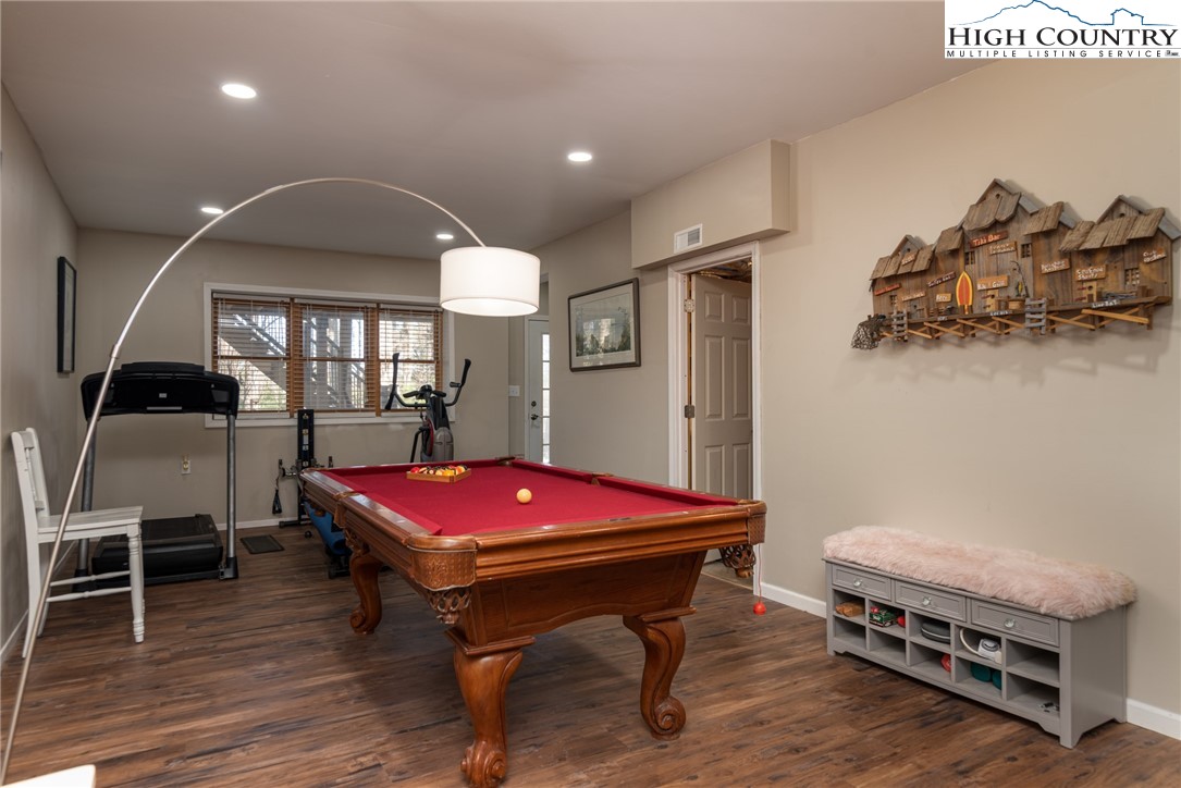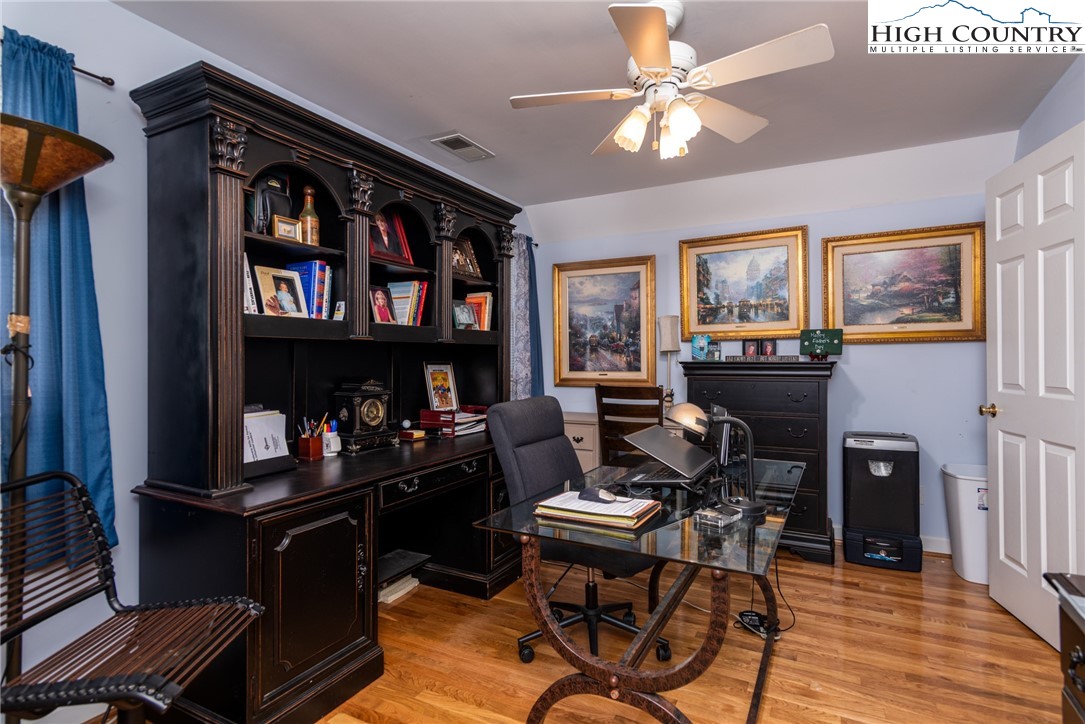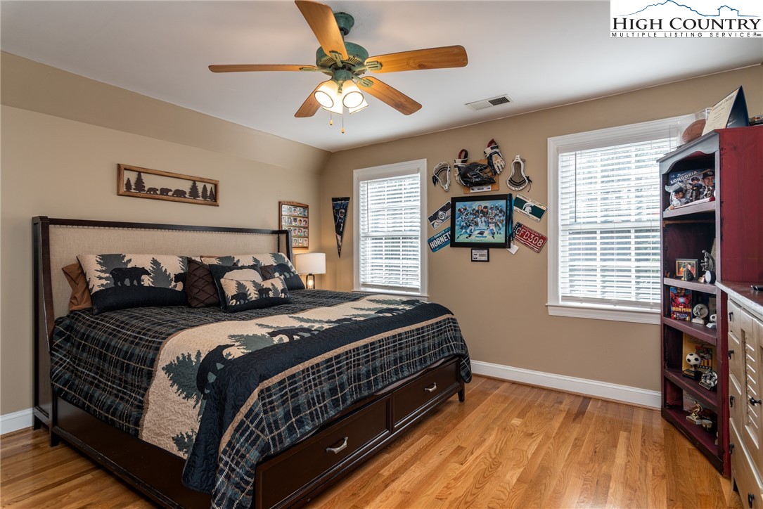 Envision residing in this well built home nestled within the High Meadows Country Club. Just a short golf cart ride to all the amenities this club offers. The exterior exudes grandeur with its stone foundation and custom hardwood siding. The expansive lot is landscaped and illuminated with lighting. A newly constructed detached carport adjoins a storage building which provides electricity. The carport provides over 600 sf of parking and/or gathering space. There is a fully fenced back yard. Upon entering the house, you will be greeted by nine-foot ceilings, crown molding, and hardwood floors. The first floor comprises a spacious primary bedroom with a walk-in closet and a full bathroom. An open living/dining area is adjacent, featuring a stone fireplace and a kitchen equipped with granite counters, custom cabinets, stainless steel appliances and access to the covered back patio. Hardwood flooring continues throughout the second floor, which includes two bedrooms, an office/media room with a closet and a full bathroom with a vaulted ceiling and skylight. The basement extends the living space, encompassing a one-car garage, a full bathroom, laundry area, a work area with walk-out access, and a spacious multi-purpose room currently utilized as a game room. Conveniently located just minutes from the Blue Ridge Parkway, this residence affords easy access to the region’s natural splendor and attractions.