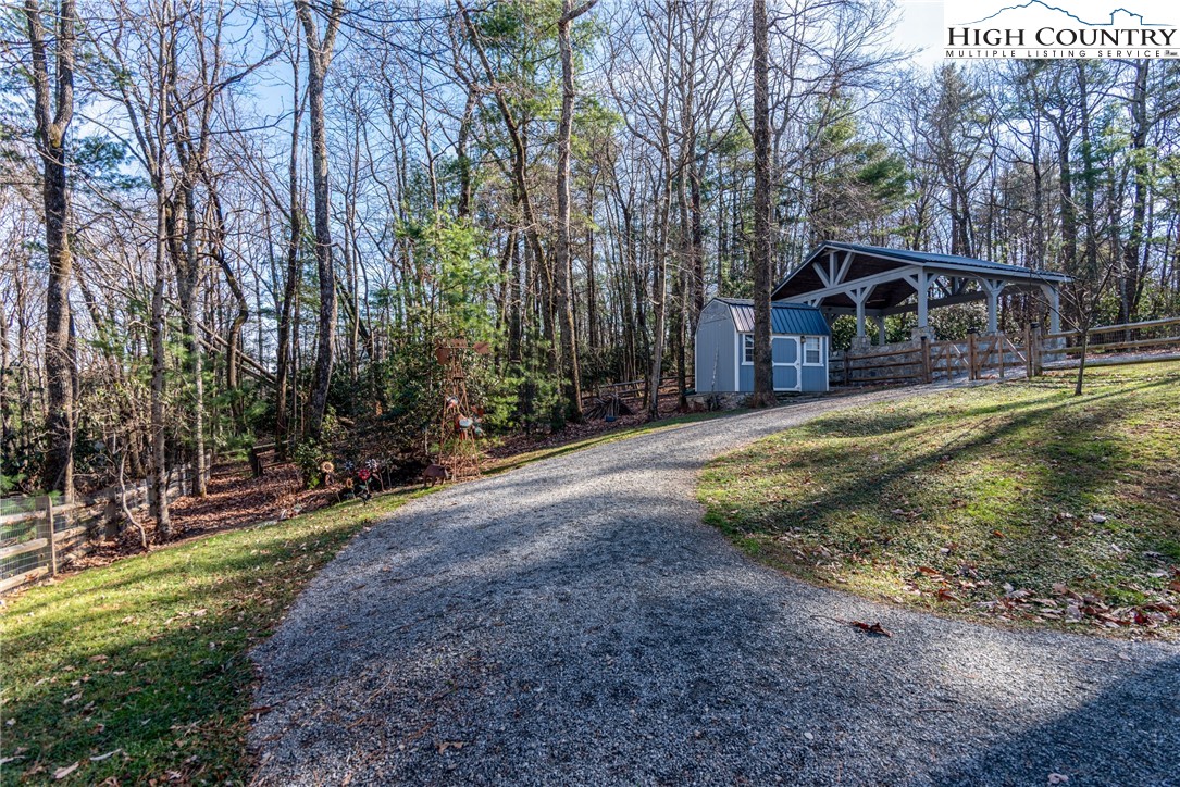 Exterior: Fence, Storage, Gravel Driveway
