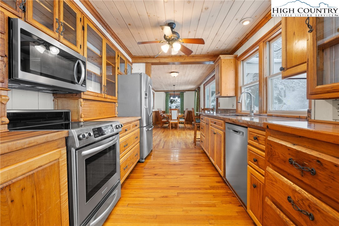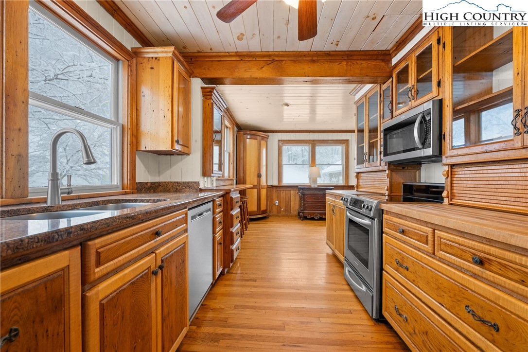 Tucked just outside the town limits of Blowing Rock—yet an easy stroll on the sidewalk to its charming Main Street—this classic mountain cottage offers the rare blend of privacy, convenience, and timeless Blowing Rock character. Set on 1.4 beautifully landscaped and gently rolling acres, the property feels like a woodland retreat, adorned by angel magnolias, tree peonies, evergreens and numerous flowing plants that create a sense of place the moment you arrive. Inside, the three-bedroom plus bonus room, two and a half bath bath layout unfolds with warmth and craftsmanship. Abundant sunlight filters through the windows, casting a soft glow across inviting living spaces on every level of the home. The custom woodwork through out the home is stunning, especially the solid curly maple and cherry cabinets, solid black walnut staircase and doors and wormy chestnut trim and moldings throughout the home. Additionally, the first floor primary bedroom suite, attached two car garage, partially finished basement, central air and ample storage are worth mentioning. Thoughtful updates harmonize with original charm, offering modern comfort without sacrificing authenticity. Outdoor living is equally enchanting; double French doors lead to an oversized deck overlooking the backyard, immerse yourself in the natural elements and the sense of tranquility that feels worlds away—despite being mere minutes from the town’s boutiques, dining, galleries, cafes and other Main Street attractions and festivities. Whether as a year-round residence or a cherished mountain retreat, this Blowing Rock gem captures the essence of High Country living.