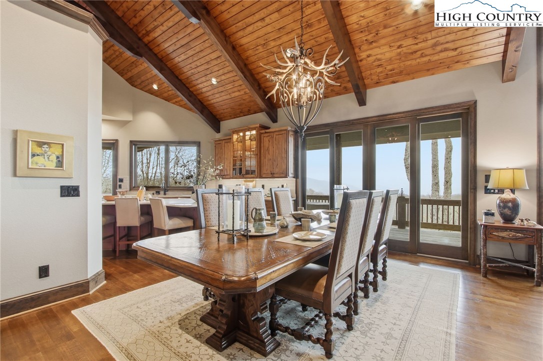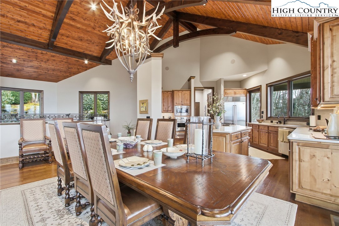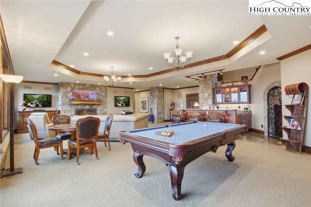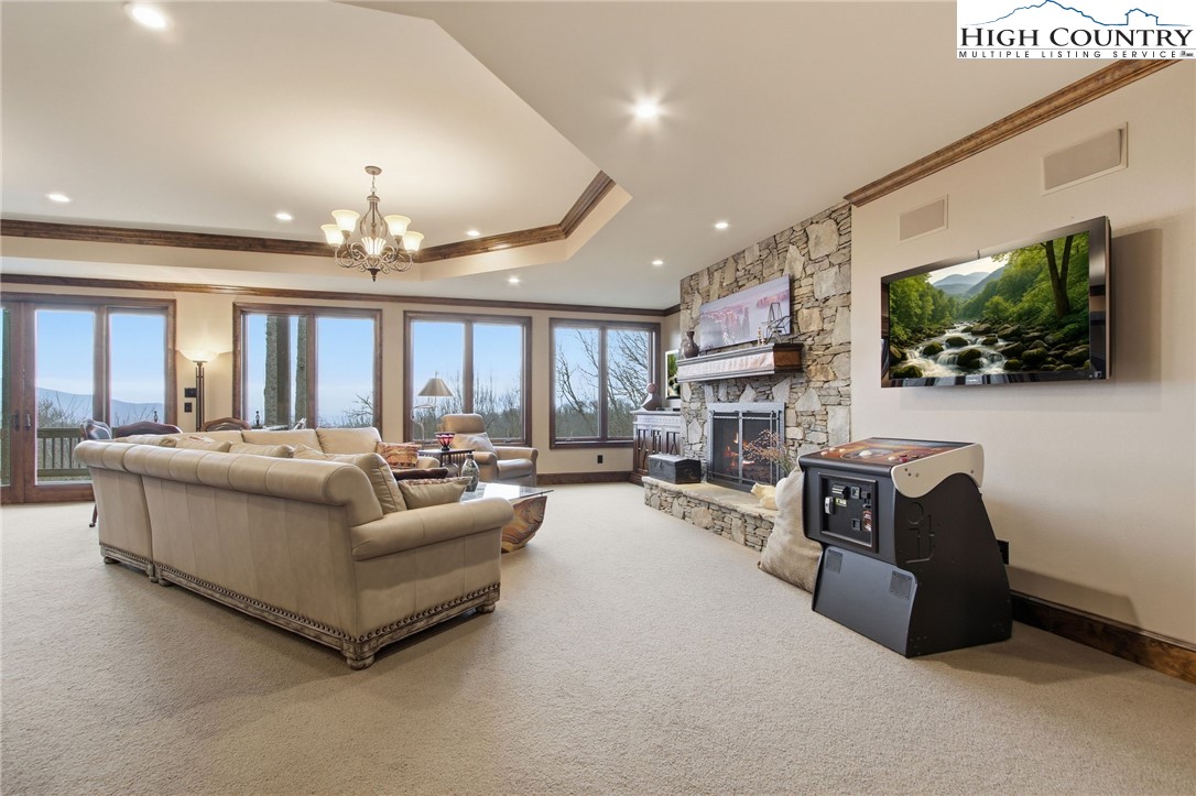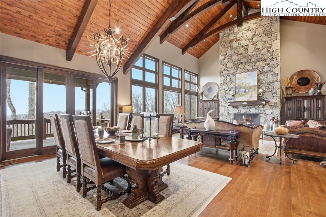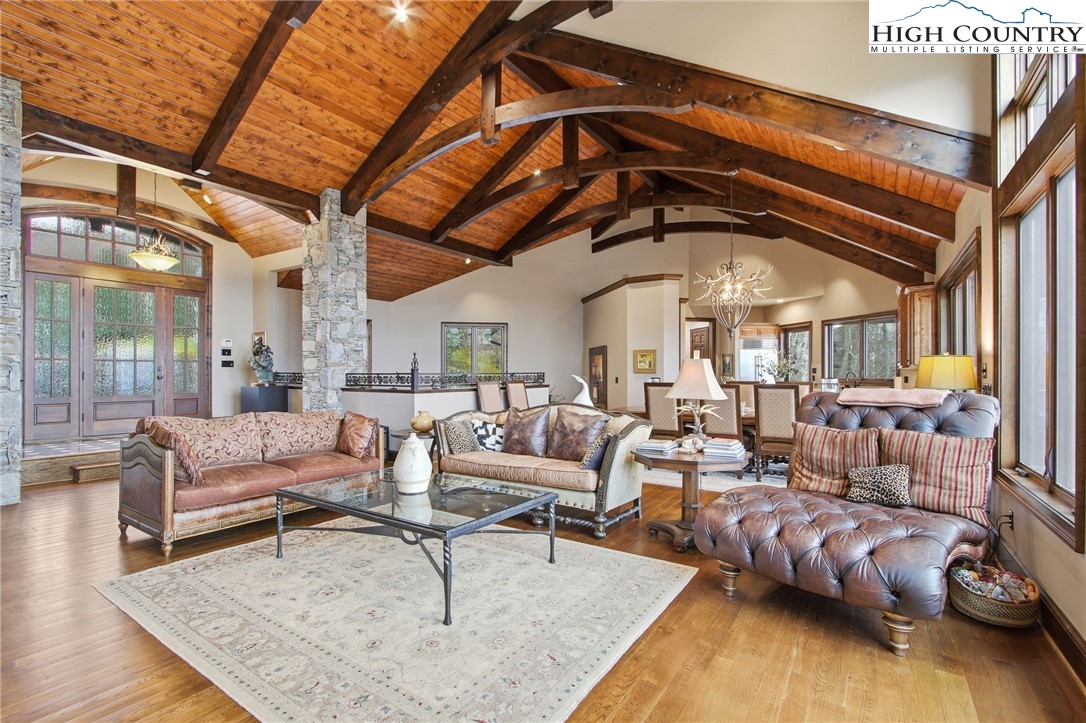 Perched at one of the premier elevations within the exclusive Elk River Club, this 4-bedroom, 3.5-bath mountain contemporary residence is a masterclass in craftsmanship. Designed to blur the line between luxury and nature, the home utilizes soaring glass walls and expansive decking to frame breathtaking, long-range vistas of the Blue Ridge Mountains stretching across North Carolina and Tennessee. The entry level is designed for both high-end entertaining and quiet retreat. The gourmet kitchen and dining area are a chef's dream, while the great room is anchored by dramatic tongue-and-groove ceilings and rich hardwood flooring. The Primary Suite serves as a private sanctuary, complete with its own fireplace. Living spaces transition seamlessly to covered and open-air outdoor areas—perfect for soaking in mountain sunsets. The versatile lower level offers a secondary hub for guests and recreation, featuring a central family room equipped with a custom bar and dedicated game area. Accommodations include a junior primary suite, plus two additional bedrooms and a shared bath. Every inch of this estate reflects meticulous attention to detail, from the intricate wood trim to the sophisticated material palette. This isn't just a home; it’s the realization of a lifestyle dream in one of the High Country’s most prestigious communities.