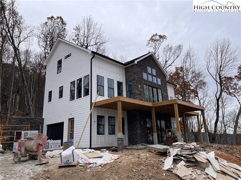 Experience serene mountain living with this stunning custom-built home in the gated, low density, Elk Creek Mountain community is perched at 4,400 feet in elevation offering long range views for every season. The property is centrally located between the two great towns of Boone and West Jefferson in the vibrant community of Todd! This modern mountain farmhouse features three floors spanning over 3,273 sq ft on an expansive 2.1 acres, layered Blue Ridge Mountain views taking your breath away. The open floorplan is the heart of the home. The second level includes the living room, with its stone gas fireplace, featuring a cathedral ceiling, a chef’s kitchen with a granite-topped island, flows seamlessly into a dining room and onto a large deck, good for lounging or entertaining while soaking in panoramic vistas. The home features a 4-bedroom layout: 2 ensuite suites boasting walk-in showers, custom walk-in closets, with incredible views. Additionally, on the third level there are two additional bedrooms with en suites, including an office or playroom, ensuring both space and privacy. The lower level of the home with 10-foot ceilings is good for gatherings, including a large laundry area and garage with power for EV. The walkout patio is powered for a hot tub. Nestled just 10–15 minutes from West Jefferson and 25 minutes from Boone, you are near to dining, shopping, riverside recreation on the New River, and vibrant community events. Property is currently 65% complete with an estimated completion date of February 2026. Pre-Inspection completed and will give prospective buyers upon request. See this beautiful house and let’s make it your home!