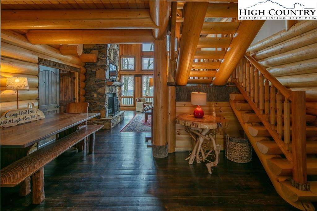 The Camp Red Fox is a custom-designed log home perched just above the Great Camp of The Lodges at Eagles Nest, resting at 4,500 feet of elevation. Boasting seasonal long-range mountain views and nearly 180-degree southern exposure, Camp Red Fox was the first true live load log home built at Eagles Nest and features beautifully hand-hewn white pine logs. The process of harvesting, seasoning, and hand-hewing massive log beams is painstaking, requiring craftsmen skilled in the art of log home building. However, the resulting look is an unmistakably unique mountain home sure to impress the most discerning buyer. Complimenting Camp Red Fox’s authentic exterior look, the interior of this three-master suite home is the embodiment of rustic elegance featuring exquisite granite counter tops and stainless appliances in the kitchen and gorgeous dark-stained pine flooring throughout. The Lodges at Eagles Nest is the premier mountain community in NC High Country and the hottest selling development in the Blue Ridge Mountains. Amenities include miles of hiking/ATV/biking trails, open air BBQ pavilion and amphitheater and much more. Call today to schedule a personal tour of The Camp Red Fox!