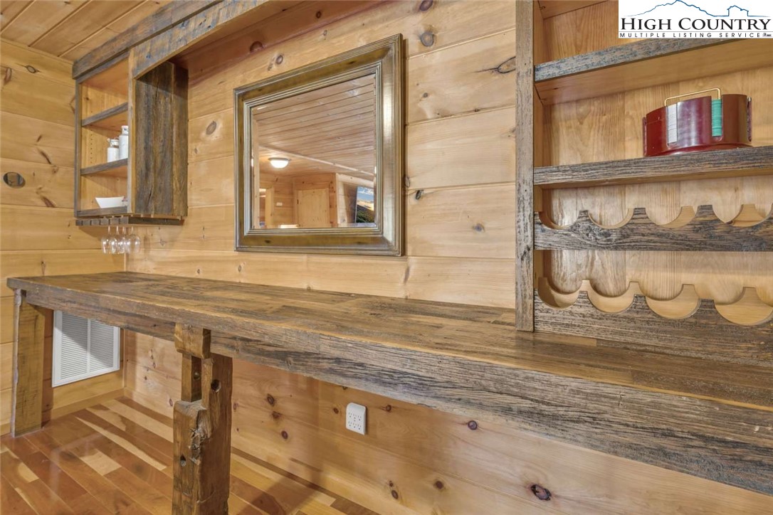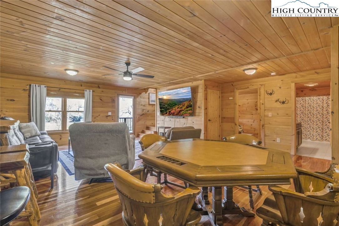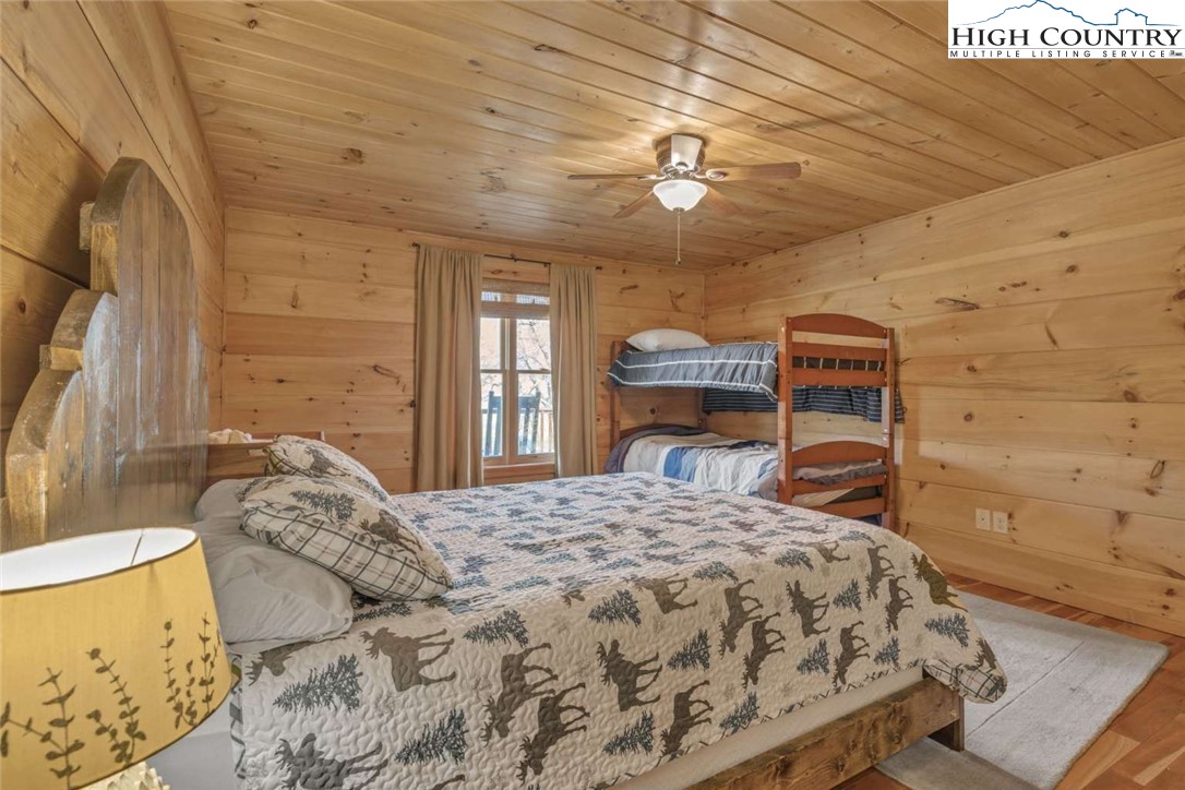 4-bedroom, 3 full bath home overlooking a pond on Willow Valley Golf Course! Enjoy beautiful four-season valley views. No HOA. All wood interior - floors, ceilings, and walls. This three-level home has a main level entry open to the kitchen, great room, dining area, 2 bedrooms, full bathroom, and a propane gas fireplace. Upper level has the master suite with a large bedroom and brand-new solid surface walk-in shower with multiple shower heads. Downstairs has a large family room with a beautiful game table, 85” TV with a theater style surround sound system, and a custom bar. Downstairs also has a very large bedroom with one queen bed and bunk beds. The downstairs has a laundry and full bathroom. Both the main level and downstairs have beautiful high decks overlooking the pond and first green of the golf course. Outside, steps lead down to an inviting outdoor gathering area fire pit. Central heat and air. This is the PERFECT location for everything Boone, including almost 100 restaurants. Shared well for four houses. The electric bill for the well is shared among the four neighborhood houses. Each owner pays for three months a year (owners paid $135 in total for the one year previous to this listing). Bathrooms have tile floors. While the address is Vilas, this home is less than 10 minutes to downtown Boone, and super convenient to area attractions like ski slopes, hiking, Linville Falls, and Grandfather Mountain. This home has been a family vacation home, never a rental under the current owner. New refrigerator, one year old induction oven and garbage disposal.
