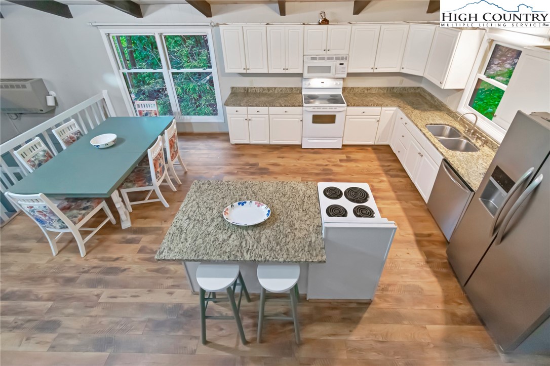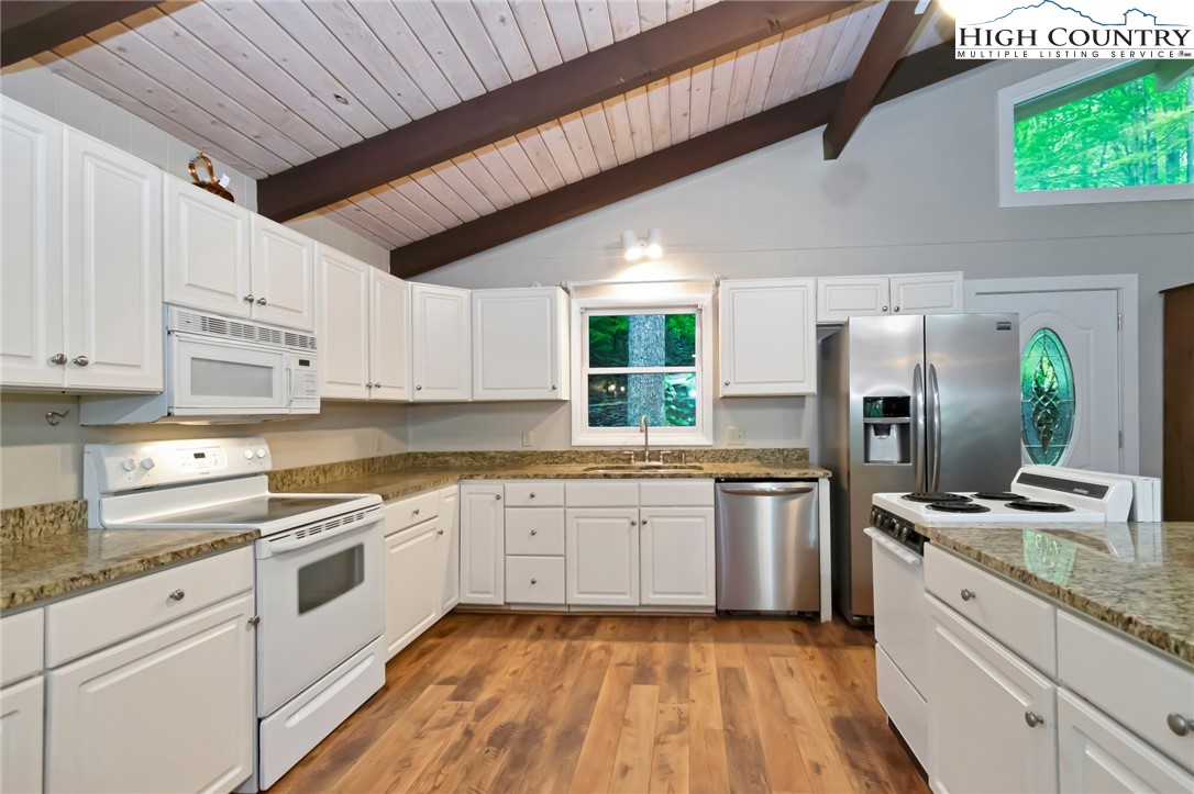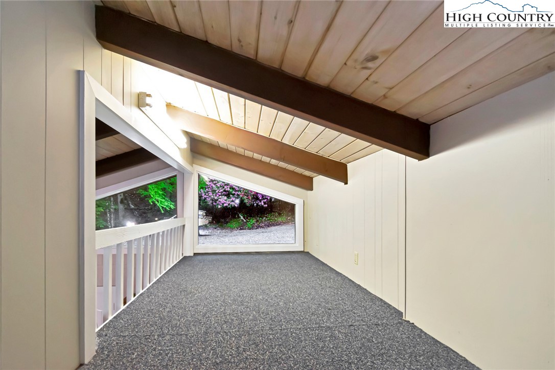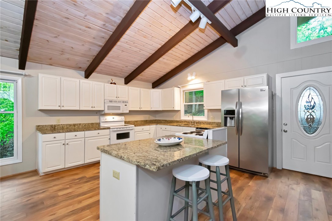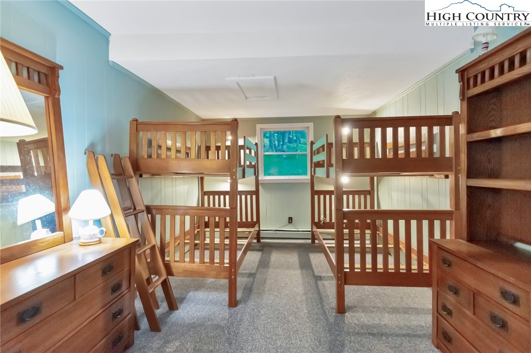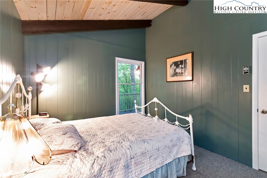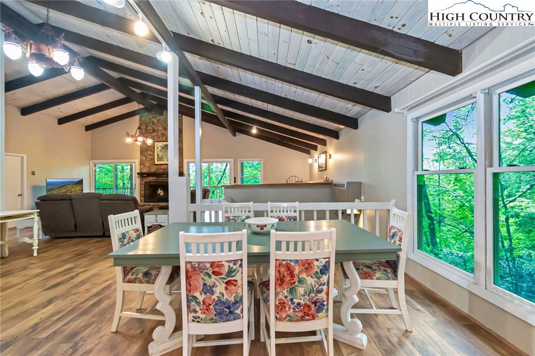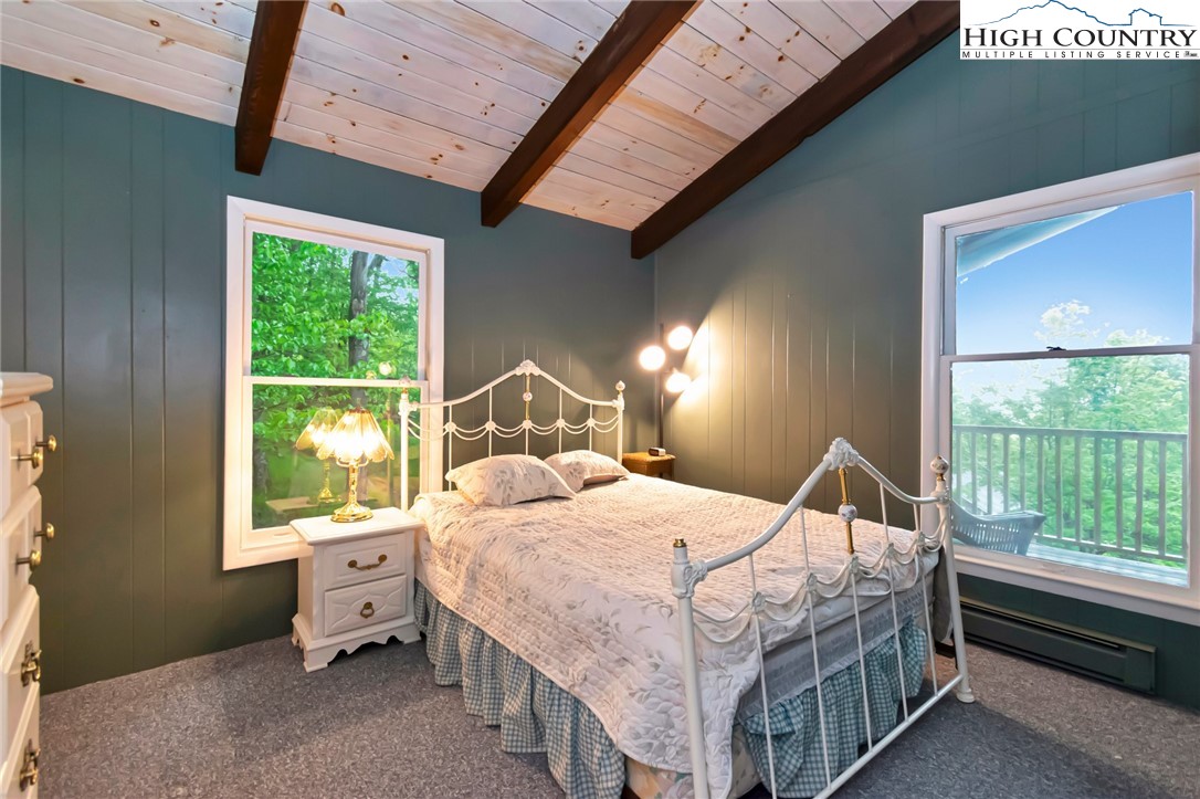 Make sure you check out the best entry for this home - don't be intimidated by the back door steps on Lake Rd (legal address). Best entry is to the front door at 105 Foxgrape Hollow. Location, acreage, view, privacy and room for all. That is what this property offers. Within walking distance to Lake Coffey and the Beech Mountain Club recreation area and with small creeks on each side of the home. The home consists of 2 living areas plus a small loft accessed by stairs upon entering the front door. This area is not included in the square footage due to height limitations but would make a great play area for kids or use as storage. The main level has an open kitchen, living and dining areas with the kitchen having white painted wood cabinets, granite counter tops, 2 stoves, 2 refrigerators and laminate flooring throughout these areas. 2 bedrooms and 3 full baths as well as access to the large covered deck complete this level. The cathedral ceiling is T&G with nice beams. The lower level has another 3 bedrooms (one bedroom closet features a hidden kid fort), a full bath and family room. Access to an unfinished area is next to the stairs and houses a second laundry. A shed beside the driveway is included. 72 gallon Rheem water heater was installed in 2024. There is a sub panel for a hot tub but the old hot tub was removed. A golf cart in the shed is negotiable. An additional lot on Lake Rd is on the north side of the home. The Foxgrape Hollow lot is where the driveway to the front door is located. See plat and aerial in documents for visual information. A current sports level Beech Mountain Club membership is available for a new buyer. An 80 gallon Blue Ridge Propane tank services the heater in the great room and once serviced propane logs but those have been removed. Within walking distance to the Beech Mountain Club recreation area, one of 3 campuses available to its members, a great value with a big savings over what a new membership would cost. See Club information in Documents.