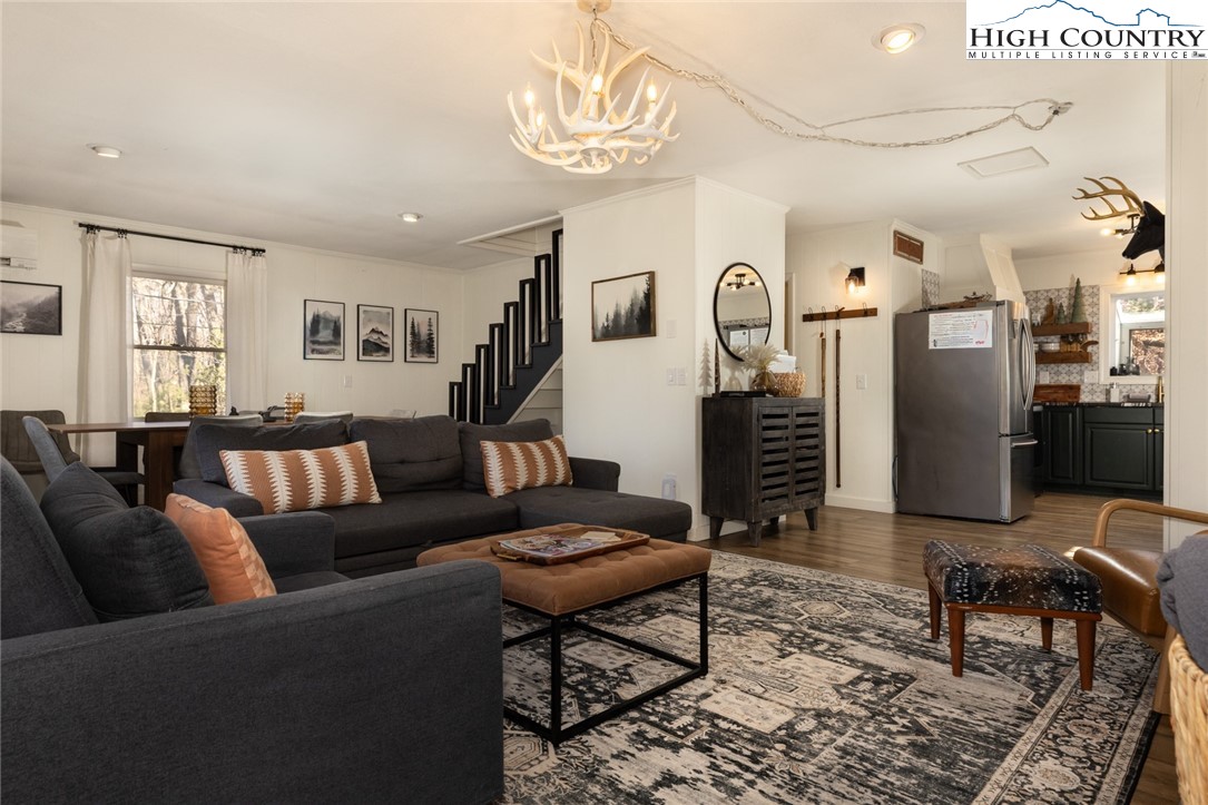 Welcome to Natures Calling! a modernized mountain beauty located in the gated community of Powder Horn Mountain. IT is the perfect place to call home! This is a double lot with over an acre of land. The property will come furnished and is currently in a vacation rental program. ($38,000 gross 2025) This is a 3 bedroom 2 full bath home with a newer (under 5 years) mini split system for efficient heat and air throughout the year. Main level has 1 bedroom and 1 full bath, kitchen, dining, living room with gas fireplace. Upstairs is 2 large bedrooms, one with a king bed and private balcony and one with 2 full beds. All rooms have flat screen TV's with Roku. EV Charging station, Hot tub, and a NEW Rinnai tankless water heater on site ready for installation (currently there is a regular hot water heater working fine, seller leaving instant for buyer) High Speed fiber internet through skyline skybest. Hardline gas to outdoor grill. Outdoor furniture to also remain. Community POA dues are 1988 per year. Powder Horn amenities include pool, tennis court, miles of hiking trails, playground, 3 ponds, campground, gated entry, full time maintenance, chapel, clubhouse with events, fitness center, game room and more. Come check it out! It won't last long!