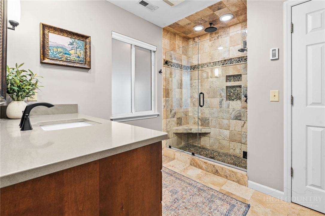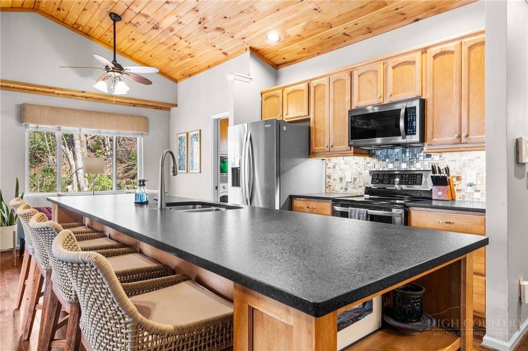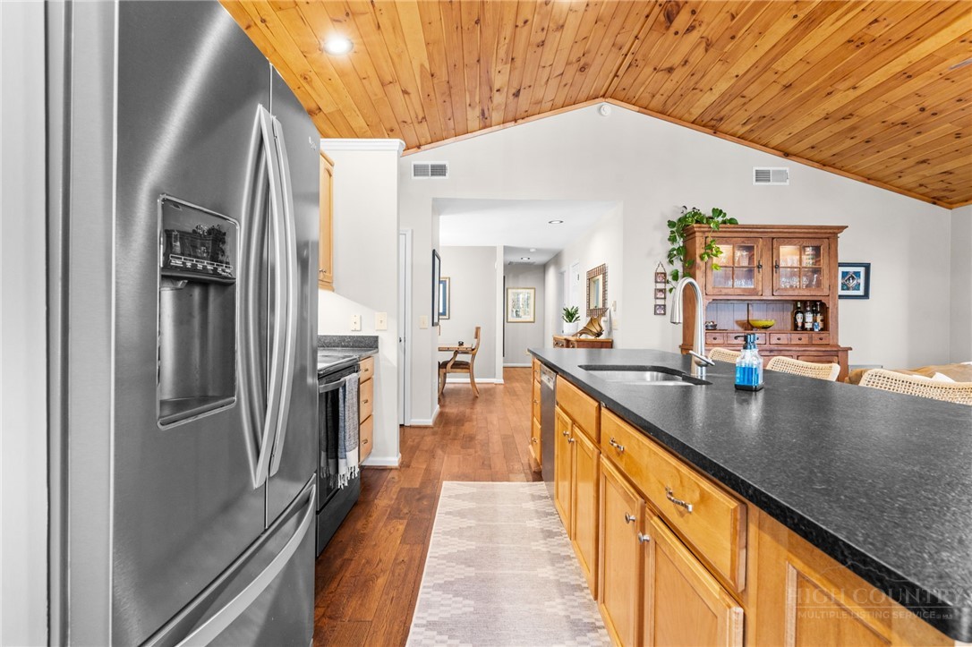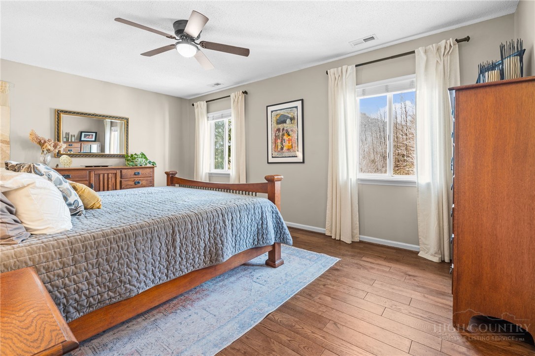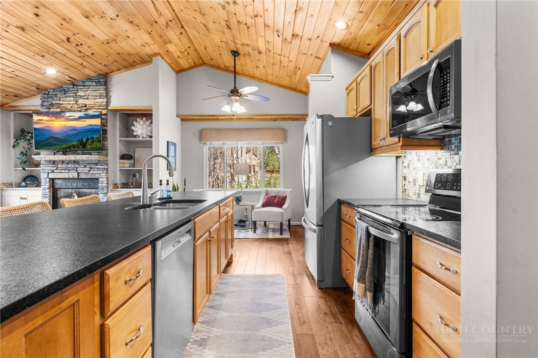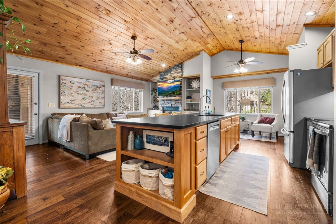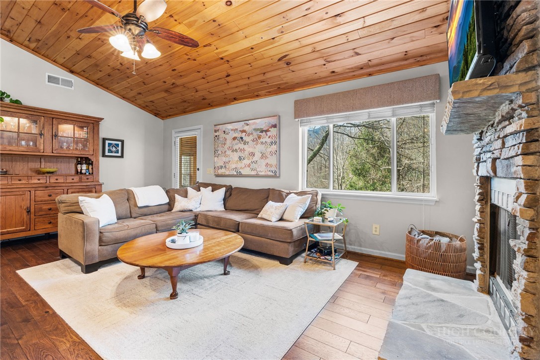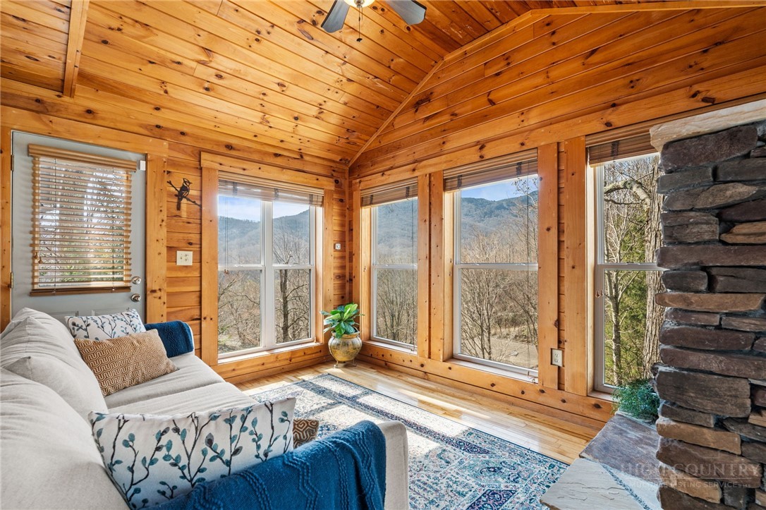 Perched above the Woodwinds neighborhood, 220 Woodwinds Lane - aka Boulder Top Retreat - delivers big views, cool breezes, and the sound of Valley Creek as your daily soundtrack, all with Grandfather Mountain front and center. Minutes to Boone and Banner Elk, but it feels a world away. Inside, the open main level is built for gathering, anchored by a 12-ft leathered granite island and easy flow between kitchen, living, and dining. The oversized primary suite offers a private escape, while the sunroom—complete with tongue-and-groove detail, second fireplace, and sweeping views—might just steal the show. Guest bedroom, full bath, and laundry also on main. Downstairs adds a third bedroom, full bath, and flexible spaces for a den, game room, home gym, or overflow guests, plus a two-car garage with custom built-ins. Outside, enjoy an oversized deck with panoramic views and a welcoming water feature at the entry. Walking distance to Otter Falls, and close to parks, trails, and year-round High Country recreation. New roof (30-year warranty) installed in April 2025.