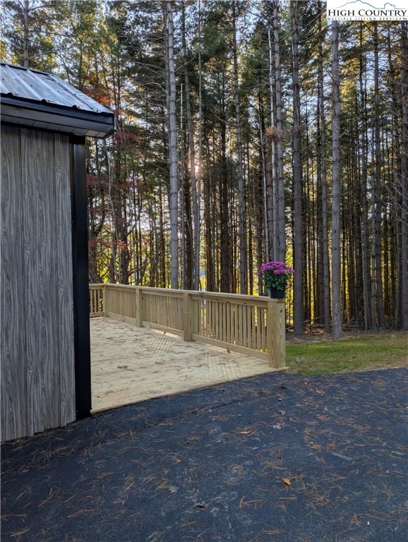 NEW stick-built home with LOW MAINTENANCE Metal siding, metal roof and paved driveway on 1.5 acres surrounded by woods making that new 300+ square feet of decking a private mountain sanctuary in the great outdoors! The home has a 2 bedroom septic but the sunroom is too pretty to sleep in. With 9 windows and a glass door, the tree house effect is fabulous in this room! The barn doors and wood ceilings bring a rustic look, while the stainless appliances and laminate, easy to clean and maintain, flooring offer the blended benefits of modern construction and attractive finishes. The covered parking on a paved driveway is a real blessing with winter approaching. Keep your car & shoes clean & dry when you unload the groceries, then soak up the fall colors or watch the falling snow snuggled up in the sunroom. There is storage in a floored space above the bedroom; the washer & dryer are conveniently closeted off of the kitchen. You will be amazed at how much countertop and cabinet space you have in this kitchen with full size stainless appliances and an eat in bar. The bedroom has a queen but could hold a king-sized bed, the walk-in closet will hold all of your sweaters & boots, and his too! There is plenty of open ground for gardening, playing ball, or adding a garage. The only thing you will notice missing in this low maintenance mountain home is the time it DOESN'T take to clean it! This could be the mountain home you've been looking for, NEW Construction, LOW MAINTENANCE, perfect size and affordable on 1.5 Acres in Location, location, location, the mountains of Alleghany County. Come see this NEW home with a 1-year builders warranty, Today!
