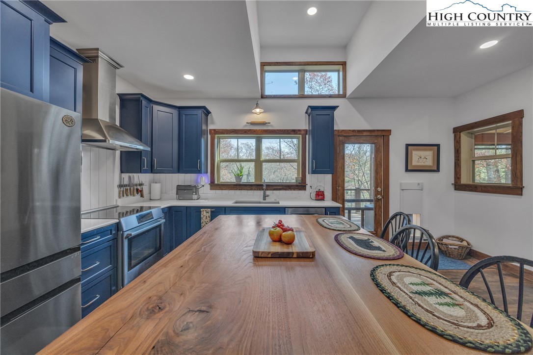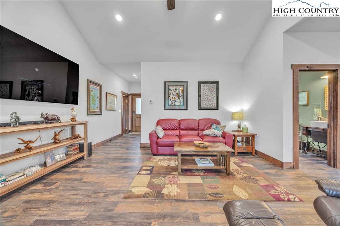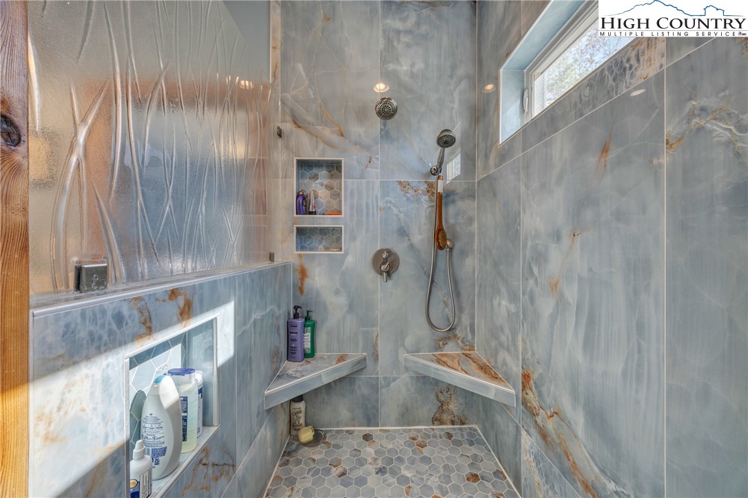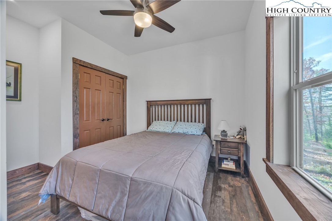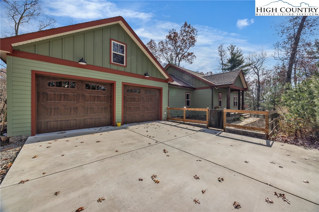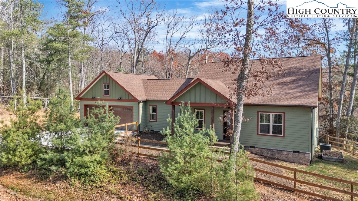 First Time on the Market! Discover this practically brand-new, move-in ready mountain home perfectly situated on 2.01 acres in the gated community of Brightwater on the New River, just 15 minutes from downtown West Jefferson. Built in 2023 with exceptional craftsmanship and attention to detail, this 2-bedroom, 2.5-bath home blends mountain charm with modern comfort. Step inside to find an inviting open floor plan filled with natural light, highlighting the warmth of the wood trim and high-end finishes throughout. The kitchen features beautiful quartz countertops, a shiplap backsplash, custom cabinetry, stainless steel appliances including a Bosch convection oven with induction cooktop, and a black walnut island countertop, ideal for cooking and entertaining. The kitchen opens to a bright dining area and spacious living room with vaulted ceilings, abundant windows, and access to the covered back porch. The primary suite offers a luxurious en-suite with a custom double-sink vanity, a stunning tiled shower, and an open closet. The guest bedroom also includes a private full bath for comfort and convenience. An inviting flex room provides an ideal space for today’s work-from-home lifestyle, perfect as an office, study, craft or hobby room, or even a small guest suite. A spacious mudroom/utility area serves multiple functions as a laundry, walk-in pantry, and pet-friendly station with space for coats and gear. The oversized two-car garage offers ample space for vehicles and storage, with attic access featuring a wood-truss floor, ideal for future finishing as additional storage or a bonus room. Additional features include a programmable dog door synced to your pet’s collar for easy outdoor access, raised garden beds in both the back and side yards, and a partially fenced area perfect for pets or children (not enclosing the full acreage). Surrounded by mature hardwoods and lush mountain foliage, this property offers peace, privacy, and the soothing sounds of nature. Brightwater on the New River is gated, well-established community with an POA, offering residents access to a beautiful riverfront park – perfect for fishing, floating, or quiet picnic by the water. Ideally located just 5 minutes from New River access, 15 minutes to the Blue Ridge Parkway, 20 minutes to West Jefferson, and 30 minutes to Boone, this location offers the best of mountain living with easy access to nearby towns and recreation. Don’t miss this rare opportunity to own a like-new, custom mountain homes.