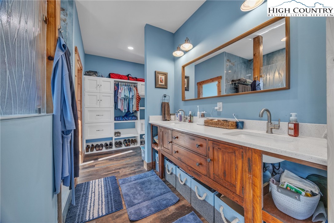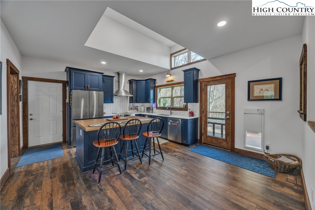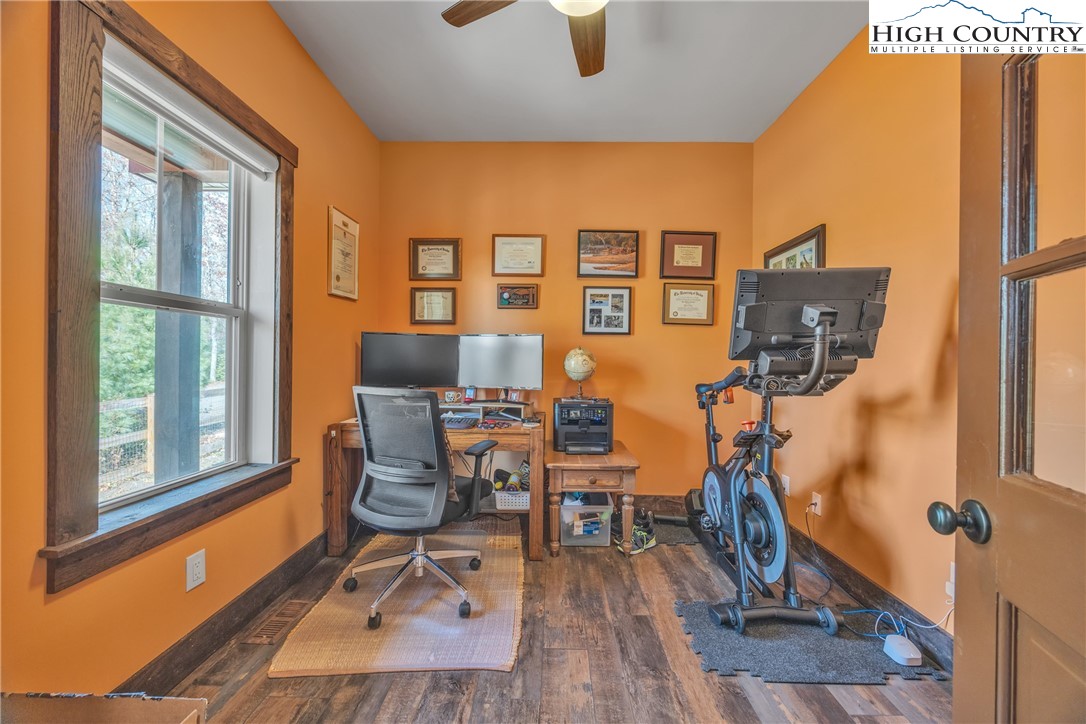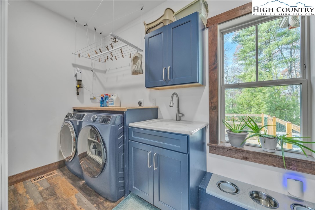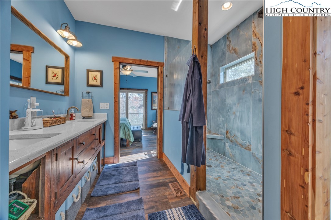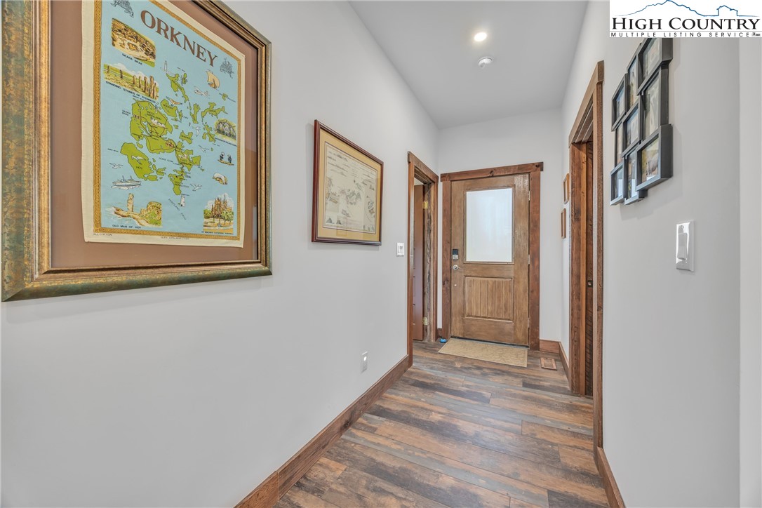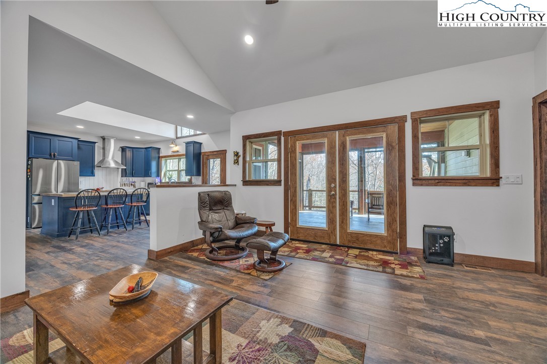 First Time on the Market! Discover this practically brand-new, move-in ready mountain home perfectly situated on 2.01 acres in the gated community of Brightwater on the New River, just 15 minutes from downtown West Jefferson. Built in 2023 with exceptional craftsmanship and attention to detail, this 2-bedroom, 2.5-bath home blends mountain charm with modern comfort. Step inside to find an inviting open floor plan filled with natural light, highlighting the warmth of the wood trim and high-end finishes throughout. The kitchen features beautiful quartz countertops, a shiplap backsplash, custom cabinetry, stainless steel appliances including a Bosch convection oven with induction cooktop, and a black walnut island countertop, ideal for cooking and entertaining. The kitchen opens to a bright dining area and spacious living room with vaulted ceilings, abundant windows, and access to the covered back porch. The primary suite offers a luxurious en-suite with a custom double-sink vanity, a stunning tiled shower, and an open closet. The guest bedroom also includes a private full bath for comfort and convenience. An inviting flex room provides an ideal space for today’s work-from-home lifestyle, perfect as an office, study, craft or hobby room, or even a small guest suite. A spacious mudroom/utility area serves multiple functions as a laundry, walk-in pantry, and pet-friendly station with space for coats and gear. The oversized two-car garage offers ample space for vehicles and storage, with attic access featuring a wood-truss floor, ideal for future finishing as additional storage or a bonus room. Additional features include a programmable dog door synced to your pet’s collar for easy outdoor access, raised garden beds in both the back and side yards, and a partially fenced area perfect for pets or children (not enclosing the full acreage). Surrounded by mature hardwoods and lush mountain foliage, this property offers peace, privacy, and the soothing sounds of nature. Brightwater on the New River is gated, well-established community with an POA, offering residents access to a beautiful riverfront park – perfect for fishing, floating, or quiet picnic by the water. Ideally located just 5 minutes from New River access, 15 minutes to the Blue Ridge Parkway, 20 minutes to West Jefferson, and 30 minutes to Boone, this location offers the best of mountain living with easy access to nearby towns and recreation. Don’t miss this rare opportunity to own a like-new, custom mountain homes.