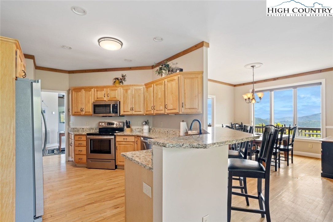 PRIMO LOCATION! Welcome home to Elderberry Escape—a rare opportunity to own a property on Beech Mountain where you'll be able to walk to all the amenities, including the SKI SLOPES & SLEDDING HILL! HOMES in this area RARELY come on the market! Prepare to be captivated by this charming 5 BEDROOM - 3.5 BATH level-entry mountain retreat all situated on .88 of acre LEVEL lot with a paved driveway & GARAGE! This exceptional home is truly ONE of a KIND & boasts unparalleled long-range views of both Sugar & Grandfather Mountains. This is the ONLY home currently on the market that offers this coveted combination of views and incredible proximity! The main level offers effortless living with a desirable open floor plan that features beautiful wood floors, a gas log fireplace, a spacious dining area & a beautifully updated kitchen. There is a separate sitting area with a propane fireplace providing the ideal spot for morning coffee. The main level hosts 3 bedrooms, 2.5 baths and the convenience of a dedicated laundry room. Step out onto the expansive rear deck—the perfect spot to soak in stunning mountain views, watch the sunrises & sunsets and enjoy spectacular stargazing, all while unwinding in your private hot tub. The fully finished lower level is an entertainer's dream, featuring a large game room complete with a pool table. This level also includes 2 spacious bedrooms and a full bath, providing ample space for visiting family & friends. Additional features include a double car garage and the peace of mind that comes with level entry and a level lot—a rare find in the mountains. Simply put, the location and views do not get better than this. This gem will not last long. Schedule your showing today and secure your ultimate mountain lifestyle! The home is eligible for membership at the Beech Mountain Club as a Non-Property Owner but memberships are limited.