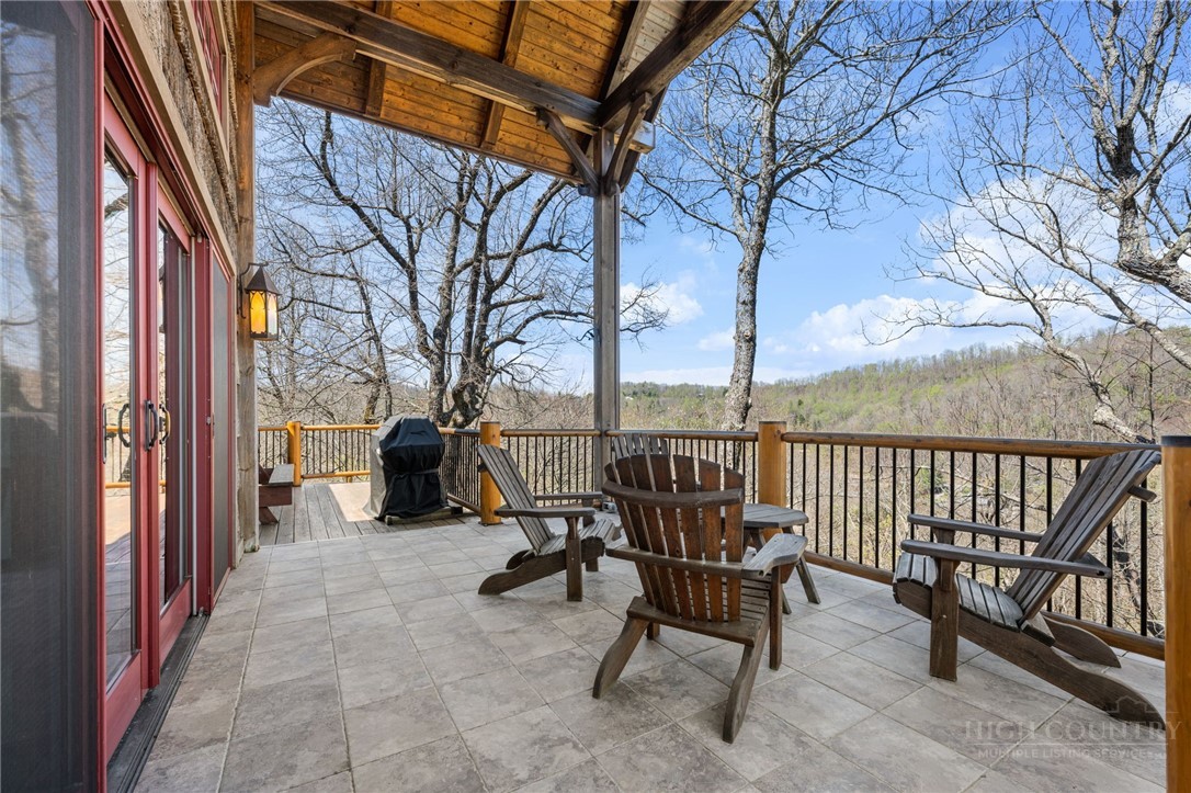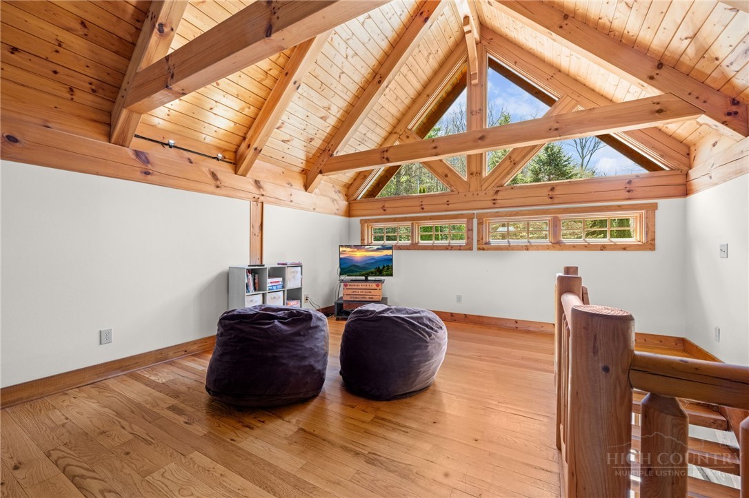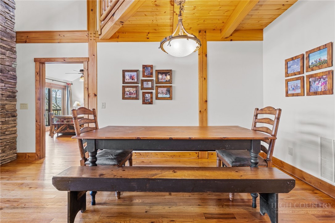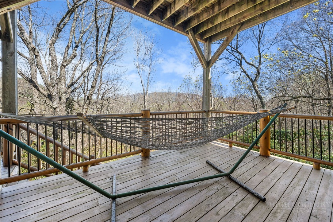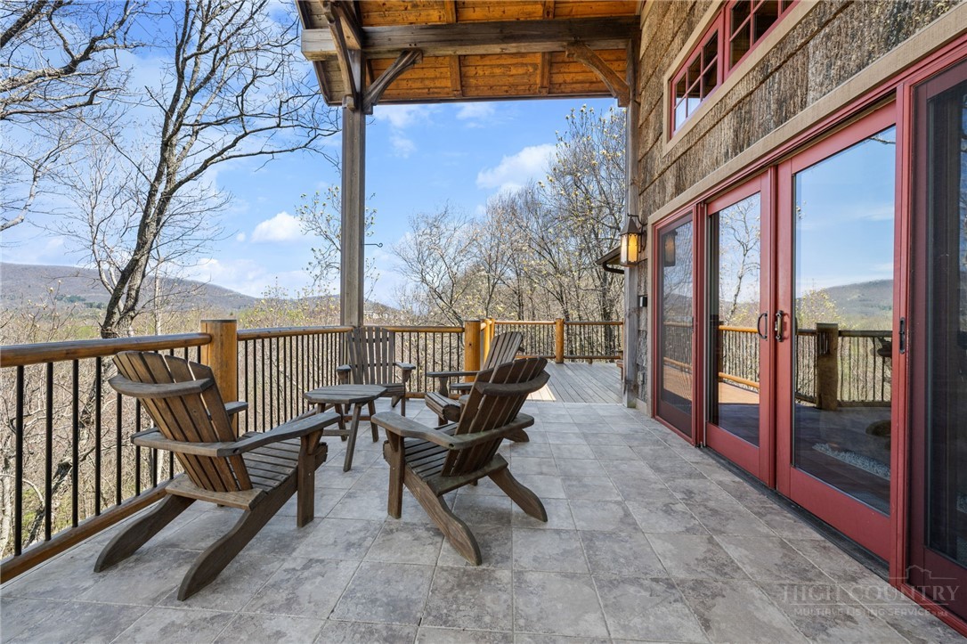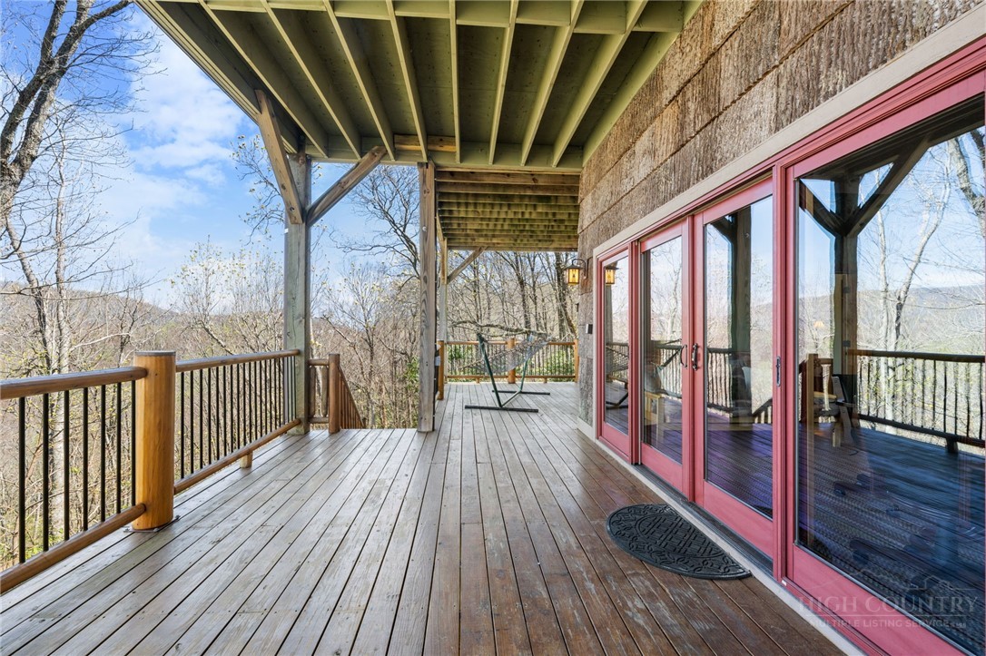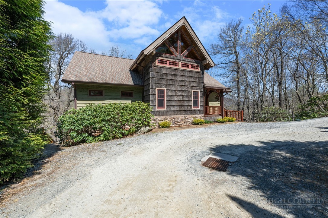 Perched to capture breathtaking long-range mountain views, this expertly crafted timber frame home is tucked among the trees on 2.39 acres, just minutes from downtown Boone. This exceptional mountain retreat offers the perfect blend of luxury, comfort, and unforgettable High Country scenery in every season. Designed and built by renowned local builder Mark Kirkpatrick of Mountain Construction, the home showcases exceptional craftsmanship throughout, from its striking timber frame construction to distinctive exterior details including poplar bark and featherboard siding. Inside, a dramatic window wall frames long-range mountain views, while soaring ceilings, exposed beams, and a floor-to-ceiling stone fireplace create a warm, inviting great room designed for gathering and everyday living. The main level flows effortlessly between the kitchen, dining, and living areas, opening onto expansive covered and open decks, perfect for morning coffee, evening sunsets, and entertaining. The kitchen features granite countertops, stainless steel appliances, and a pantry, while the primary suite offers its own cozy propane fireplace and a spacious ensuite bath with jetted tub, tiled shower, and granite finishes. A second main-level bedroom with its own bathroom provides additional comfort and flexibility. Upstairs, a loft overlooking the great room captures mountain views and leads to a large bunk room, offering additional sleeping space ideal for guests or a fun retreat. The fully finished lower level expands the home’s versatility with a separate entrance, a spacious game and recreation area complete with pool table and card table, office or study, laundry room, and additional bedrooms, including a second primary suite with ensuite bath. Multiple rooms on this level open directly to covered decks, creating a seamless indoor-outdoor living experience across all three levels. Offered fully furnished, this turnkey property is truly move-in ready and well-suited for full-time living, a mountain getaway, or an income-producing opportunity. Smart home features, including connected thermostats, smart lighting, a front door keypad lock, and a WiFi-enabled Ring camera, add convenience and modern functionality, while an EV charging plug provides added flexibility for today’s lifestyle. Recent updates include a new roof (2025), well pump (2025), water heater (2024), and multiple HVAC improvements, along with ongoing professional servicing. Devonwood is a small, established community with large lots and minimal HOA dues of $100 per year. Conveniently located approximately 10 minutes to Boone, 20 minutes to Blowing Rock, and about 25 minutes to Sugar Mountain Resort, the property offers easy access to the best of the High Country including dining, shopping, skiing, and the Blue Ridge Parkway. Whether you're relaxing by the firepit, hosting friends on the deck, or enjoying the changing mountain views, 225 Devonwood is a home designed for living well in every season.