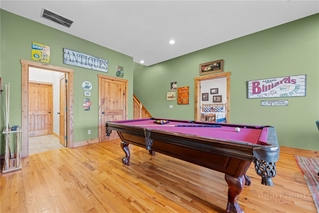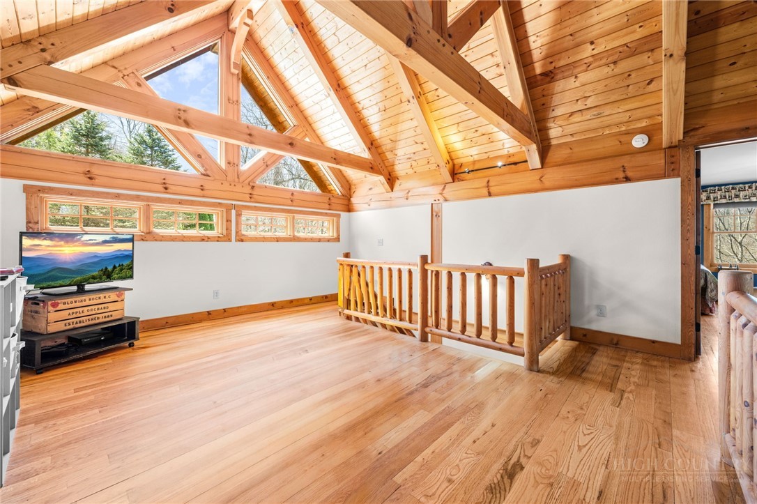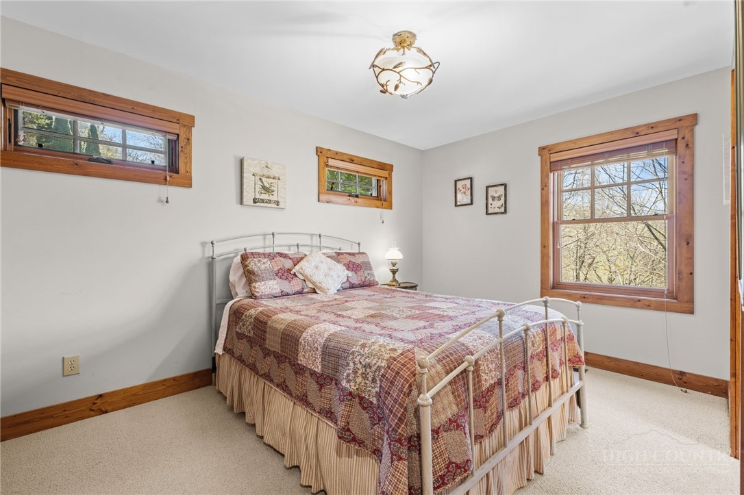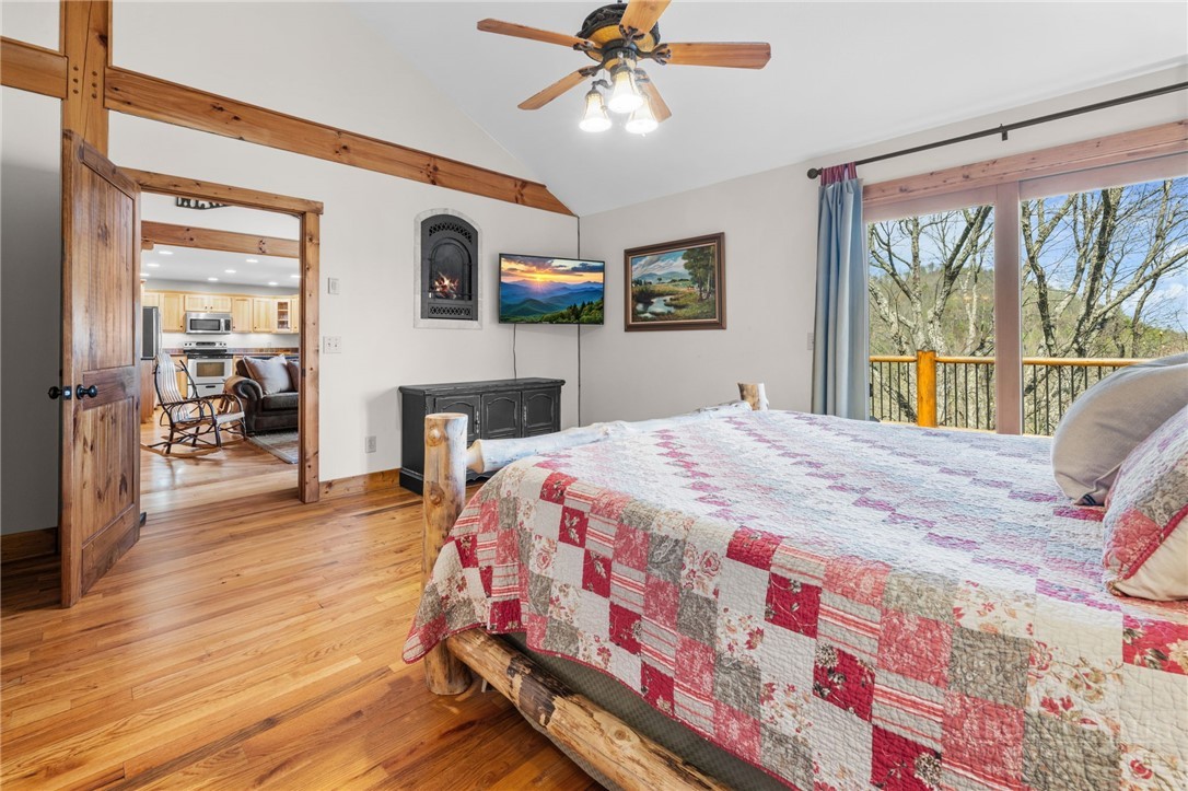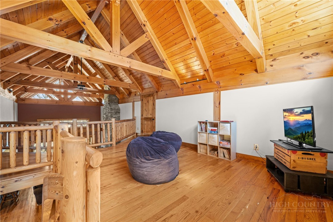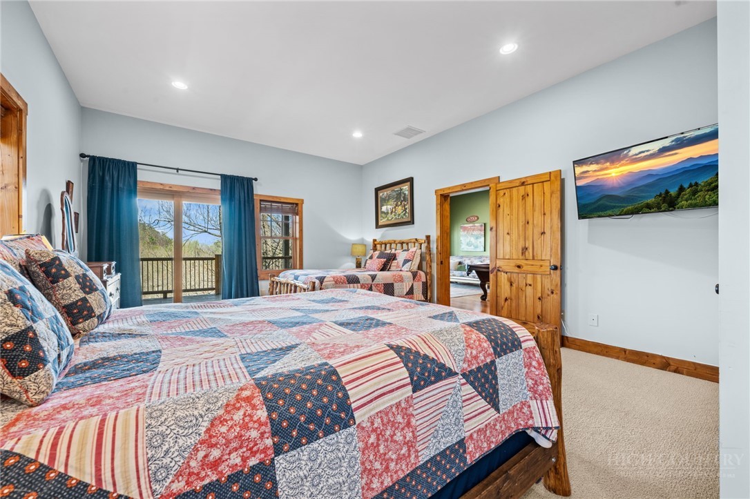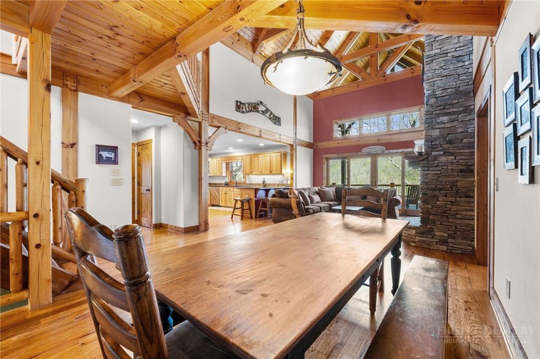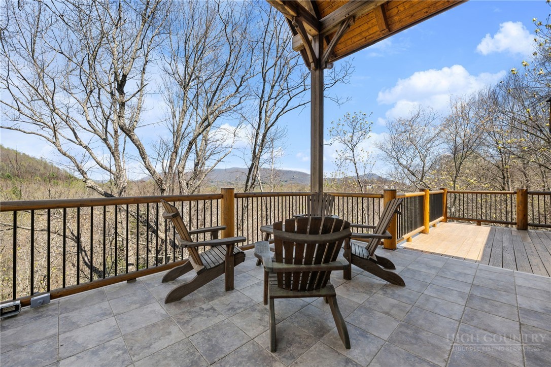 Perched to capture breathtaking long-range mountain views, this expertly crafted timber frame home is tucked among the trees on 2.39 acres, just minutes from downtown Boone. This exceptional mountain retreat offers the perfect blend of luxury, comfort, and unforgettable High Country scenery in every season. Designed and built by renowned local builder Mark Kirkpatrick of Mountain Construction, the home showcases exceptional craftsmanship throughout, from its striking timber frame construction to distinctive exterior details including poplar bark and featherboard siding. Inside, a dramatic window wall frames long-range mountain views, while soaring ceilings, exposed beams, and a floor-to-ceiling stone fireplace create a warm, inviting great room designed for gathering and everyday living. The main level flows effortlessly between the kitchen, dining, and living areas, opening onto expansive covered and open decks, perfect for morning coffee, evening sunsets, and entertaining. The kitchen features granite countertops, stainless steel appliances, and a pantry, while the primary suite offers its own cozy propane fireplace and a spacious ensuite bath with jetted tub, tiled shower, and granite finishes. A second main-level bedroom with its own bathroom provides additional comfort and flexibility. Upstairs, a loft overlooking the great room captures mountain views and leads to a large bunk room, offering additional sleeping space ideal for guests or a fun retreat. The fully finished lower level expands the home’s versatility with a separate entrance, a spacious game and recreation area complete with pool table and card table, office or study, laundry room, and additional bedrooms, including a second primary suite with ensuite bath. Multiple rooms on this level open directly to covered decks, creating a seamless indoor-outdoor living experience across all three levels. Offered fully furnished, this turnkey property is truly move-in ready and well-suited for full-time living, a mountain getaway, or an income-producing opportunity. Smart home features, including connected thermostats, smart lighting, a front door keypad lock, and a WiFi-enabled Ring camera, add convenience and modern functionality, while an EV charging plug provides added flexibility for today’s lifestyle. Recent updates include a new roof (2025), well pump (2025), water heater (2024), and multiple HVAC improvements, along with ongoing professional servicing. Devonwood is a small, established community with large lots and minimal HOA dues of $100 per year. Conveniently located approximately 10 minutes to Boone, 20 minutes to Blowing Rock, and about 25 minutes to Sugar Mountain Resort, the property offers easy access to the best of the High Country including dining, shopping, skiing, and the Blue Ridge Parkway. Whether you're relaxing by the firepit, hosting friends on the deck, or enjoying the changing mountain views, 225 Devonwood is a home designed for living well in every season.