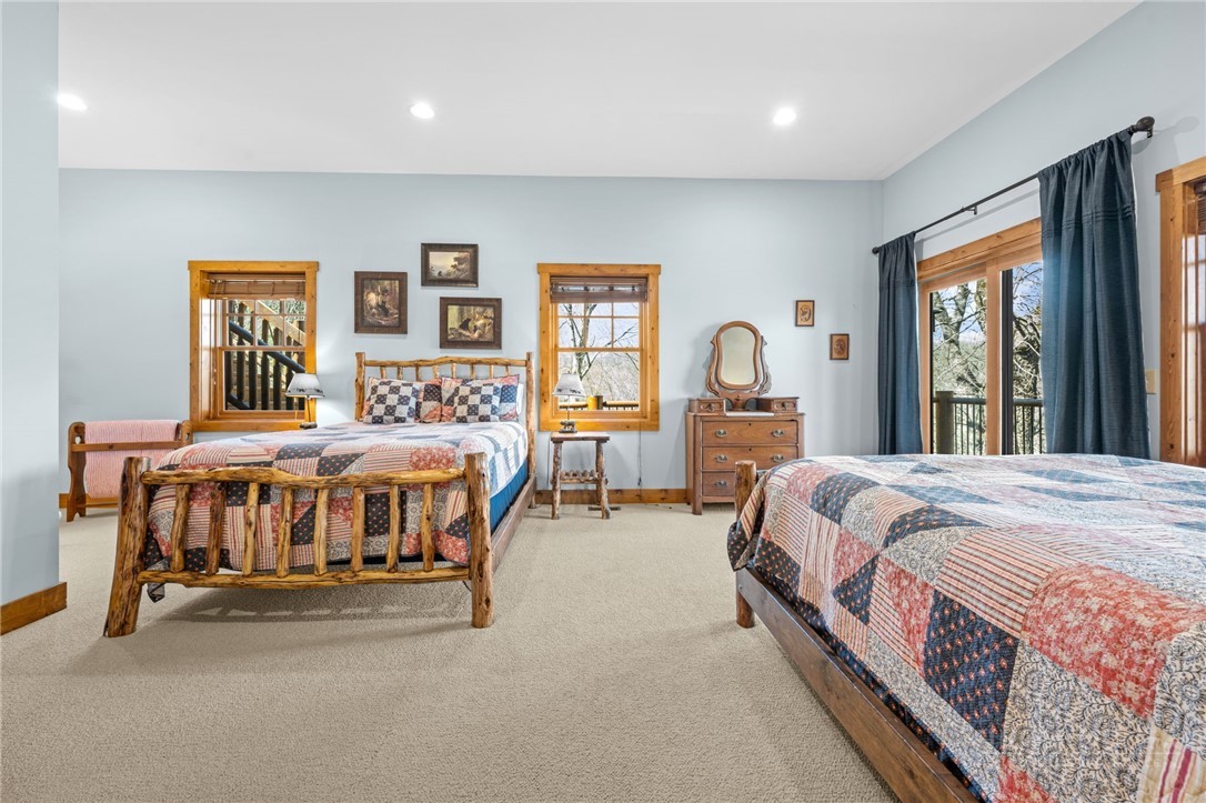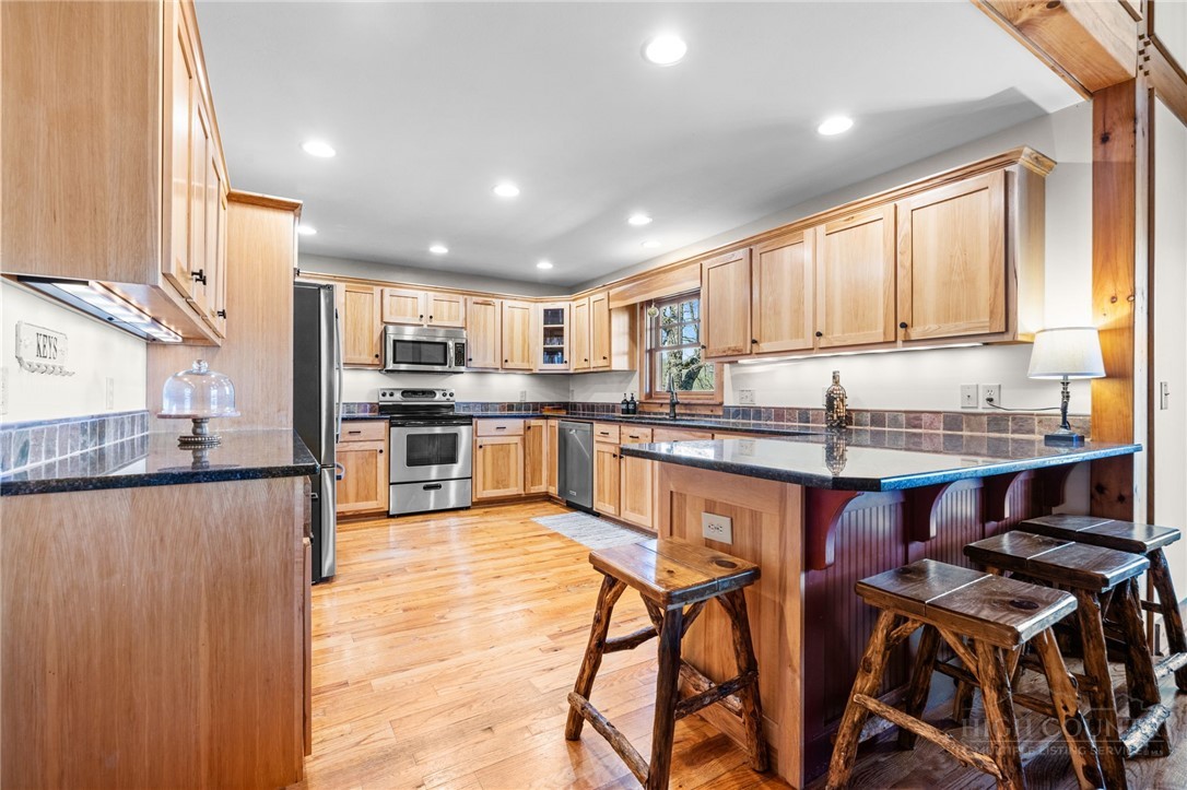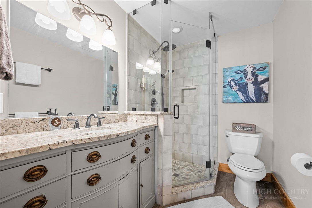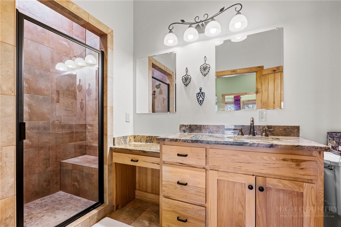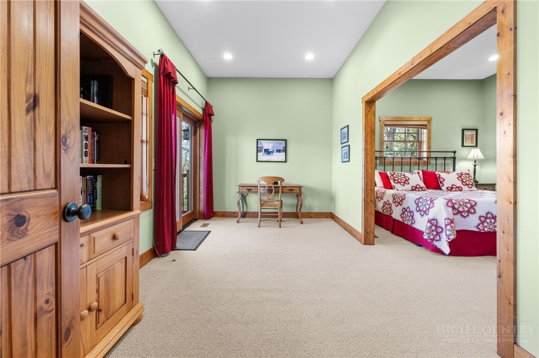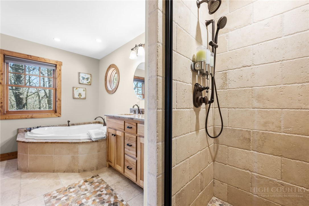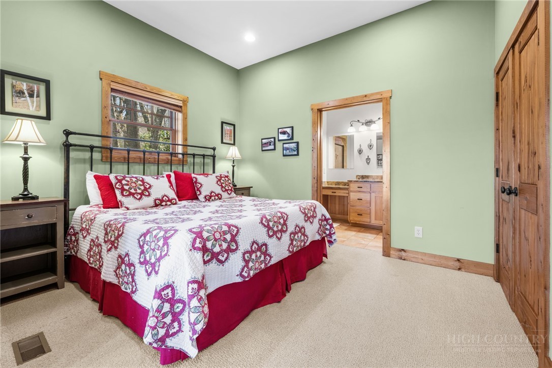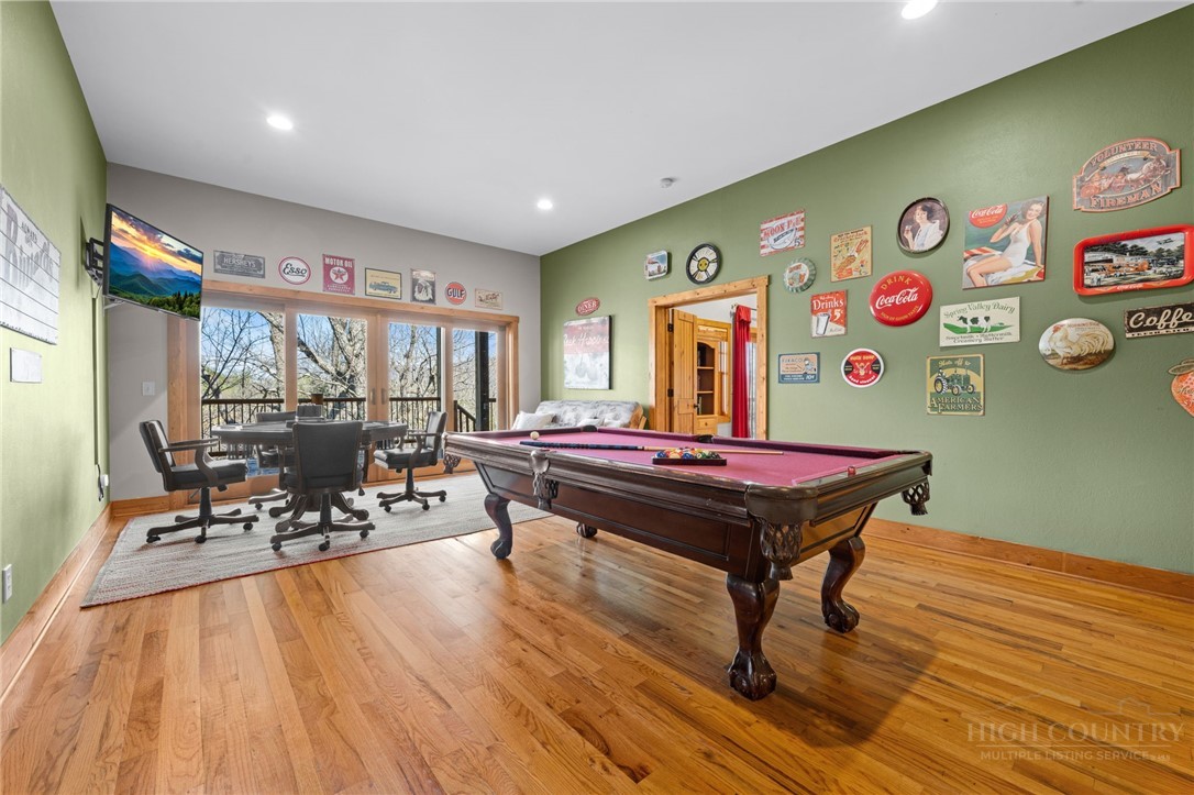 Perched to capture breathtaking long-range mountain views, this expertly crafted timber frame home is tucked among the trees on 2.39 acres, just minutes from downtown Boone. This exceptional mountain retreat offers the perfect blend of luxury, comfort, and unforgettable High Country scenery in every season. Designed and built by renowned local builder Mark Kirkpatrick of Mountain Construction, the home showcases exceptional craftsmanship throughout, from its striking timber frame construction to distinctive exterior details including poplar bark and featherboard siding. Inside, a dramatic window wall frames long-range mountain views, while soaring ceilings, exposed beams, and a floor-to-ceiling stone fireplace create a warm, inviting great room designed for gathering and everyday living. The main level flows effortlessly between the kitchen, dining, and living areas, opening onto expansive covered and open decks, perfect for morning coffee, evening sunsets, and entertaining. The kitchen features granite countertops, stainless steel appliances, and a pantry, while the primary suite offers its own cozy propane fireplace and a spacious ensuite bath with jetted tub, tiled shower, and granite finishes. A second main-level bedroom with its own bathroom provides additional comfort and flexibility. Upstairs, a loft overlooking the great room captures mountain views and leads to a large bunk room, offering additional sleeping space ideal for guests or a fun retreat. The fully finished lower level expands the home’s versatility with a separate entrance, a spacious game and recreation area complete with pool table and card table, office or study, laundry room, and additional bedrooms, including a second primary suite with ensuite bath. Multiple rooms on this level open directly to covered decks, creating a seamless indoor-outdoor living experience across all three levels. Offered fully furnished, this turnkey property is truly move-in ready and well-suited for full-time living, a mountain getaway, or an income-producing opportunity. Smart home features, including connected thermostats, smart lighting, a front door keypad lock, and a WiFi-enabled Ring camera, add convenience and modern functionality, while an EV charging plug provides added flexibility for today’s lifestyle. Recent updates include a new roof (2025), well pump (2025), water heater (2024), and multiple HVAC improvements, along with ongoing professional servicing. Devonwood is a small, established community with large lots and minimal HOA dues of $100 per year. Conveniently located approximately 10 minutes to Boone, 20 minutes to Blowing Rock, and about 25 minutes to Sugar Mountain Resort, the property offers easy access to the best of the High Country including dining, shopping, skiing, and the Blue Ridge Parkway. Whether you're relaxing by the firepit, hosting friends on the deck, or enjoying the changing mountain views, 225 Devonwood is a home designed for living well in every season.