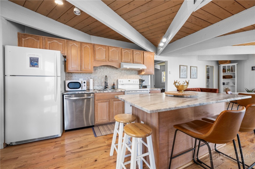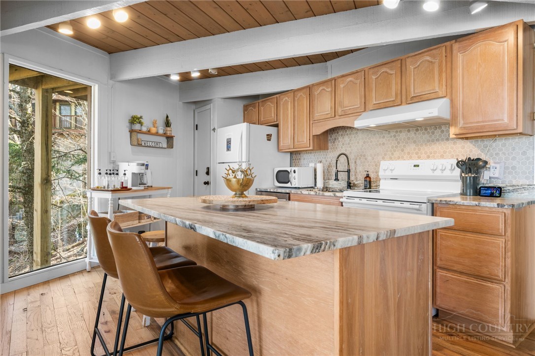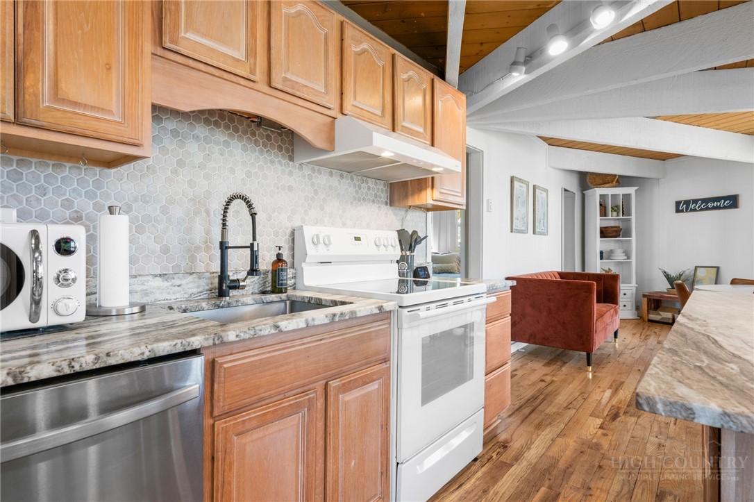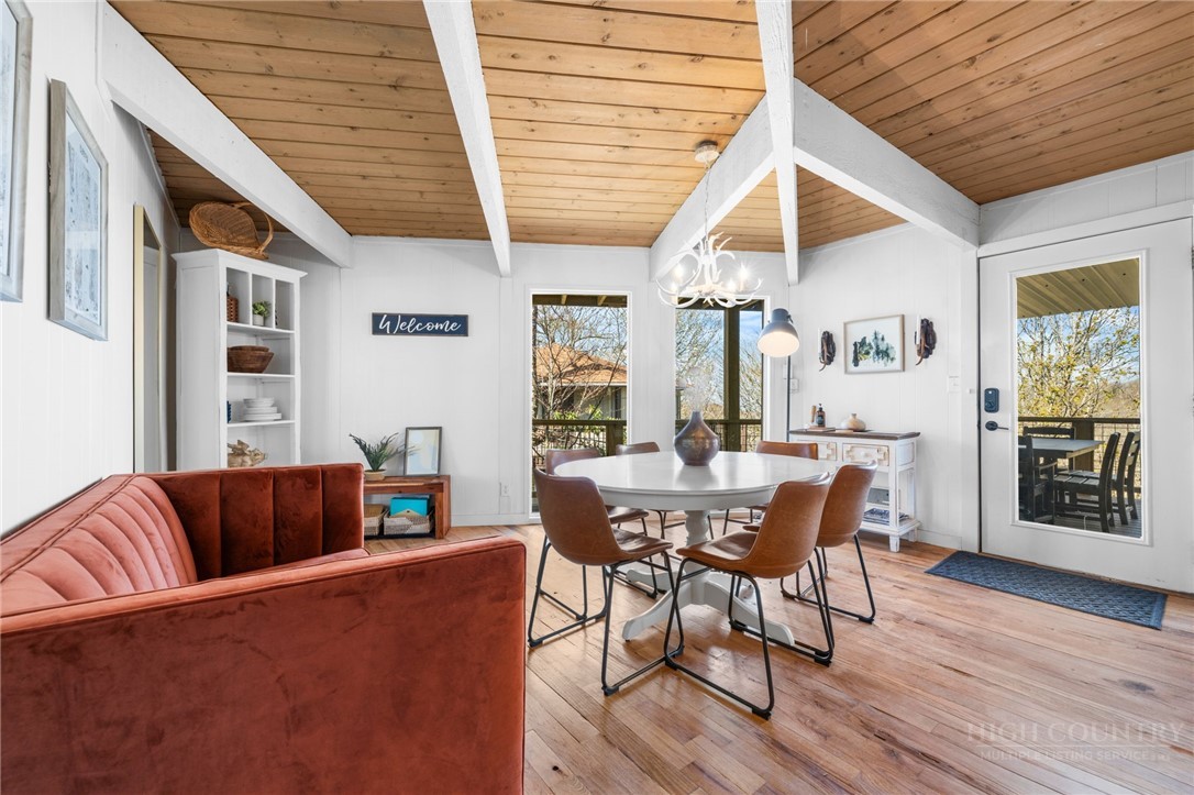 Welcome HOME to Birchwood Burrow a unique mountain home elevated at 4,600' with beautiful mountain views! RARELY does a home like this come on the market at such an excellent value! Birchwood Burrow is a 4 BEDROOM - 2 BATH retreat that offers the desirable modern finishes with rustic accents throughout making it one of the most attractive homes on Beech Mountain. Facing east, this home captures the first light of day and the refreshing morning air! Once inside, there are 2 beautifully finished levels, each with 2 bedrooms and 1 full bath, creating an ideal layout for hosting guests for privacy and separation. Both levels have an open layout, WOOD flooring, T&G ceilings and the chef-inspired kitchen features leathered granite countertops and a tile backsplash. The updated finishes throughout along with newer furnishings, elevate the spaces and make it truly turnkey. Outdoors, you will enjoy two levels of high end trex decking, a HOT TUB and FIRE PIT, which are perfect for relaxing after a day of adventure in the High Country! Additional amenities include a metal roof (2022) and off street parking. Centrally located near the heart of Beech Mountain, the home offers easy access to the Town and Beech Mountain Resort’s summer concerts, festivals and bike events. The home is being sold FULLY furnished, turnkey and is eligible for Beech Mountain Club Membership, granting access to member-only amenities, including FINE DINING, championship golf, an outdoor swimming pool, a fully equipped fitness center & pickleball/tennis courts. Birchwood Burrow rises above the competition and at a value rarely found on Beech Mountain. Believe me, if you have been looking for a vacation home that is move-in ready, this one should be on your list! Don't wait to make this one yours!