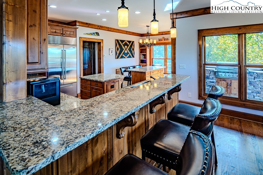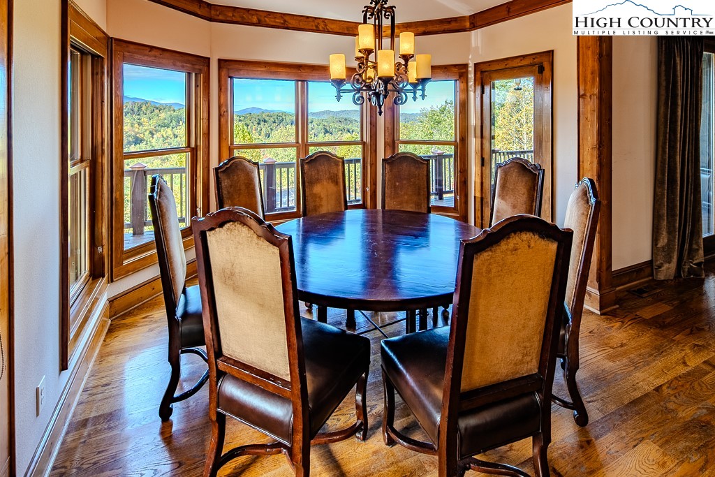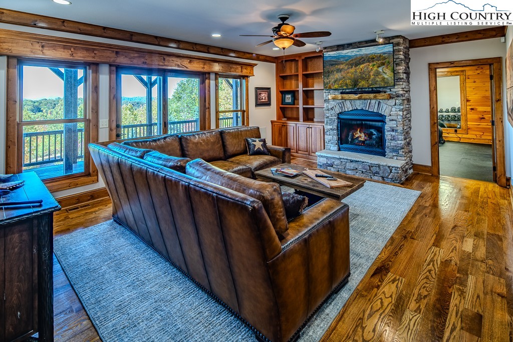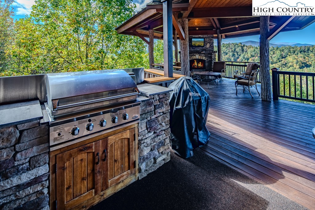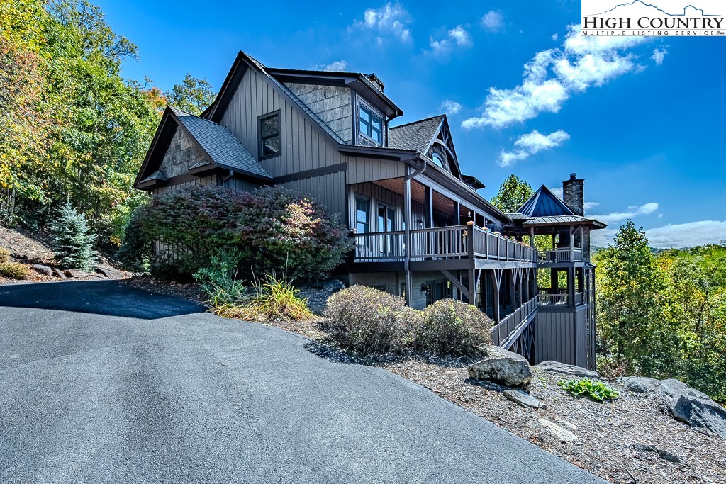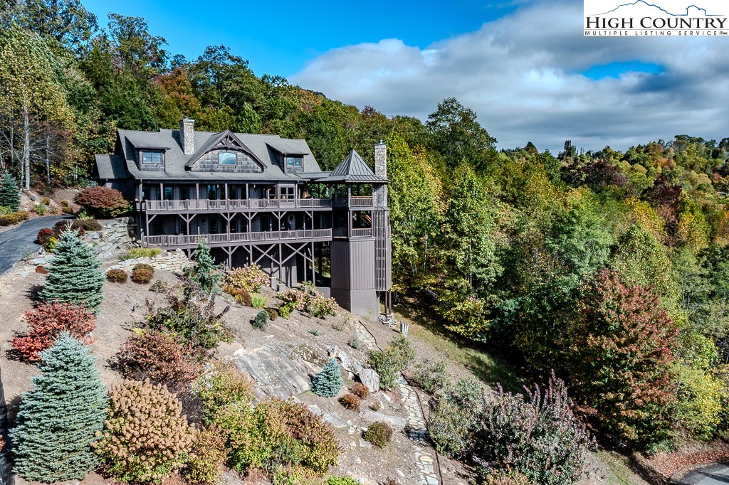 Beautiful Custom-built Home w/ Breathtaking Views located in Headwaters at Banner Elk, a Private Gated Community. The property features Four Master Bedrooms: One on the main level, Two on the second level, and One in the lower level. There is a Spacious Bonus Room over the garage that measures 21'6 x 38'5. Endless possibilities with this large space! Gourmet Kitchen w/ Gas Range, Granite Countertops, Custom Built Island w/ Built-In Shelving, Large Great Room with High Vaulted Ceilings on the Main level. The lower level includes a Den with a Custom-Built Wine Cellar w/ a floor made of Pennies, Wet Bar, and a Private Gym. 2 Gas Fireplaces inside the home and a Woodburning Fireplace on the Deck complete with a Summer Kitchen. In addition to the Oversized Two-car Garage, there is a separate UTV Garage at the base of the tower. A Hot Tub is situated on the lower deck. Architectural detailing and vaulted ceilings and is being sold furnished. There is also a Unique Opportunity with home purchase to buy a 1/8th share in 170-Acre Nature Preserve adjacent to Headwaters. Here you can ride your UTV or Hike. There are 8 owners of this amazing property, all live in Headwaters. Miles of trails from Mild to Wild, Shooting Range, Hiking, Picnics, etc. Falls Creek meanders through the property. It's your own little slice of paradise. For Medical Emergencies, a Helicopter can land in the Clubhouse Parking Lot. Amenities within the gates include a Mountaintop Clubhouse with a Fitness Center, Game Room, Theater Room, Gourmet Kitchen, Dining Area, Great Room with Fireplace, and Tennis/Pickleball Court. Additional features available to residents are a Lakeside Pavilion, Multiple Parks, a Dog Park, a Natural Waterfall, and more. The location provides access to downtown Banner Elk and regional activities such as Skiing, Hiking, Whitewater Rafting, Concerts, Golf, Fine Dining, Shopping, etc. Virtual tour and floor plans are available. This Home has been Preinspected and Radon Testing being done at Sellers Expense. All Carpets Professionally Cleaned Oct 2025. Main Level Great Room Furniture Steam Cleaned Oct 2025.