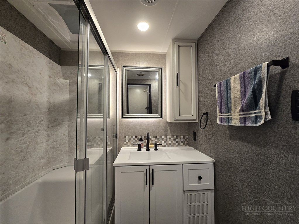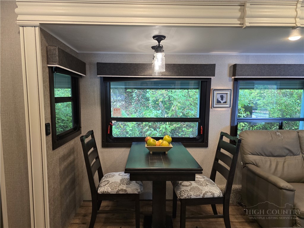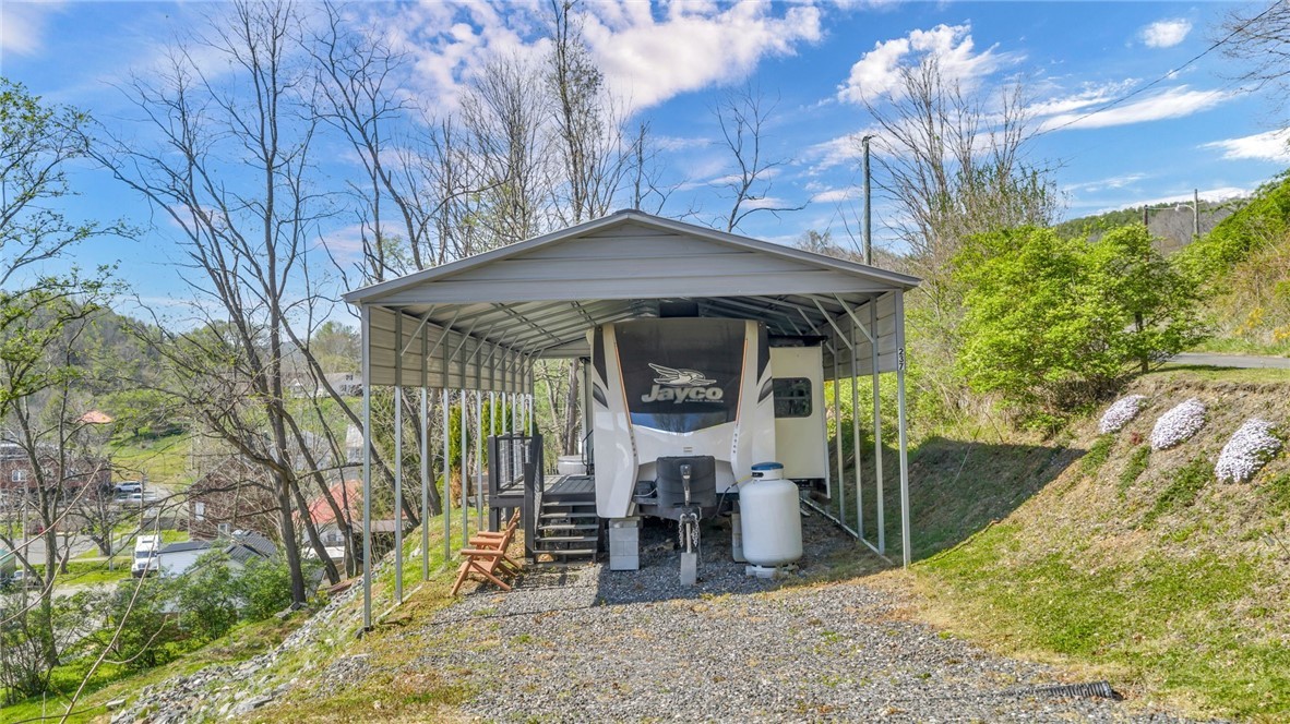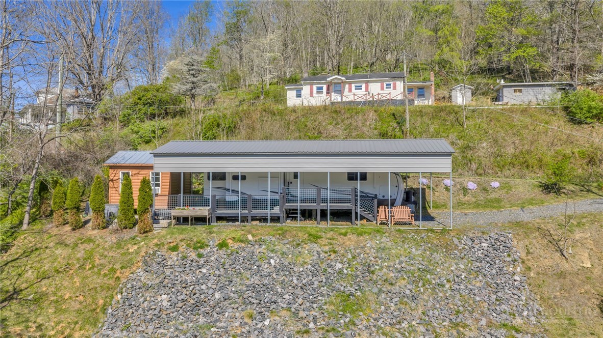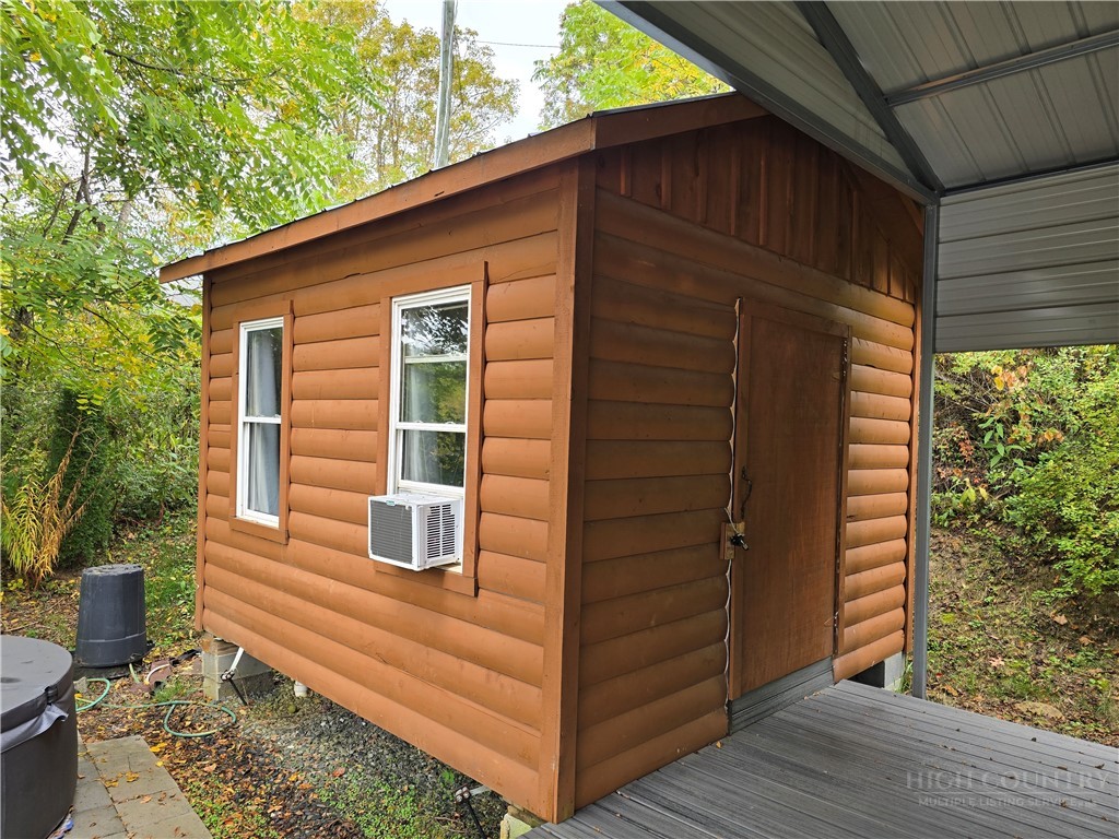 Rare opportunity to own a .32-acre lot overlooking downtown Lansing, NC with a 2021 Jayco Camper and versatile additional building. This property offers town water, sewer, and fiber optic service, making it both convenient and connected. The 2021 Jayco Camper sits under a carport, has Trex decking along the side, and is thoughtfully designed with modern features including touchscreen controls, propane range/oven, heat, water heater, along with electric fireplace, full-size refrigerator, kitchen island, corner sink, recliners, pantry space, and a large TV. The bedroom accommodates a king-size bed with ample storage, while the bathroom includes a stand-up shower and single vanity. An insulated 12x12 building provides added flexibility, currently used for laundry facilities, and also has a commode, sink, hot water heater, and had been used as office space, with the bonus of an outdoor shower. A window AC unit is used in the summer months in the insulated building and an infrared heater is used in the winter months. The hot tub offers the perfect place to relax while taking in the views and sounds of downtown Lansing below. Situated across from the Creeper Trail Park, residents can enjoy Big Horse Creek, picnic areas, walking paths, and more—all just steps away. There is gravel access to the lower portion of the lot off B Street where there used to be another storage shed. Whether for full-time living, a mountain getaway, or investment, this unique property offers a rare chance to own a slice of Lansing with incredible views of the town and park.