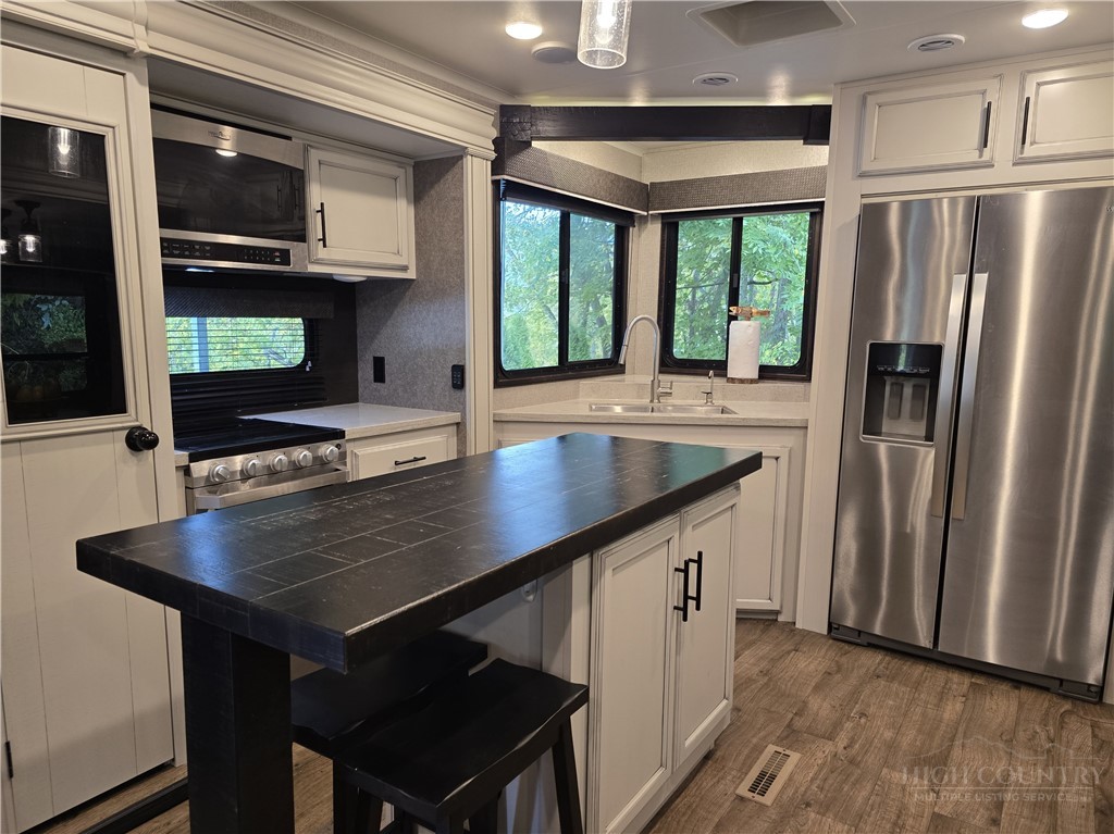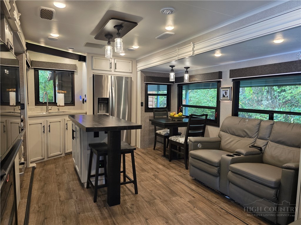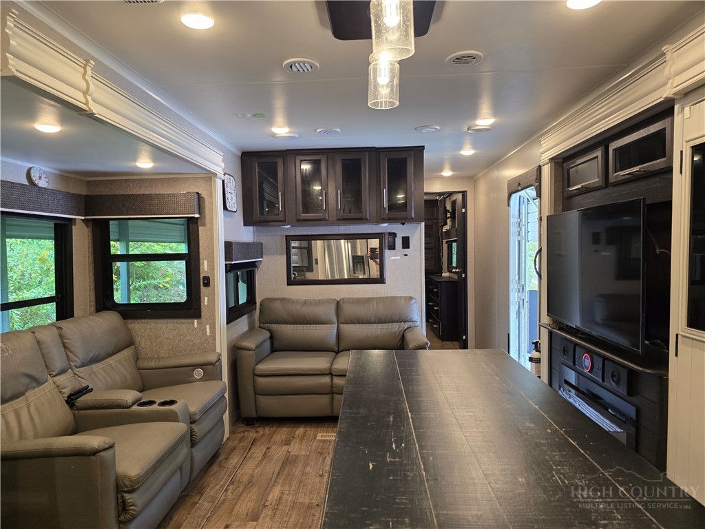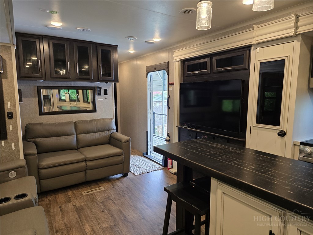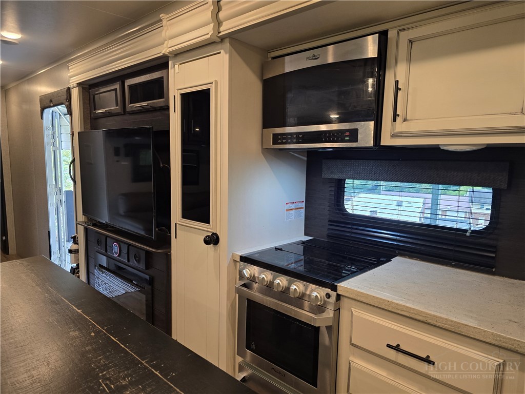 Rare opportunity to own a .32-acre lot overlooking downtown Lansing, NC with a 2021 Jayco Camper and versatile additional building. This property offers town water, sewer, and fiber optic service, making it both convenient and connected. The 2021 Jayco Camper sits under a carport, has Trex decking along the side, and is thoughtfully designed with modern features including touchscreen controls, propane range/oven, heat, water heater, along with electric fireplace, full-size refrigerator, kitchen island, corner sink, recliners, pantry space, and a large TV. The bedroom accommodates a king-size bed with ample storage, while the bathroom includes a stand-up shower and single vanity. An insulated 12x12 building provides added flexibility, currently used for laundry facilities, and also has a commode, sink, hot water heater, and had been used as office space, with the bonus of an outdoor shower. A window AC unit is used in the summer months in the insulated building and an infrared heater is used in the winter months. The hot tub offers the perfect place to relax while taking in the views and sounds of downtown Lansing below. Situated across from the Creeper Trail Park, residents can enjoy Big Horse Creek, picnic areas, walking paths, and more—all just steps away. There is gravel access to the lower portion of the lot off B Street where there used to be another storage shed. Whether for full-time living, a mountain getaway, or investment, this unique property offers a rare chance to own a slice of Lansing with incredible views of the town and park.