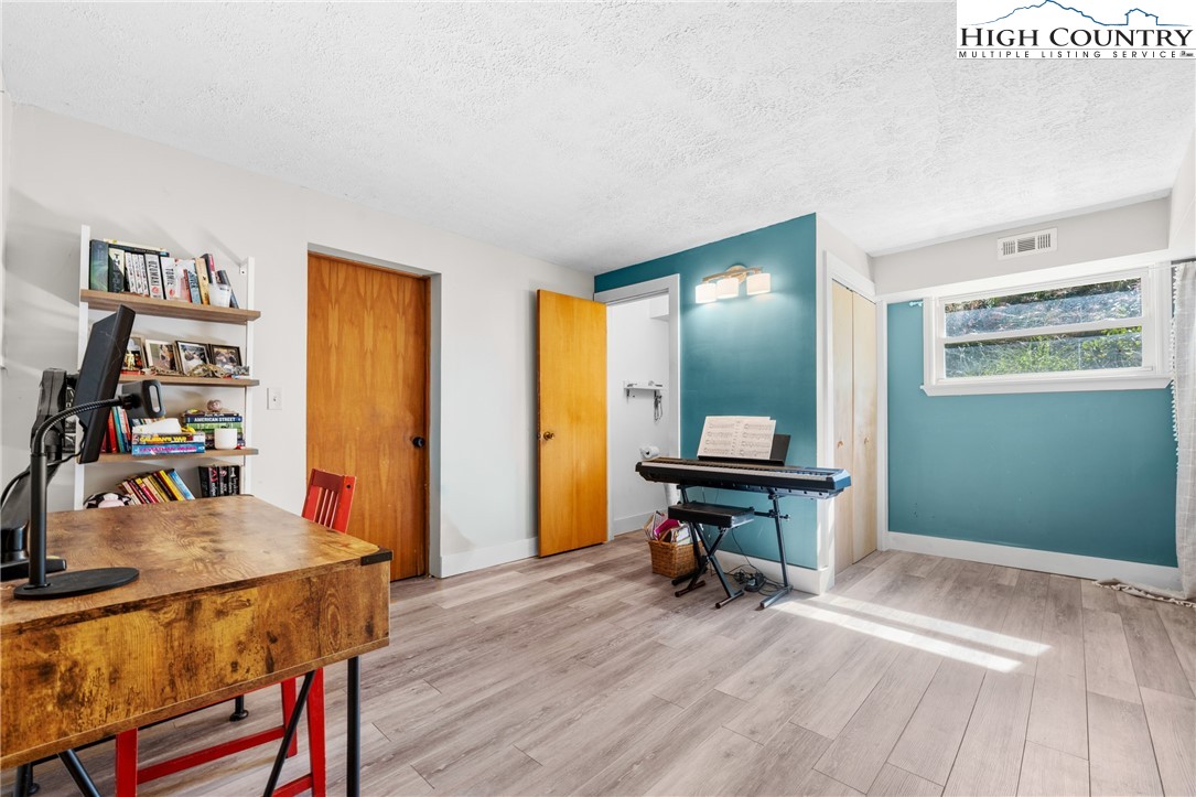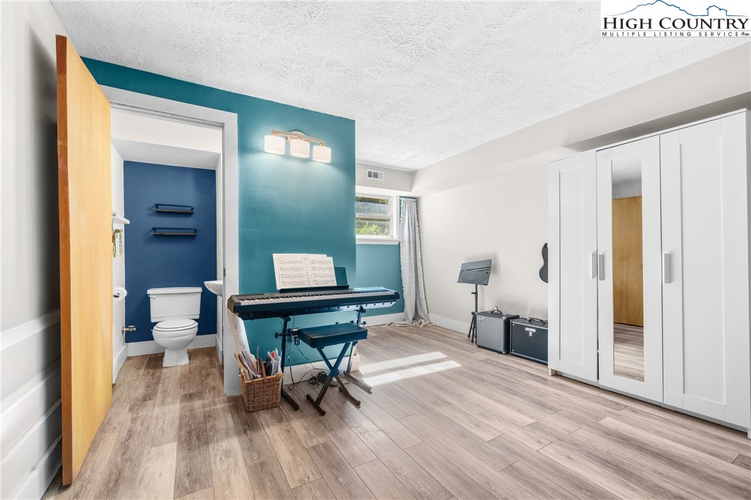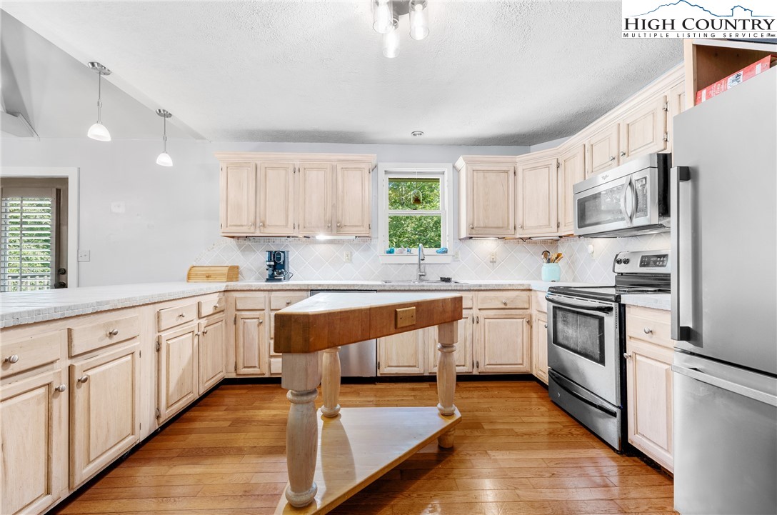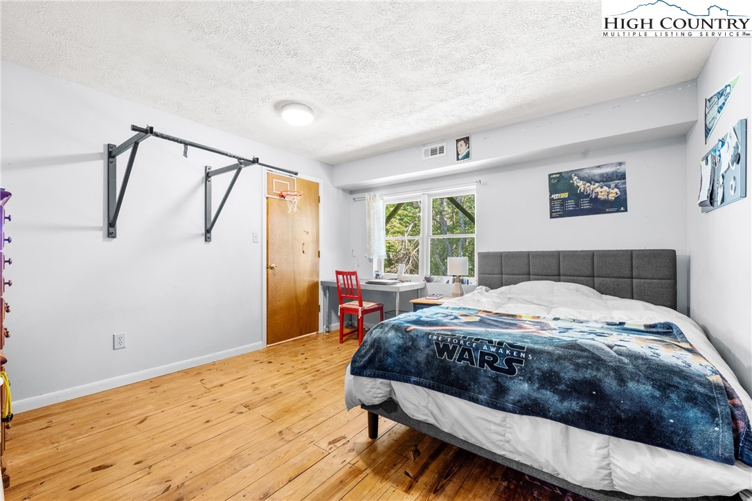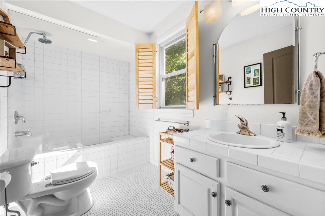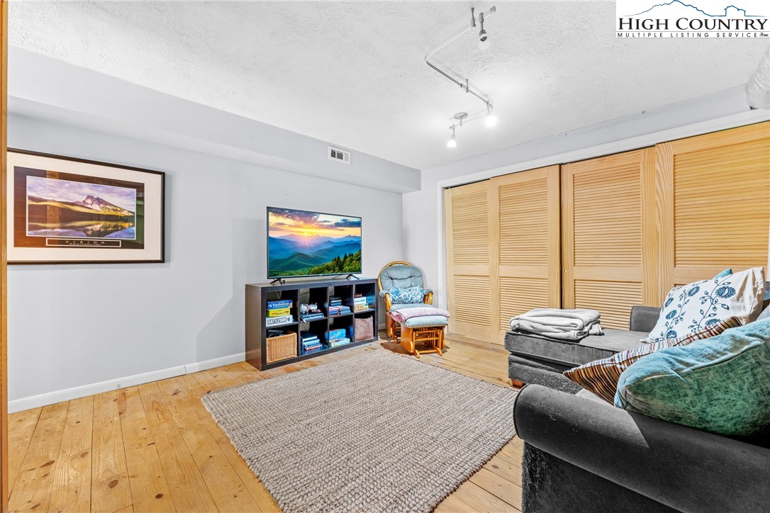 Nestled in one of Boone's most desirable neighborhoods, this cottage offers a perfect blend of comfort, style, and convenience. Just one mile from the Blue Ridge Parkway and six miles to the heart of Boone, this home is ideally situated for both serene mountain living and easy access to all that the area has to offer. The moment you step onto the large rocking chair covered porch, you'll feel the warmth and charm of this home. It's the perfect spot to enjoy your morning coffee or relax in the evening as you take in the peaceful surroundings. Enter into the spacious living room with vaulted ceilings, beautiful wood floors, and open beams. The focal point is a stunning floor-to-ceiling stone fireplace, adding a rustic yet refined touch to the space. Plantation-style blinds allow you to control the light while adding to the home’s timeless appeal. The great room seamlessly flows into the dining area and delightful kitchen, creating an open, airy atmosphere ideal for entertaining or casual living. A main-level bedroom, bath, and convenient laundry facilities complete the easy-living layout. The second floor is the primary bedroom, complete with an en-suite bath with a soaking tub, shower and walk-in closet providing an elevated private retreat perfect for relaxation. Downstairs you'll find a cozy den that offers additional living space, a half bath and two bonus rooms that could be used as additional sleeping quarters, a home office, playroom or a gym and direct access to the garage. The property is designed for ease of living with a well-maintained exterior featuring classic board-and-batten siding, stone accents, and a durable metal roof. With its convenient location and a great neighborhood, this home offers year-round comfort and convenience, making it an excellent choice for both full-time living or a seasonal escape.