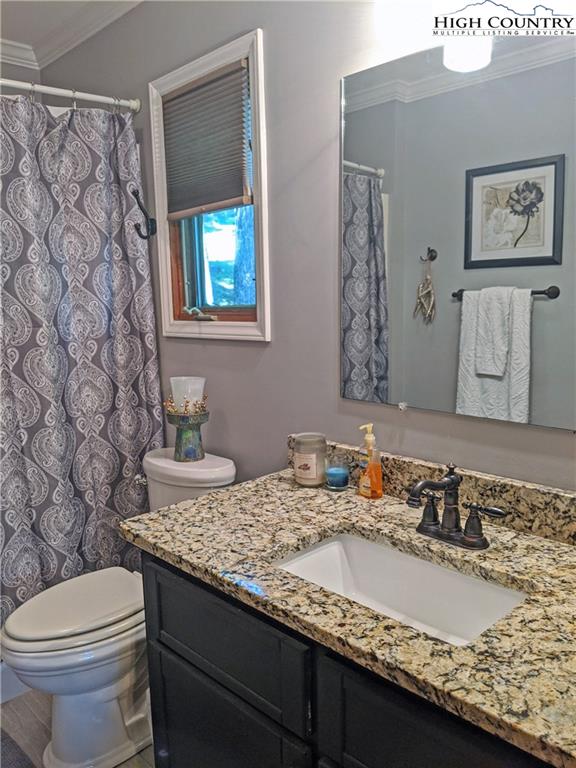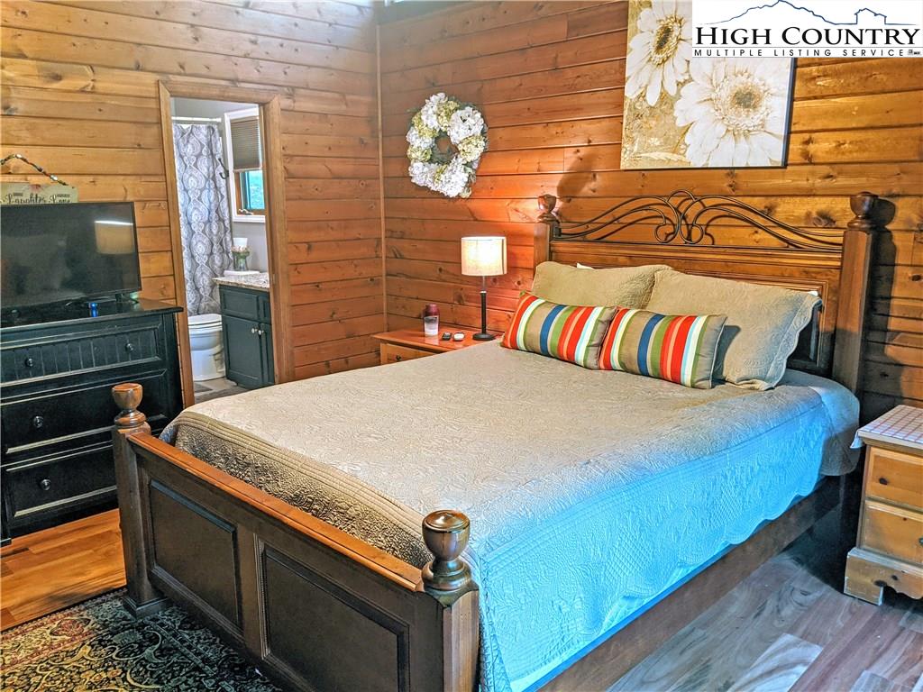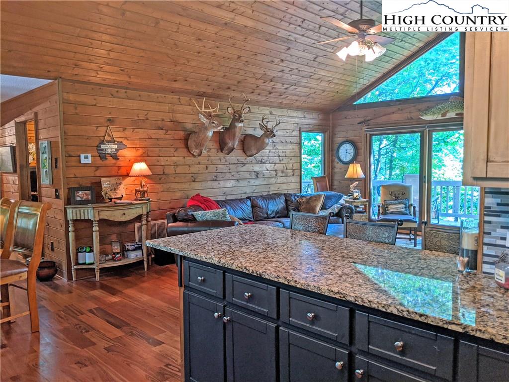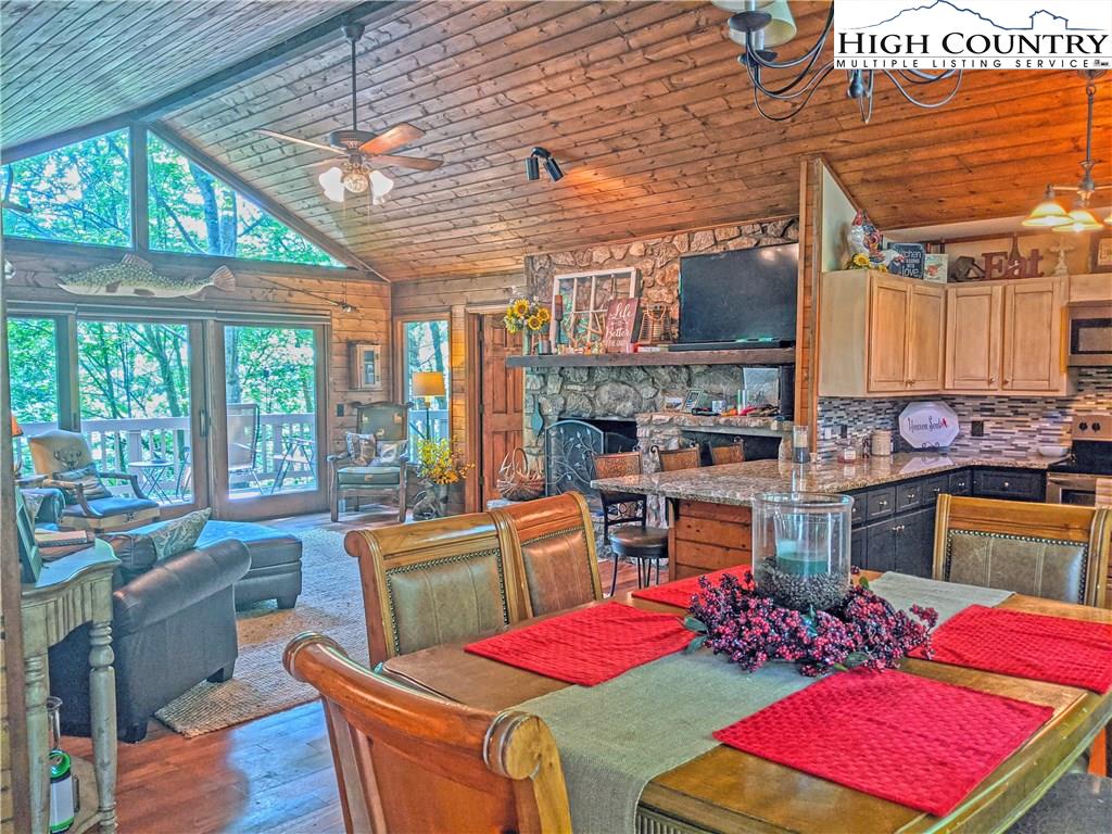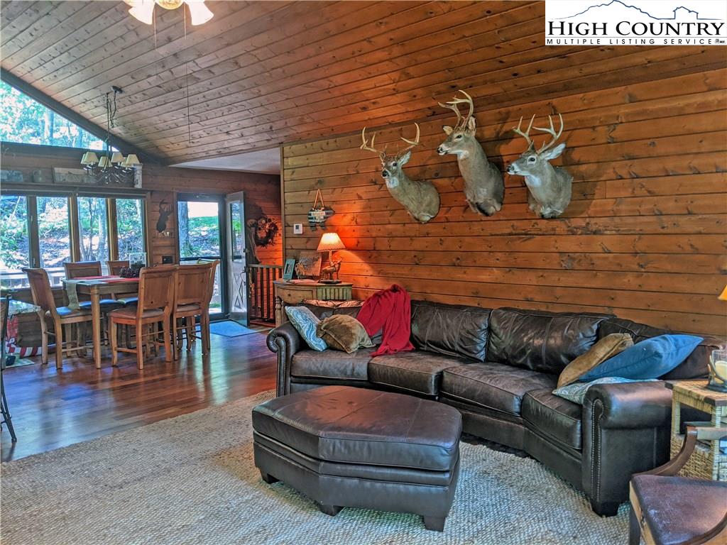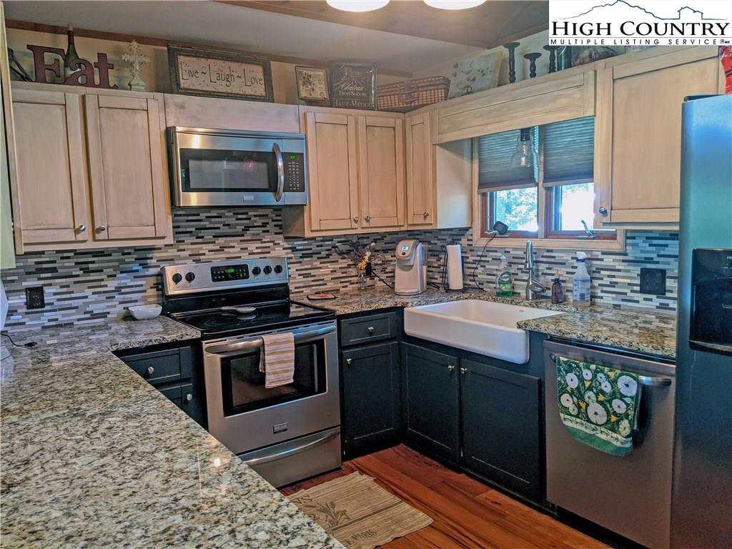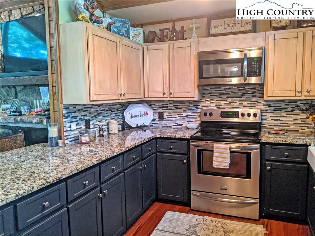 RARE 4 bedroom 3 bath house (new 4 bedroom septic permit in attachements) Fully furnished with few exceptions. Central heat and air, new exterior paint, new tigerwood hardwood floors on main level and LV on lower level. Entire basement has new drywall and trim. New kitchen cabinet doors, granite countertops, farmhouse sink, stainless appliances new tile in bathrooms, new vanities, new everything. Short term rentals permitted AND property sits on 2.39 acres. POA dues are 1658.58 per year and cover trash pick up, community road and misc maintenance, community pool, three ponds, miles of hiking trails, campground. playground, chapel, and gated access to name a few. Property has been completely redone top to bottom. House has long range views, that, with a little tree cutting would be even better. Radon system in place. Very private location. Wood Burning Fireplace completes the perfect atmosphere for having your ideal mountain escape. 9 miles to Boone and Appalachian state university. Minutes to Blue Ridge Parkway. Located in Powder Horn Mountain - next to Elk Creek which is a state stocked trout stream. You can hear the river from the back deck of this home! ENJOY! All electric.
