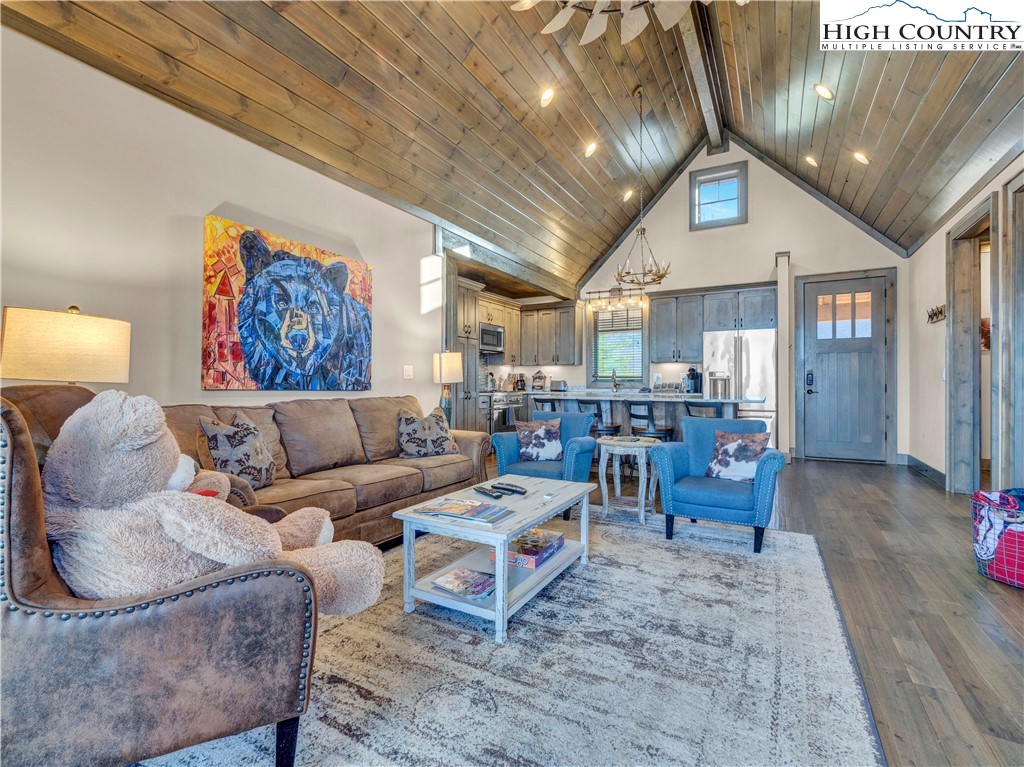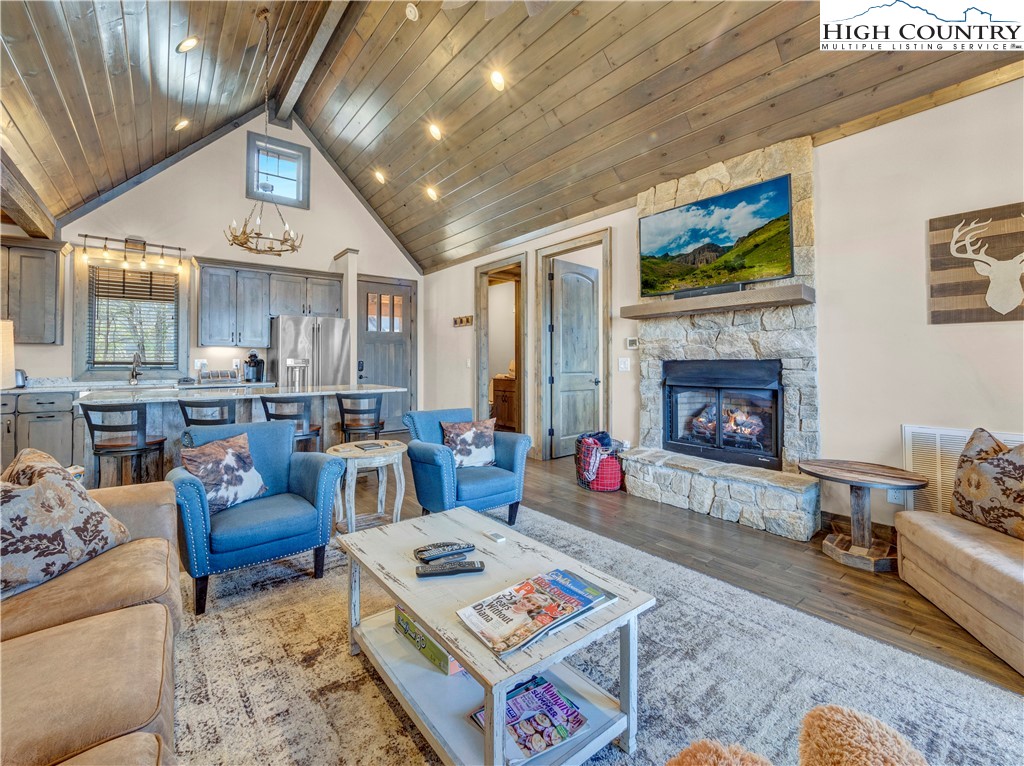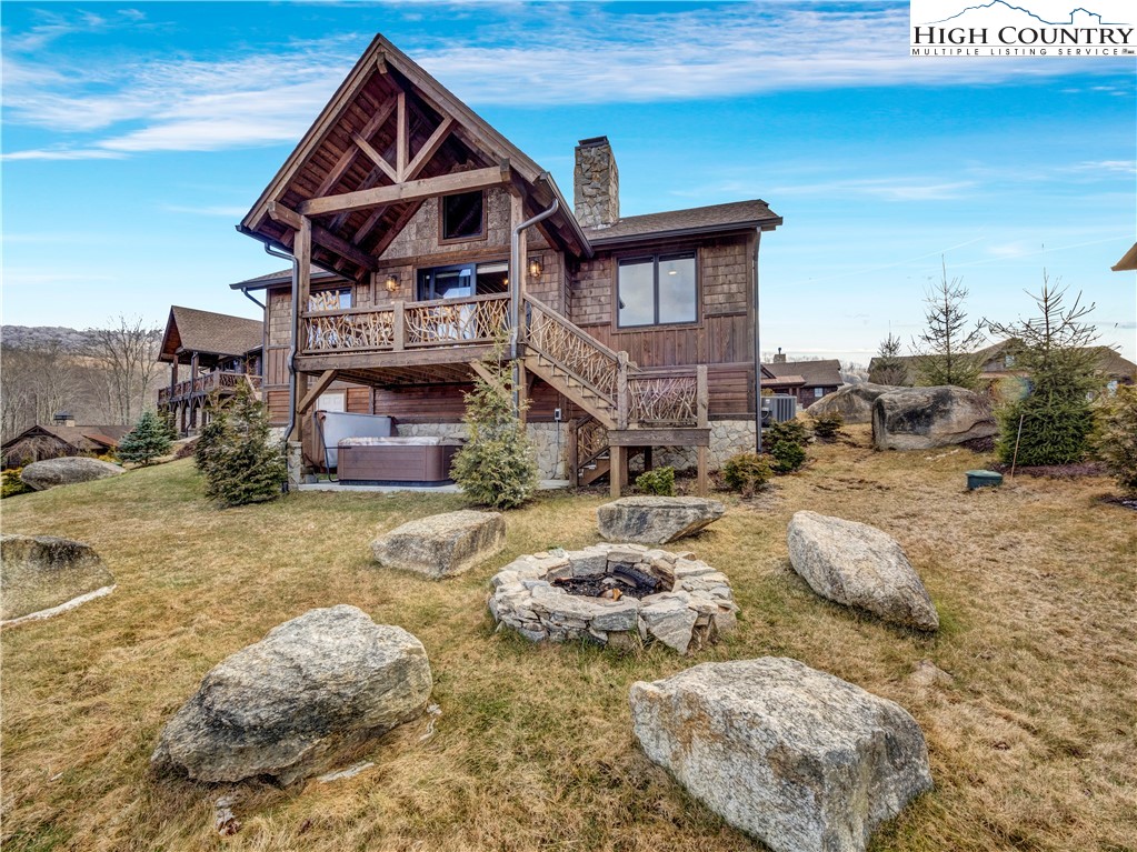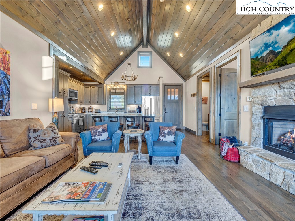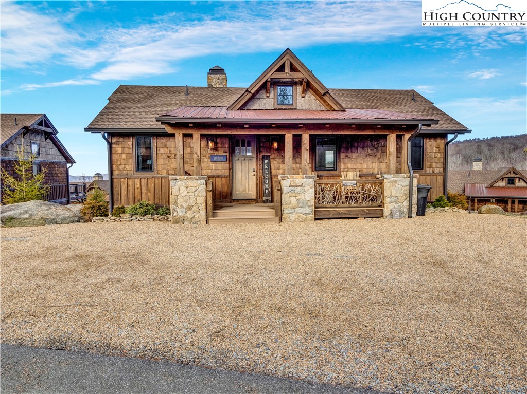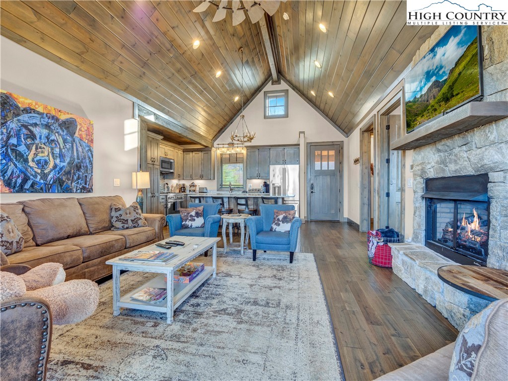 Welcome to Roper Retreat, a fully furnished, custom-built mountain cottage by Wheels Contracting, offering a proven rental history and breathtaking long-range mountain views. Perfectly situated within Camp Eagles Nest, a maintenance-free section of the Lodges at Eagles Nest, this home offers the ideal blend of rustic charm and modern luxury in one of the High Country’s most sought-after communities. The exterior of this stunning retreat exudes classic mountain elegance, featuring a striking combination of natural stone, wood siding, and expansive windows that perfectly frame the awe-inspiring mountain views. Step inside to discover a meticulously designed interior where modern comfort meets cozy mountain aesthetics. The open-concept living area is bathed in natural light, thanks to vaulted ceilings and oversized sliding glass doors, creating a warm and inviting atmosphere. Gather around the stone fireplace, perfect for cool mountain evenings, or step out onto the deck to take in the views. The kitchen is a chef’s dream, boasting stainless steel appliances, custom cabinetry, and generous counter space, making it ideal for entertaining. This retreat features two primary suites, each designed for ultimate comfort and privacy. Both suites offer ensuite bathrooms and expansive windows that showcase the surrounding mountain beauty. After a day of adventure, unwind in the private hot tub, where you can soak under the stars while enjoying the crisp mountain air. Located a short walk from tennis and pickleball courts, basketball courts, playgrounds, and more, this home is designed for relaxation and recreation. Whether you’re looking for a private mountain getaway, an investment property, or a full-time residence, Roper Retreat offers it all. With close proximity to downtown Banner Elk, skiing, fine dining, and endless outdoor adventures, this is an incredible opportunity to own a piece of High Country paradise. Don’t miss your chance—schedule a showing today!