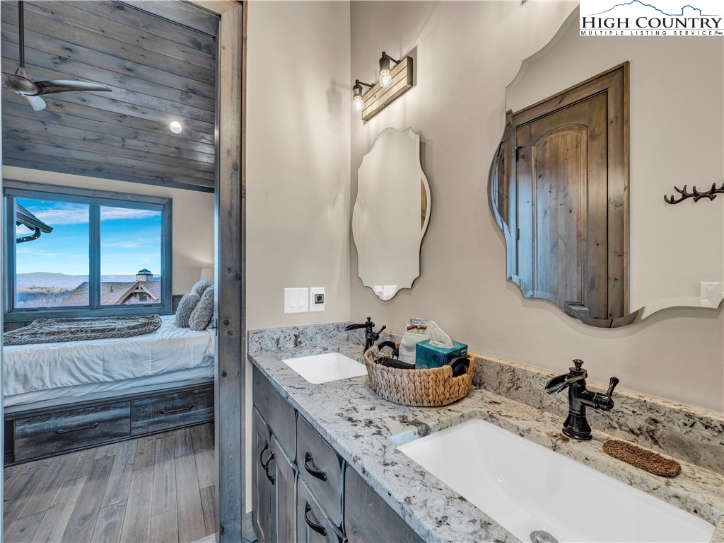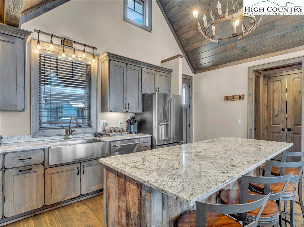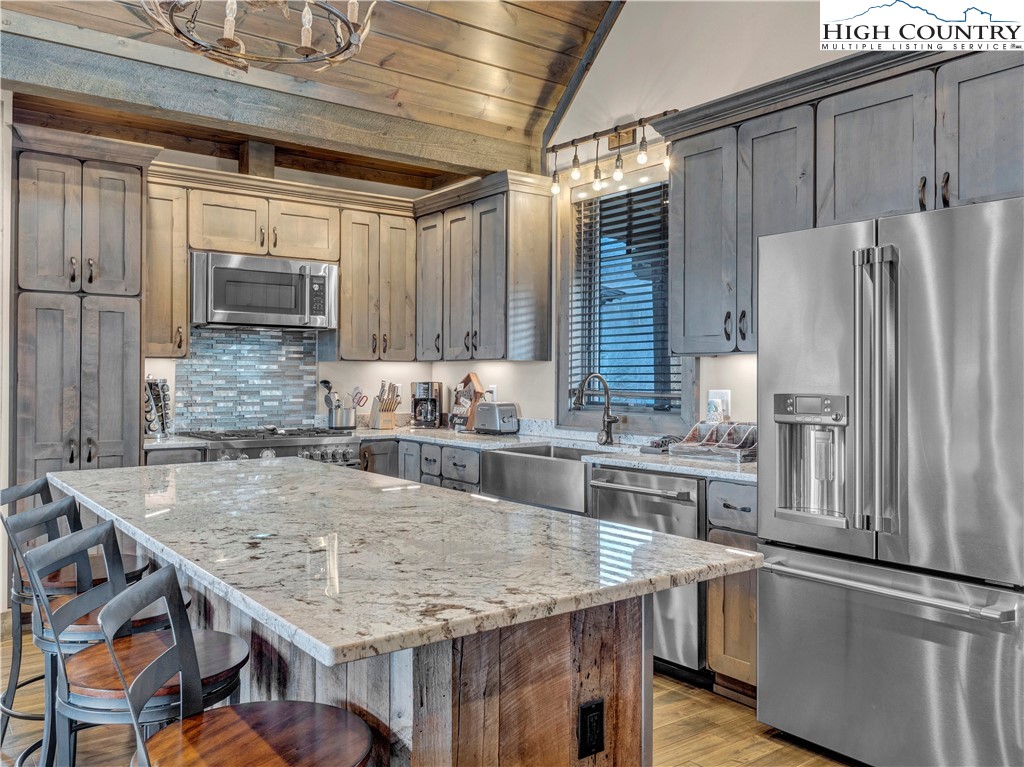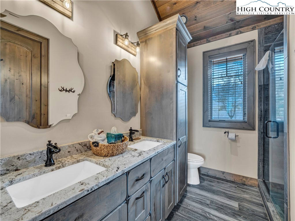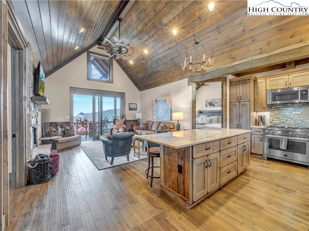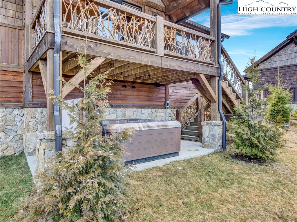 Welcome to Roper Retreat, a fully furnished, custom-built mountain cottage by Wheels Contracting, offering a proven rental history and breathtaking long-range mountain views. Perfectly situated within Camp Eagles Nest, a maintenance-free section of the Lodges at Eagles Nest, this home offers the ideal blend of rustic charm and modern luxury in one of the High Country’s most sought-after communities. The exterior of this stunning retreat exudes classic mountain elegance, featuring a striking combination of natural stone, wood siding, and expansive windows that perfectly frame the awe-inspiring mountain views. Step inside to discover a meticulously designed interior where modern comfort meets cozy mountain aesthetics. The open-concept living area is bathed in natural light, thanks to vaulted ceilings and oversized sliding glass doors, creating a warm and inviting atmosphere. Gather around the stone fireplace, perfect for cool mountain evenings, or step out onto the deck to take in the views. The kitchen is a chef’s dream, boasting stainless steel appliances, custom cabinetry, and generous counter space, making it ideal for entertaining. This retreat features two primary suites, each designed for ultimate comfort and privacy. Both suites offer ensuite bathrooms and expansive windows that showcase the surrounding mountain beauty. After a day of adventure, unwind in the private hot tub, where you can soak under the stars while enjoying the crisp mountain air. Located a short walk from tennis and pickleball courts, basketball courts, playgrounds, and more, this home is designed for relaxation and recreation. Whether you’re looking for a private mountain getaway, an investment property, or a full-time residence, Roper Retreat offers it all. With close proximity to downtown Banner Elk, skiing, fine dining, and endless outdoor adventures, this is an incredible opportunity to own a piece of High Country paradise. Don’t miss your chance—schedule a showing today!