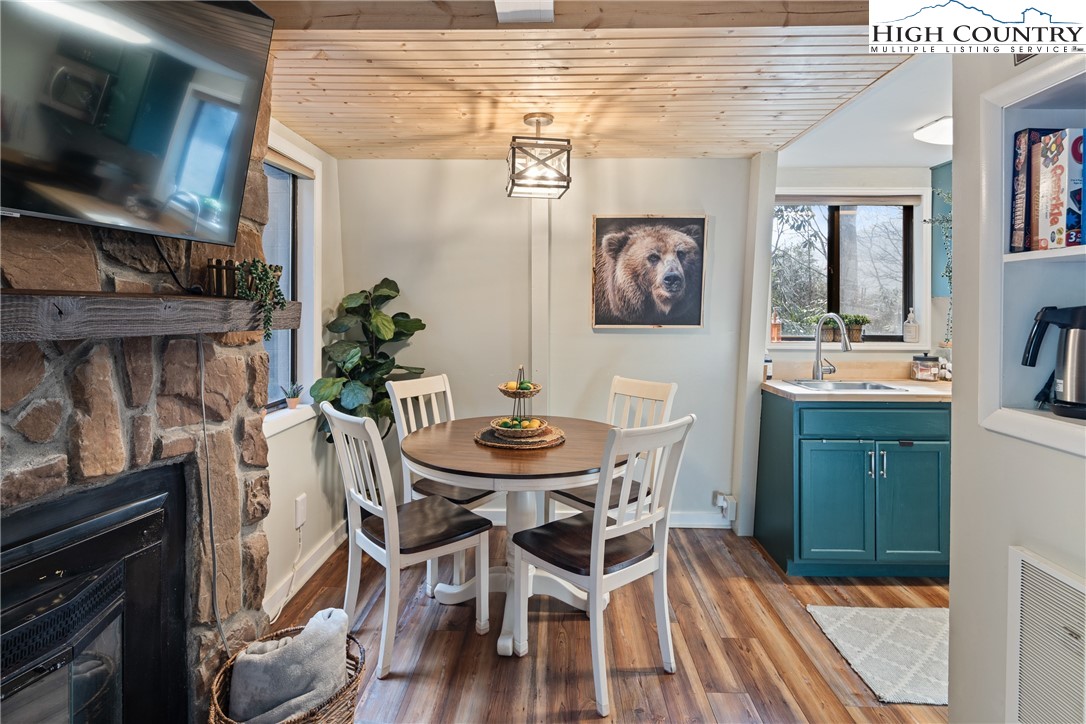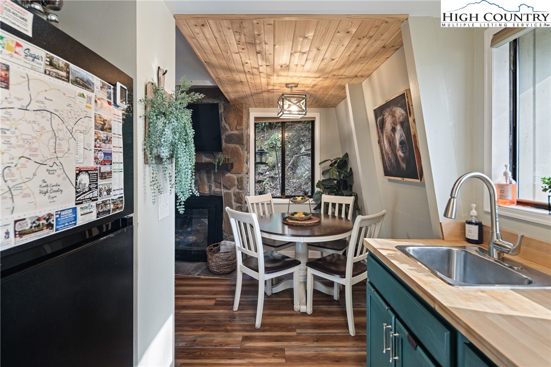 Cozy, cute and charming!!! This light filled home has that rustic mountain vibe you're looking for and is located close to the ski slopes at Sugar Mountain. The open concept interior has been updated and well maintained and features wood ceilings with beams, a stone fireplace with gas logs and butcher block countertops. Private wood deck and ample parking. Fully and tastefully furnished with just a few exclusions-this home is truly turnkey. This condo is perfect for a personal mountain getaway, an affordable income producing vacation rental, a long term rental for students or employees at Lees-McRae or your own full time residence. Beat the heat in the summer, enjoy the brilliant fall colors, ski fresh powder in the winter, take advantage of year round hiking and biking trails and enjoy local shopping and restaurants. Banner Elk and Sugar Mountain have it all!!!