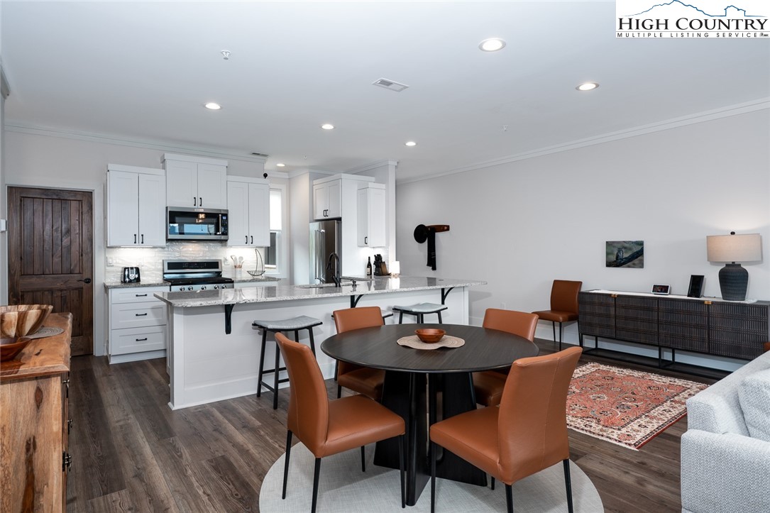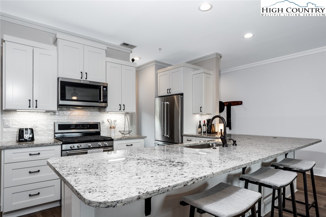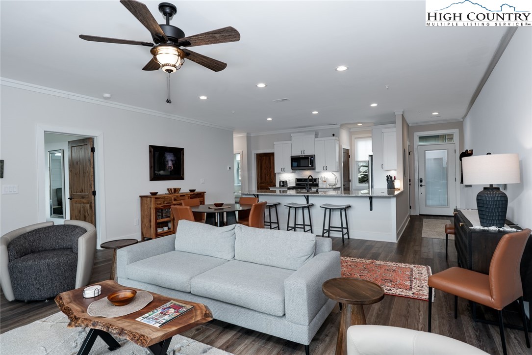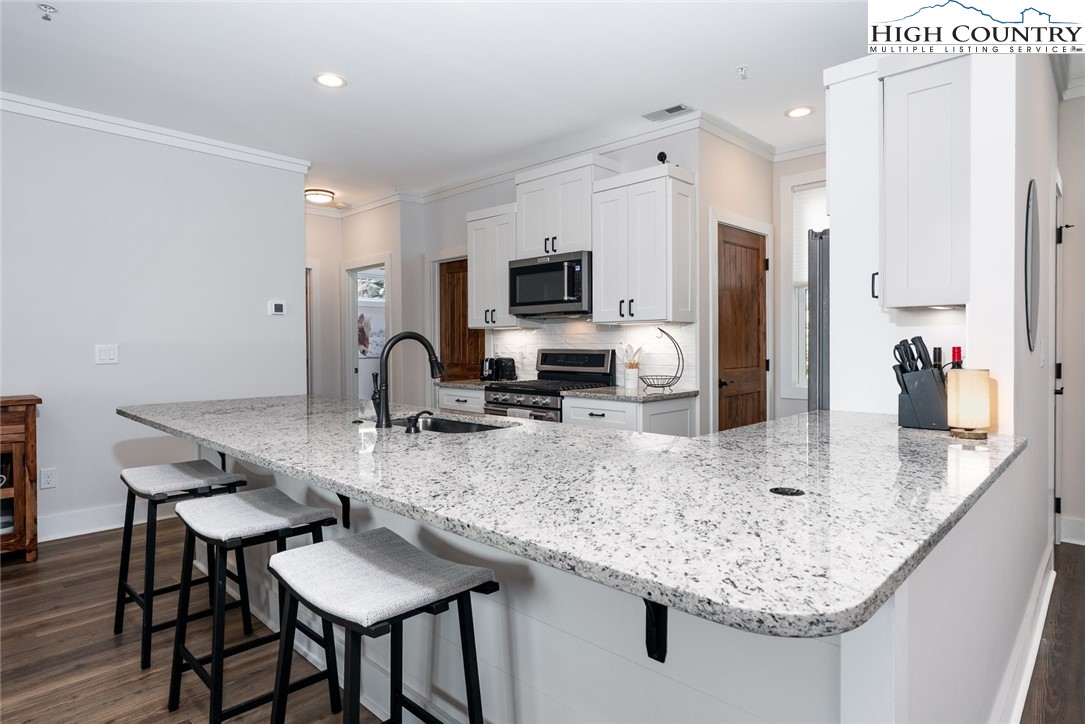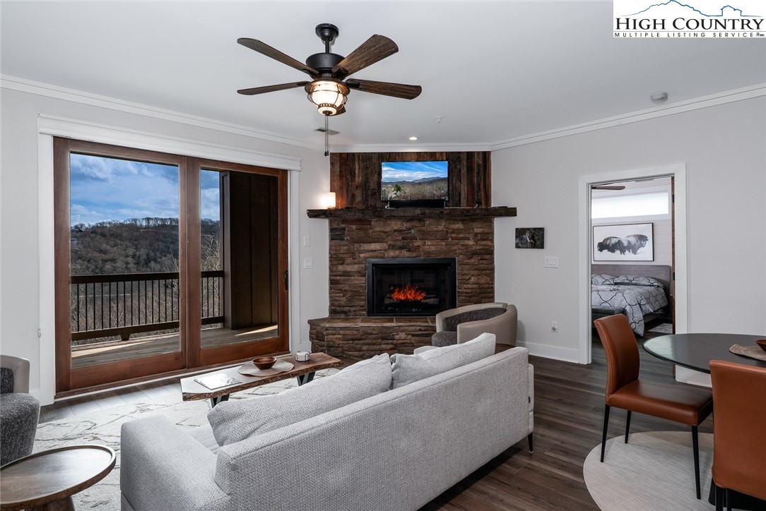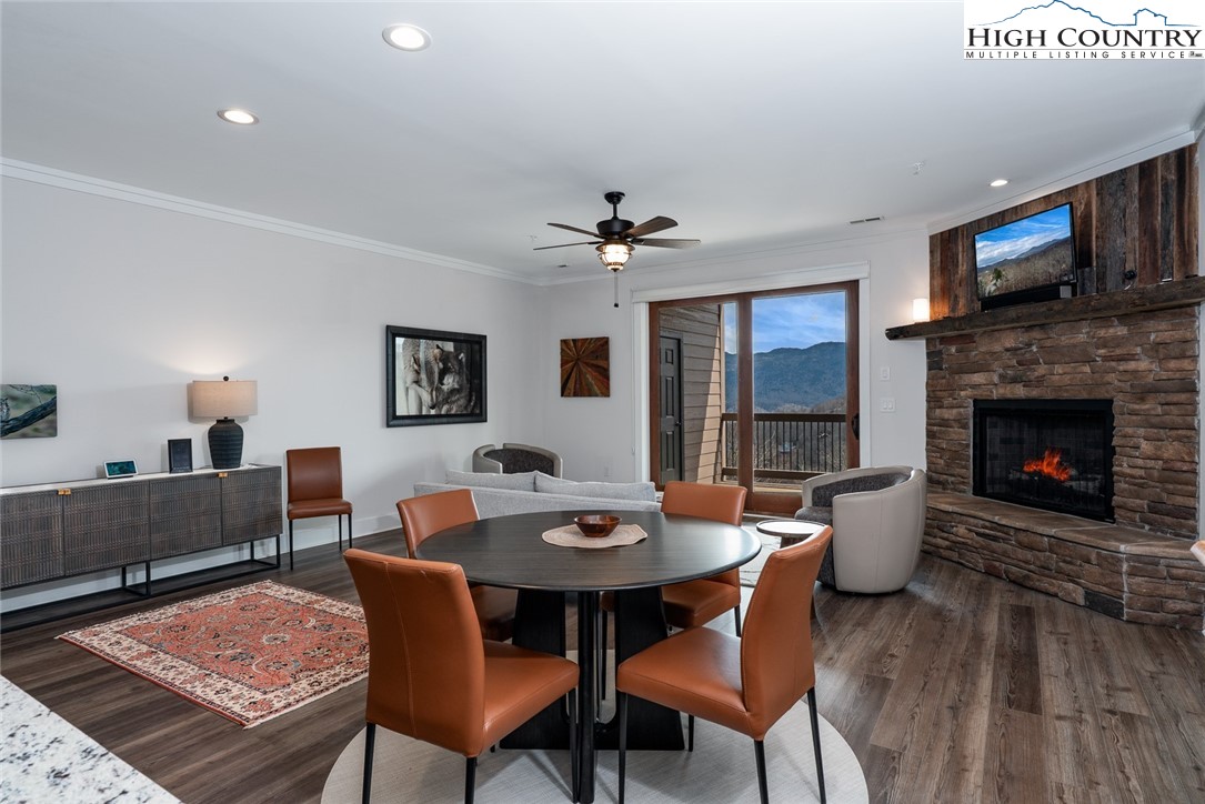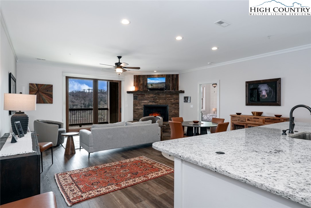 Introducing a luxury mountain retreat at The Reserve at Sugar Mountain in the newest and gated section of the community, Reserve III. Experience elevated mountain living in this beautifully appointed 2-bedroom condo, ready for immediate occupancy. Perched high on Sugar Mountain, this contemporary residence offers breathtaking views of Grandfather Mountain, southern exposure, and a bright, elegant living space. The expansive kitchen is a chef's dream, featuring granite countertops, stainless steel appliances, and a spacious pantry closet. It seamlessly flows into the dining and living areas, where you can enjoy a cozy fire while taking in the stunning mountain vistas. This pristine, contemporary unit also includes a full-size washer and dryer in a dedicated laundry room for added convenience. The primary suite is a tranquil retreat, with upgraded ceiling details, shiplap wall accents, and a spa-inspired bath with dual sinks and an upscale, tiled shower. Step outside to the covered rear deck and enjoy your morning coffee or evening drink while soaking in the spectacular views. Unique to only a few buildings, the reinforced decking and wiring for a jacuzzi spa provide an opportunity for the owner to have a personal spa on the deck. The wrapped columns on the deck provide a polished look found in just a few Reserve buildings. Located just minutes from year-round recreation—including skiing, golf, hiking, dining, and shopping—this condo is ideal as a mountain getaway, full-time residence, or rental investment. Additionally, the lower units feature exterior closets near the entry door and on the covered deck, offering ample storage space. Don’t miss the chance to own your dream retreat at Sugar Mountain, in the gated section of The Reserve!