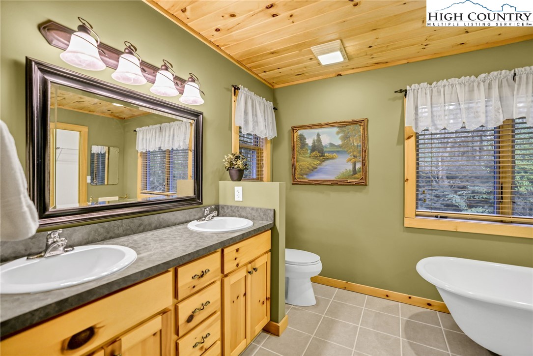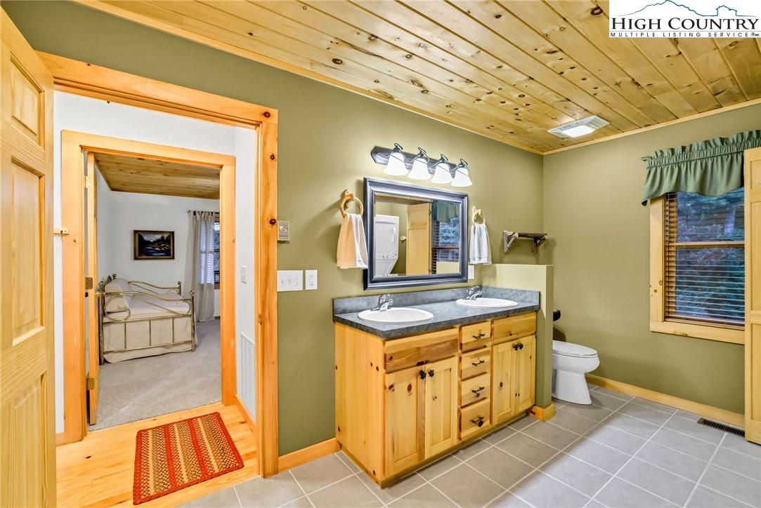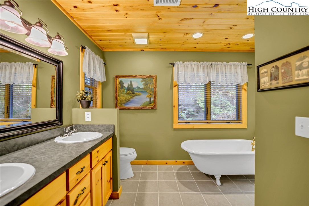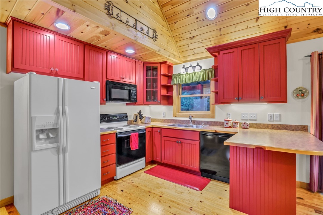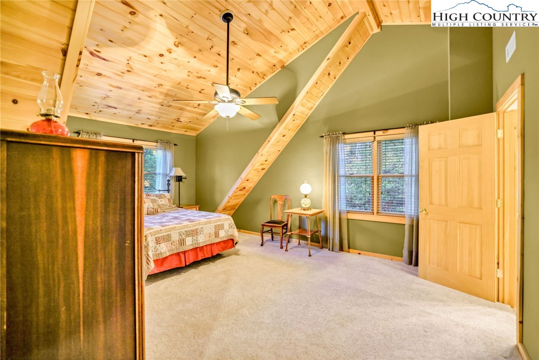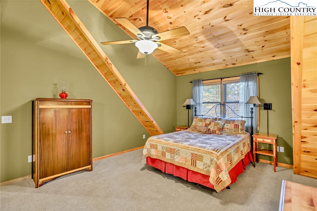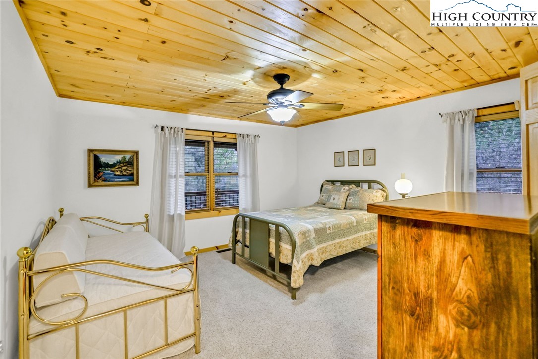 Beautifully Maintained Mountain Home Bordering the Blue Ridge Parkway. Located just steps from the Mountains-to-Sea Trail, this move-in ready home is a dream for hiking enthusiasts and nature lovers alike. Offered fully furnished, the home features a charming wood siding exterior with stone accents, recently painted exterior including porches (both front and back), and porch ceilings for a fresh, well-kept look. Beautiful landscaping with blueberry bushes, rhododendrons, lilacs, and more. Recent improvements include , New HVAC system installed in late 2024, New roof with metal drip edge added in late 2021. Once inside enjoy the spacious great room with cathedral ceilings, hardwood floors, tongue & groove ceilings, and a stunning stone fireplace. Open kitchen and dining area with access to a peaceful back porch overlooking a small pond with fountain. Bedroom and full bath on the main floor, which could be used as primary bedroom. Main level laundry closet with new washer and dryer (purchased June 2025) Upper level large bedroom suite with ensuite bath, soaking tub, and walk-in closet. Basement offers a head start on future living space with framing, insulation, electrical, and rough-in plumbing already place. Potential for a third bedroom, third bath, and second living space and includes a 1 car- garage. Additional structure includes detached 1-car garage (added in 2014) with covered area and full attic storage – perfect for vehicles, ATVs, equipment or workshop. Don’t miss the opportunity to own this exceptional mountain retreat with direct access to the Blue Ridge Parkway. Schedule your showing today!