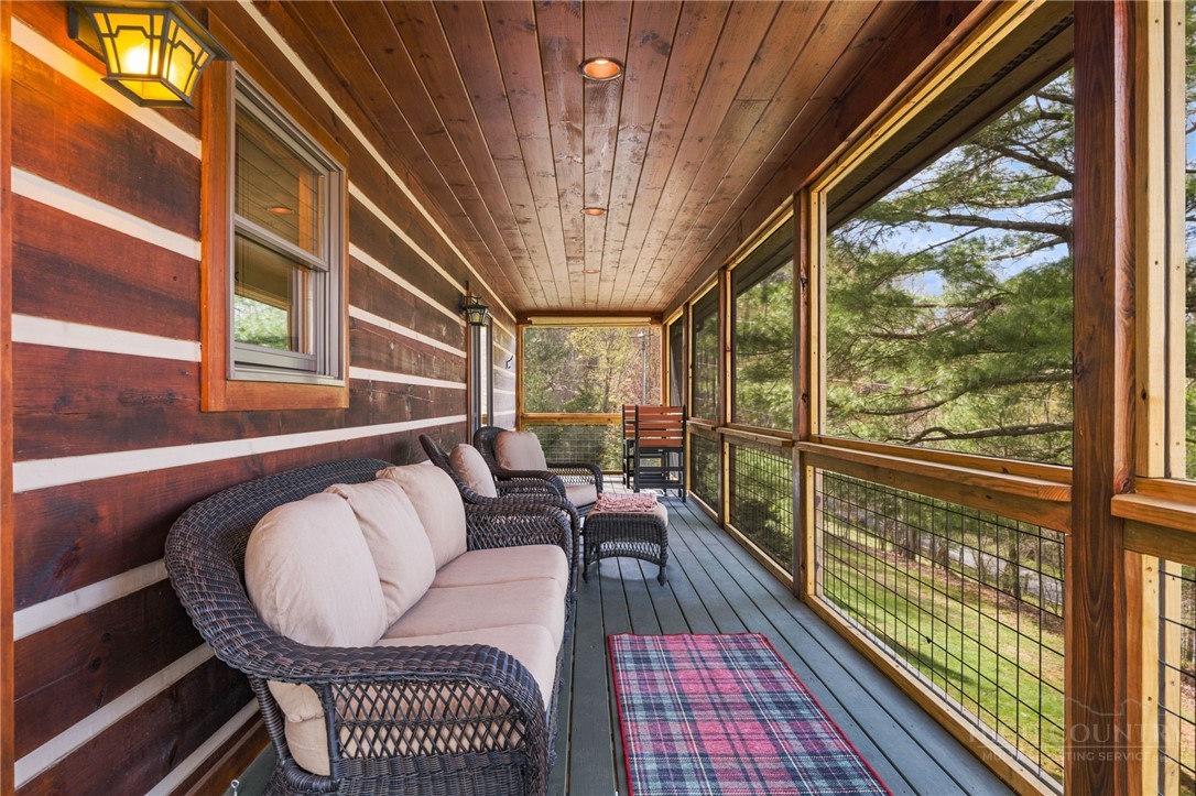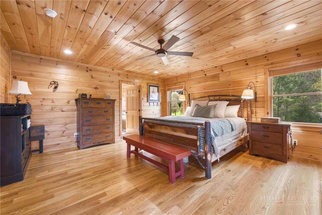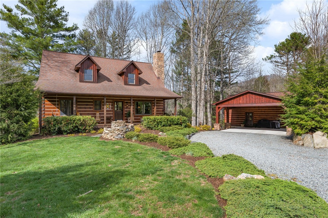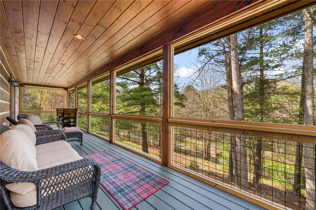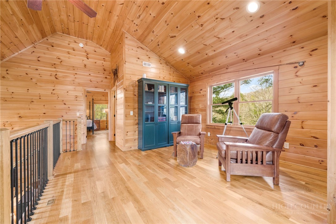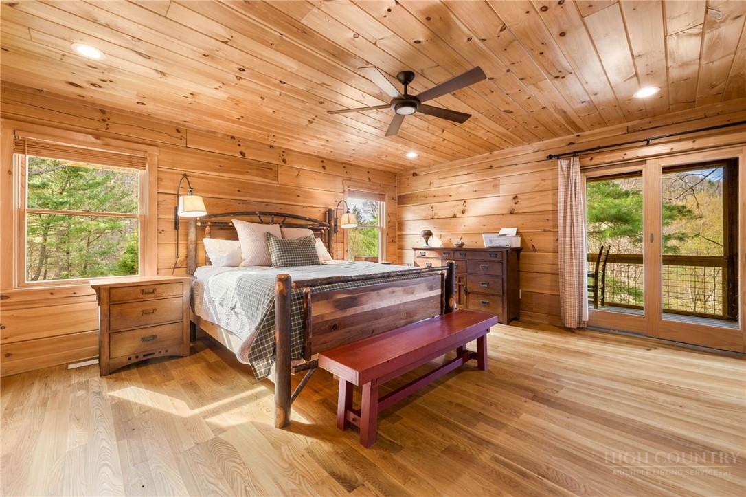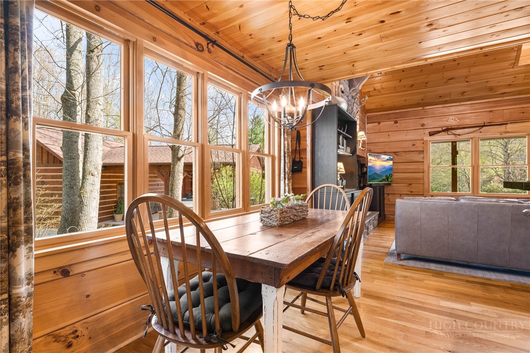 Luxury meets mountain living in this exceptionally well-maintained log cabin, privately situated on a 1-acre cul-de-sac lot in the desirable Riverwood subdivision close to the Watauga River and close proximity to historic Valle Crucis! This property is rare with usable land, gentle slopes, grassy areas and cool mountain breezes. The open-concept great room has a striking floor-to-ceiling stone wood-burning fireplace, complemented by hickory wood flooring throughout and a well-appointed kitchen featuring a cooktop island, custom cabinetry, granite countertops, and new stainless steel appliances—designed for both effortless entertaining and everyday comfort.The main-level primary suite offers a true retreat with a whirlpool tub, ceramic tile shower with glass door, and double vanity. Upstairs, an open loft, second bedroom, and full bath provide ideal space for guests, while the lower level expands the home’s versatility with a spacious media/bonus room, full bath, and additional sleeping area, plus walk-out access to a deck and level backyard.Covered front and back decks invite year-round enjoyment of the peaceful mountain setting, offering both privacy and a sense of escape just minutes from area amenities. A standout feature is the detached heated garage with over 1,000 square feet, added by the current owners—ideal for a workshop, recreation, or inviting outdoor entertaining space. Additional updates include a new HVAC furnace system (2024) and new kitchen appliances. The newly screened back deck is a showpiece, offering panoramic valley views and a breezy shady retreat- great for mountain coffee as fog lifts from the valley below. Properties of this caliber—combining privacy, thoughtful upgrades, and timeless mountain appeal—are increasingly rare in today’s market. A rare opportunity to own a mountain retreat where comfort, craftsmanship, and setting come together—this is the kind of place you’ll never want to leave. List of improvements can be provided. * No short term rentals less than 30 days*