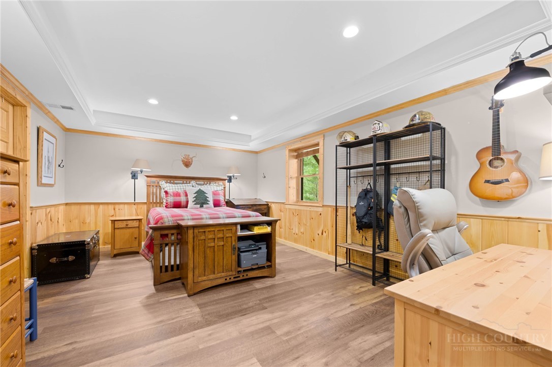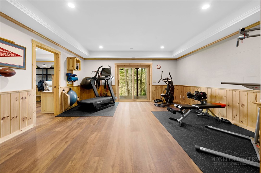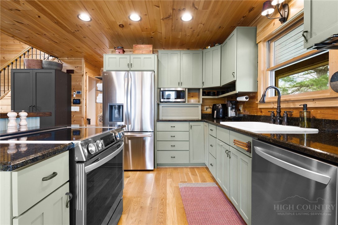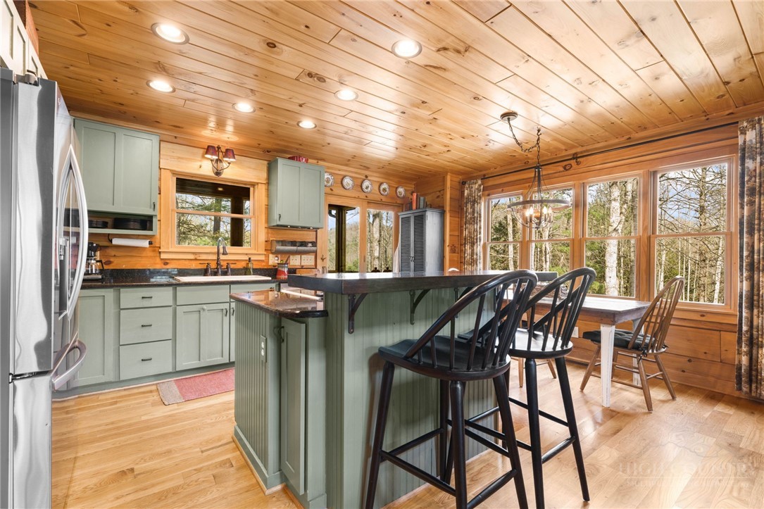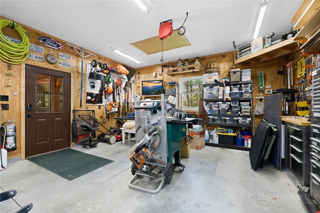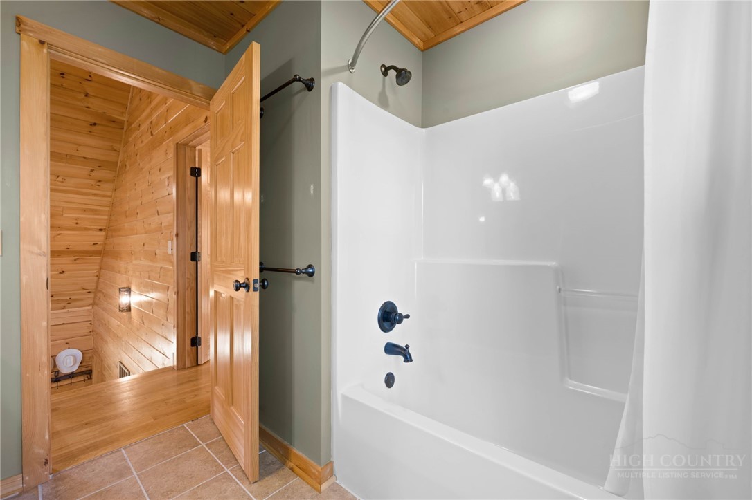 Luxury meets mountain living in this exceptionally well-maintained log cabin, privately situated on a 1-acre cul-de-sac lot in the desirable Riverwood subdivision close to the Watauga River and close proximity to historic Valle Crucis! This property is rare with usable land, gentle slopes, grassy areas and cool mountain breezes. The open-concept great room has a striking floor-to-ceiling stone wood-burning fireplace, complemented by hickory wood flooring throughout and a well-appointed kitchen featuring a cooktop island, custom cabinetry, granite countertops, and new stainless steel appliances—designed for both effortless entertaining and everyday comfort.The main-level primary suite offers a true retreat with a whirlpool tub, ceramic tile shower with glass door, and double vanity. Upstairs, an open loft, second bedroom, and full bath provide ideal space for guests, while the lower level expands the home’s versatility with a spacious media/bonus room, full bath, and additional sleeping area, plus walk-out access to a deck and level backyard.Covered front and back decks invite year-round enjoyment of the peaceful mountain setting, offering both privacy and a sense of escape just minutes from area amenities. A standout feature is the detached heated garage with over 1,000 square feet, added by the current owners—ideal for a workshop, recreation, or inviting outdoor entertaining space. Additional updates include a new HVAC furnace system (2024) and new kitchen appliances. The newly screened back deck is a showpiece, offering panoramic valley views and a breezy shady retreat- great for mountain coffee as fog lifts from the valley below. Properties of this caliber—combining privacy, thoughtful upgrades, and timeless mountain appeal—are increasingly rare in today’s market. A rare opportunity to own a mountain retreat where comfort, craftsmanship, and setting come together—this is the kind of place you’ll never want to leave. List of improvements can be provided. * No short term rentals less than 30 days*