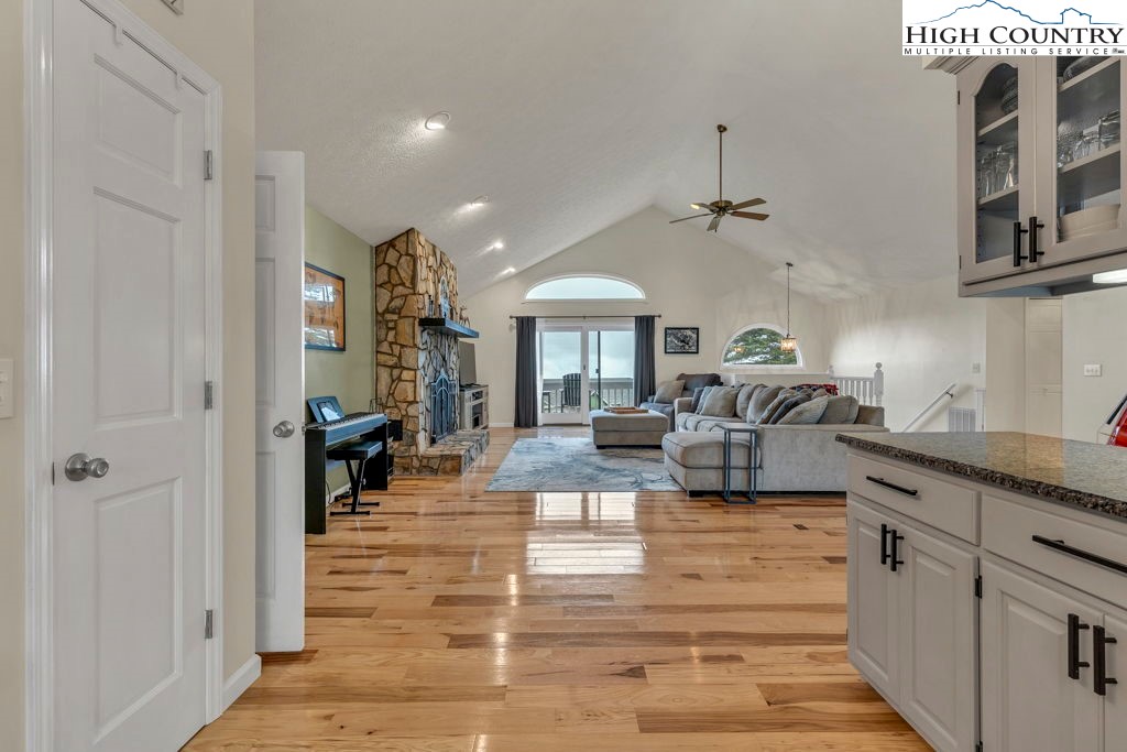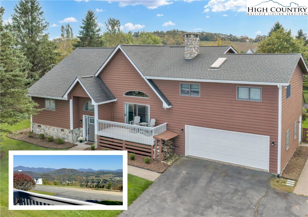Welcome to Sorrento Skies — where mountain charm meets modern comfort. Perfectly situated between Boone and Blowing Rock, this picturesque home offers breathtaking long-range views AND a flat, fully fenced yard — a rare find in the High Country. Thoughtfully updated inside and out, this home blends warmth, style, and functionality. Step inside to discover beautiful new hardwood floors (2024) flowing throughout most of the main level. The open-concept living area is anchored by a stunning stone fireplace, with sliding doors that open to a serene veranda — the perfect spot to soak in those incredible views. The kitchen was updated in 2024, complete with new appliances, modern finishes, and an easy flow into the dining area. From there, step out into your expansive backyard oasis, where a spacious deck, hot tub, and play area create the ideal setting for relaxation and entertaining. The main level also features the primary suite. Here you will find vaulted ceilings, a walk-in closet, and an ensuite bath, along with private deck access to the hot tub for the ultimate retreat. Also on the main level: a stylishly renovated half bath (2024), a versatile bonus room, large laundry room and garage access make daily living a breeze. Upstairs, you’ll find two additional bedrooms and a shared bath. Additional Recent upgrades include: New water filter system & front door (2025) New carpet in bedrooms, custom blinds, updated landscaping, foyer refresh (2024) New playset in backyard (2024) HVAC blower motor replacement & full HVAC service (2024)