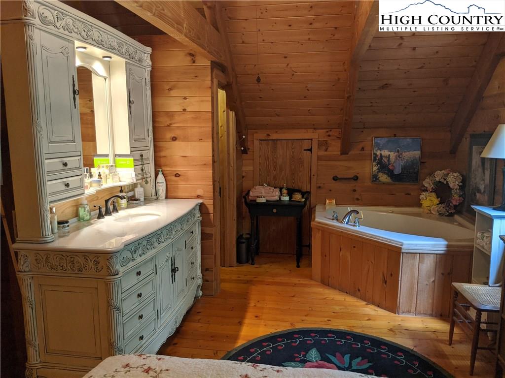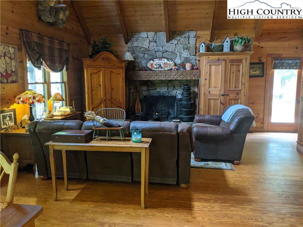 Amazing Horse Property in the Blue Ridge Mountains! Cabin 2 BR/ 3BA with Bonus Room and Large Loft on 11.25 beautiful acres. Three fenced pastures, barns, pole barn, RV covered parking, creeks, springs. Geothermal heat & air system with UV light sanitizing system (approx. 30K system). The cabin has vaulted ceilings, hardwood floors, gas log stone fireplace. 1 Bedroom, Bonus room, 2 full baths on main level. Second level has a large loft a large master suite and an ensuite bathroom with whirlpool tub, custom vanity. Large loft for the possibility of more sleeping areas. GOREGOUS with three lush fenced pastures and Mulberry, Persimmon & Pawpaw Trees! Local folklore has it this property was once an Indian Village. Many arrowheads and relics have been found here! The property has a stone chimney said to be a remnant of an old civil war cabin! The property is connected to the horse trail system so you can saddle up & ride the beautiful trails! This incredible cabin and property is located in the gated community of Leatherwood an exquisite equestrian horse communtiy which offers horseback riding trails, tubing, fishing, hiking, swimming pool, tennis, restaurant & many community events!